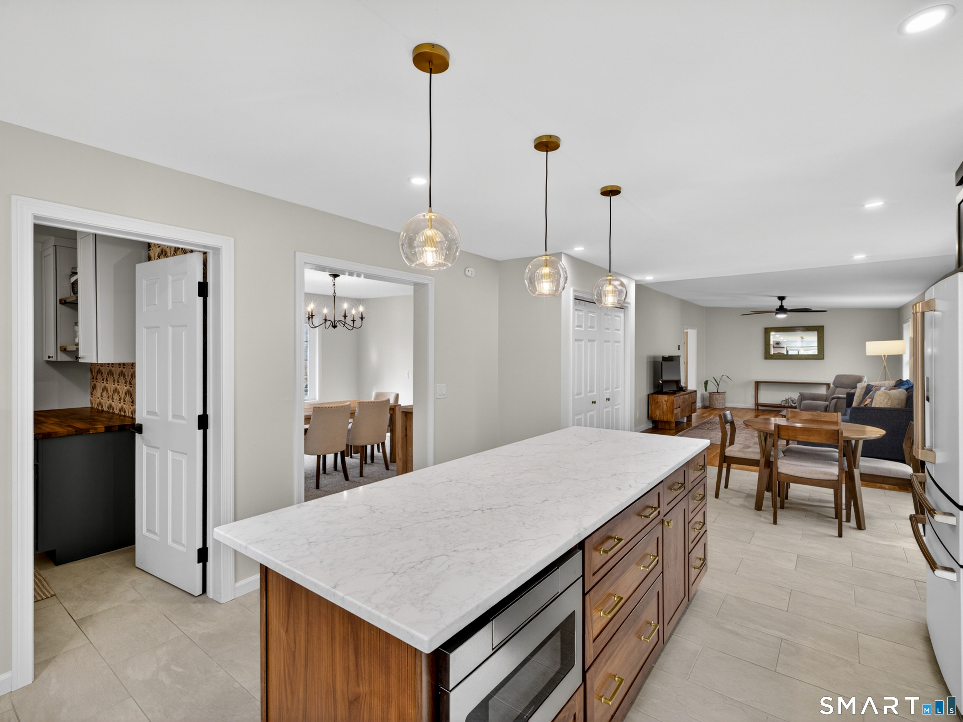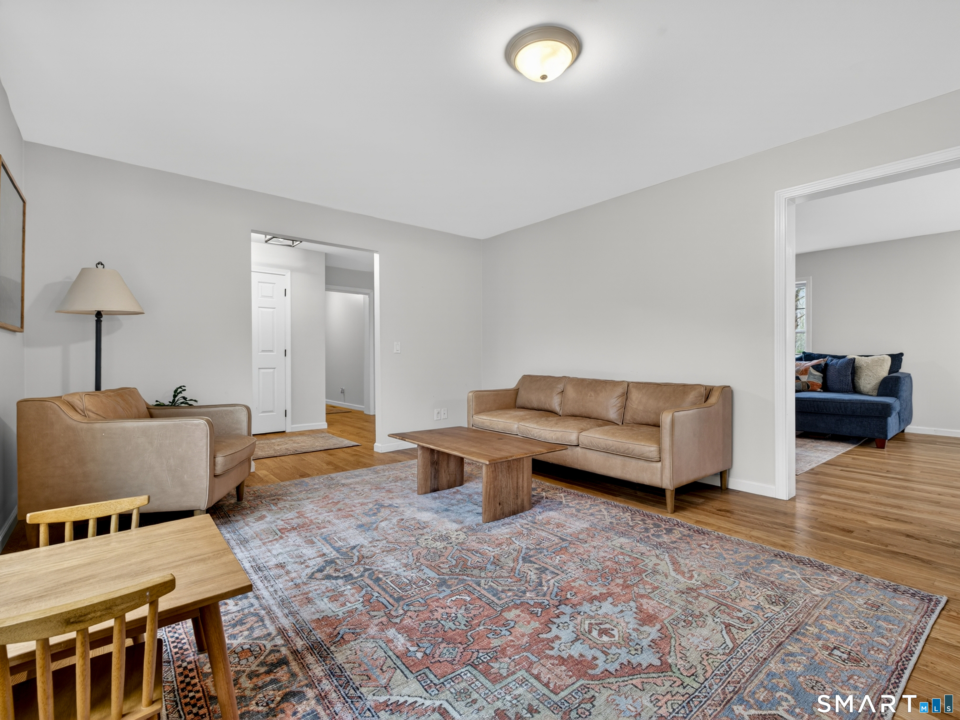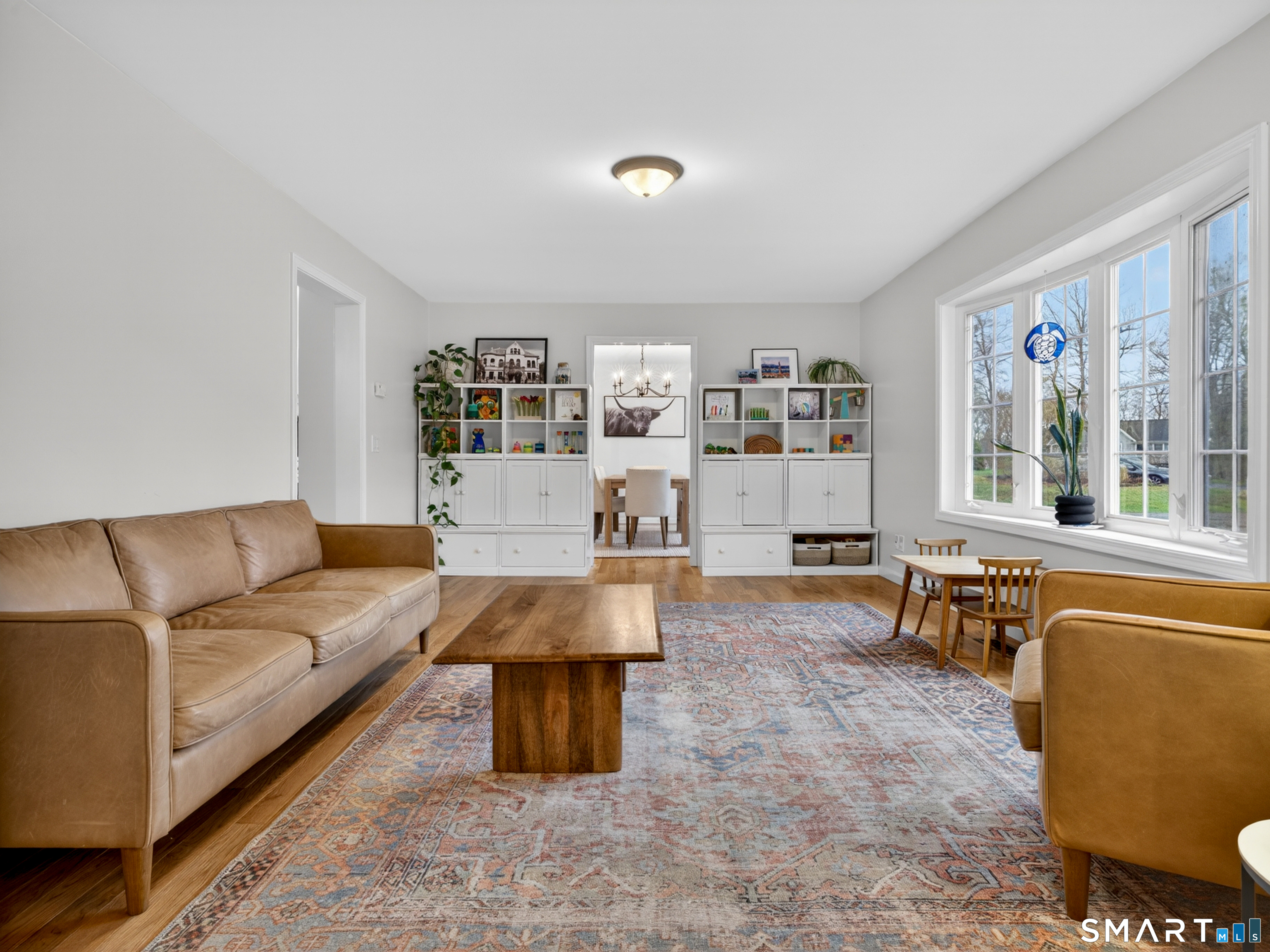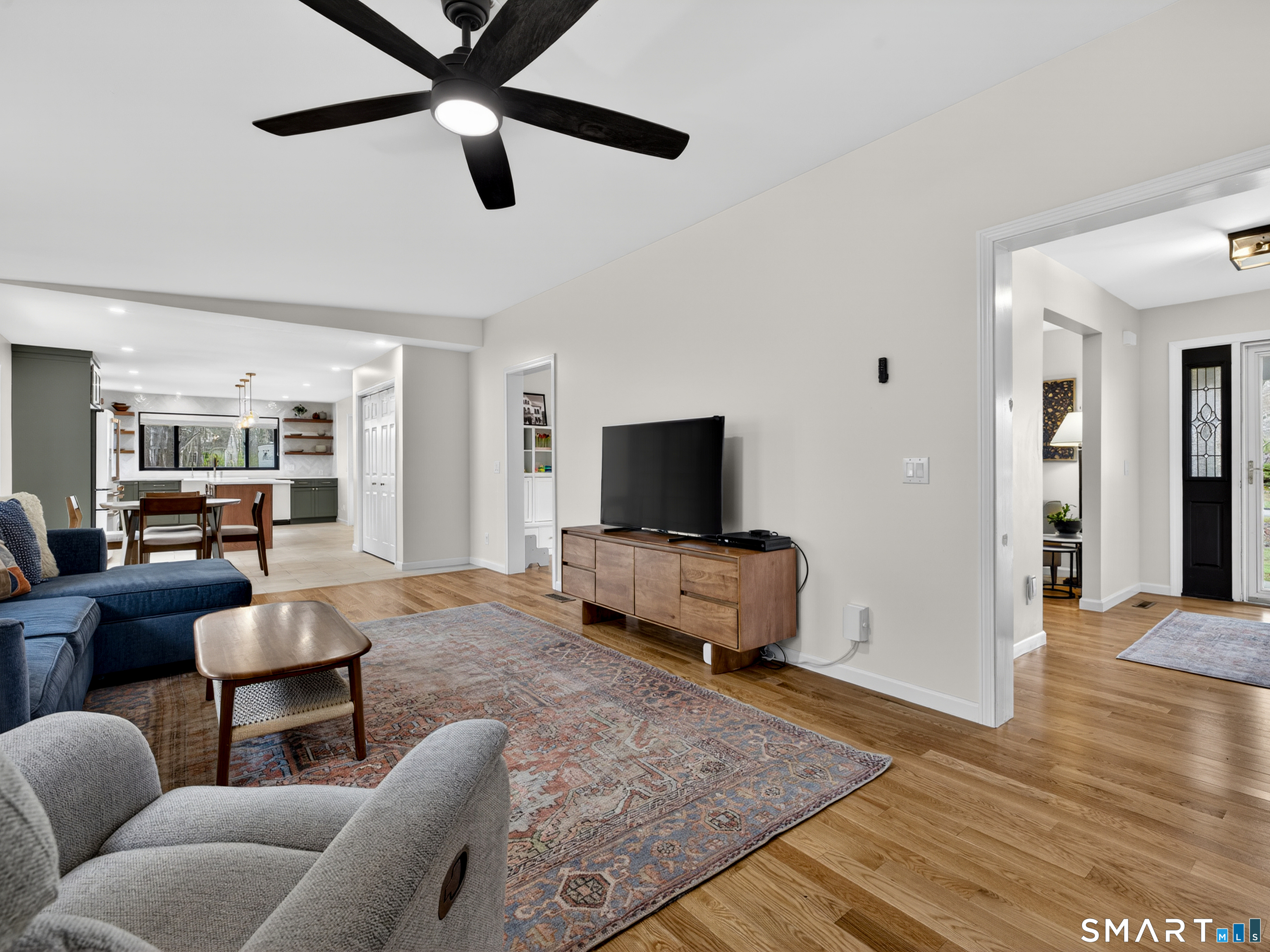 Gorgeous 4-bedroom designer Ranch with 2.5 baths and an attached 2-car garage, set on 1.38 level acres in a desirable subdivision! Offering a total of 2,828 sf, this oversized home showcases numerous upgrades and thoughtful improvements throughout. The beautifully renovated kitchen features new windows, a sliding glass door, new cabinetry including a walnut island, pantry, and floating shelves, along with a striking 39" farm sink and added gas service for the range. Outfitted with GE Cafe appliances, including a counter-depth refrigerator, 36" six-burner gas range with electric oven, and dishwasher. Kitchen opens to a dining area with direct access to the backyard through glass slider and flows seamlessly into the family room. Just off the kitchen is a formal dining room with a bowed window, complemented by a second bowed window in the spacious living room, filling the home with natural light. This well-designed Ranch offers 4 bedrooms that includes a primary suite with a walk-in closet and private full bath featuring a soaking tub, and separate shower, along with a dedicated office space. Three (3) additional generously sized bedrooms provide flexibility and comfort. This home also includes a full basement, central air, Thermopane windows, and programmable thermostats for year-round comfort.
