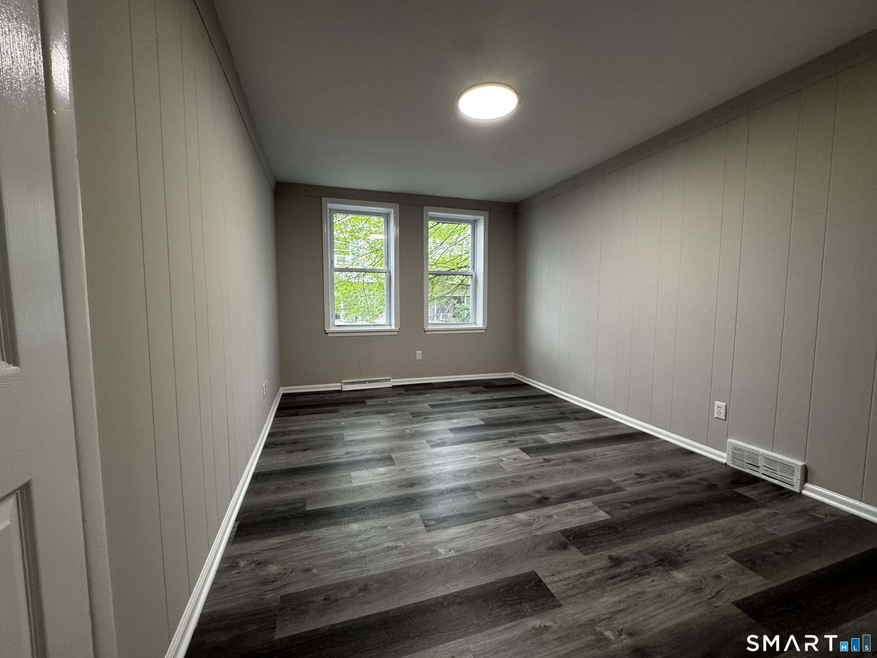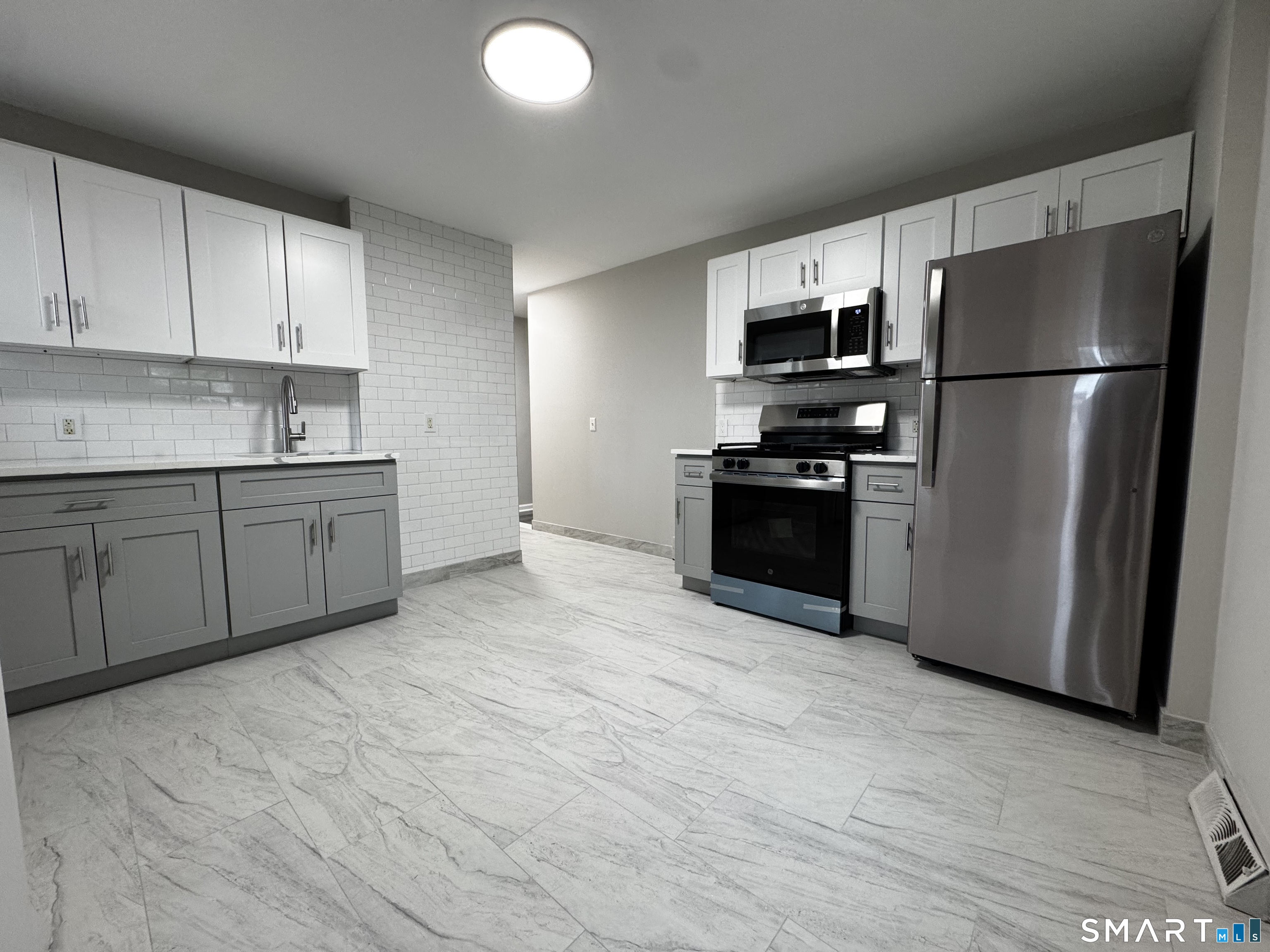 Be the first to live in this beautifully renovated 3-bedroom, 1-bathroom home offering 1,200 square feet of stylish, modern living. Every inch of this rental has been thoughtfully updated, combining timeless finishes with contemporary upgrades to create a bright and welcoming space you'll be proud to call home. Step into the spacious eat-in kitchen, where crisp white upper cabinets contrast perfectly with modern gray lowers, accented by sleek subway tile backsplash and stainless steel appliances - including a gas stove, built-in microwave and stainless steel fridge. The expansive layout offers plenty of counter and storage space for cooking and entertaining. The bathroom features a brand new walk-in shower with elegant tile work and a frameless glass sliding door. A modern vanity, chrome fixtures, and hexagonal floor tile complete the fresh, upscale feel. Each of the three bedrooms is generously sized with large windows that bring in tons of natural light. New wide-plank luxury vinyl flooring runs throughout the home, complemented by soft gray walls and crisp white trim for a clean, sophisticated aesthetic. This home is move-in ready and perfect for those who appreciate quality craftsmanship and modern design. Don't miss this opportunity to enjoy brand-new everything in a charming and conveniently located home!