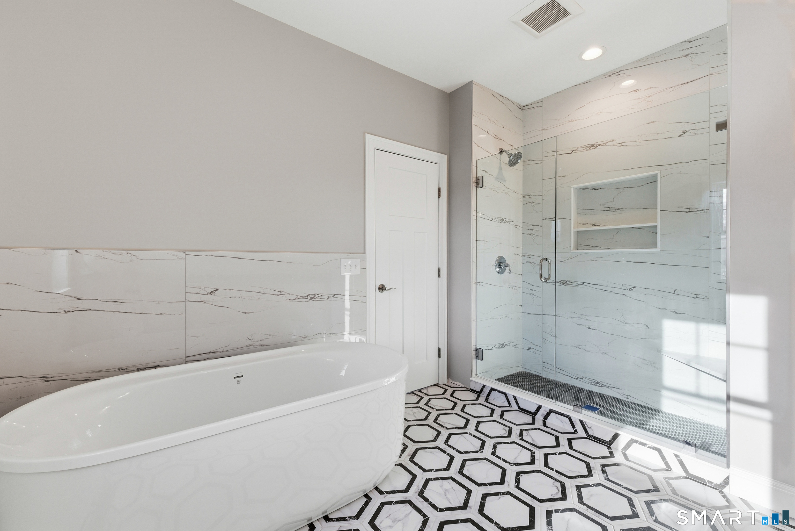 Rarely available new construction home at 42 Holcomb St in Simsbury! This stunning 4-bedroom, 2.5-bath residence offers thoughtfully designed living with high-end finishes throughout. The first-floor primary suite features a large walk-in closet and a spacious full bath complete with a dual vanity, a relaxing soaker tub, and a large walk-in tiled shower with custom finishes. Convenient first-floor laundry is located just steps away. Just off the front entry, a private office provides the perfect work-from-home space. Enjoy open-concept living with a bright, inviting living area that flows seamlessly into a designer kitchen complete with stainless steel appliances, dovetail white shaker cabinets, and premium details. Beautiful 5-inch oak hardwood floors run throughout the entire home, including all bedrooms. A generous pantry provides ample storage, and a composite deck off the rear is perfect for outdoor entertaining. Upstairs offers two spacious bedrooms plus a versatile 4th bedroom ideal for a home office or playroom. The unfinished walkout basement features 9-ft ceilings and direct access to the backyard, offering endless possibilities for future expansion. Complete with a 2-car attached garage, this is a rare opportunity to own new construction in a prime location!