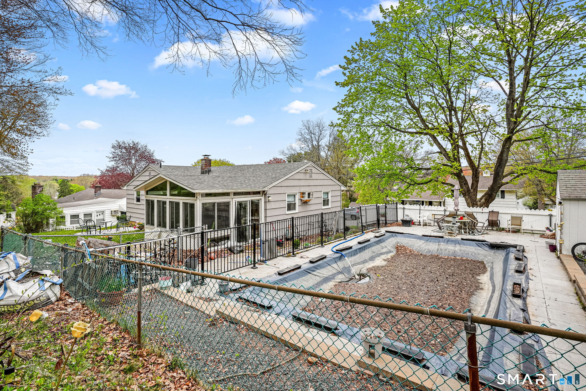Well maintained Ranch on a large corner lot in the highly desirable East End of Waterbury. Offering three spacious bedrooms, kitchen/ dining room and living room, one and half bathrooms. Step outside to enjoy the private fenced backyard, featuring a totally renovated in ground pool & patio perfect for relaxing/entertaining summers with family and friends; sunroom with windows that provide ample natural light & split system, new roof 2024 with solar panels; Partial finished lower-level provides additional space perfect for a family room, home office or recreation area; close to schools, shopping, restaurants, mall and easy access to I84 & Rt8. ALL OFFERS WILL BE CONTINGENT ON SELLERS FINDING SUITABLE HOUSING. "SOLD AS IS CONDITION" A must see!
