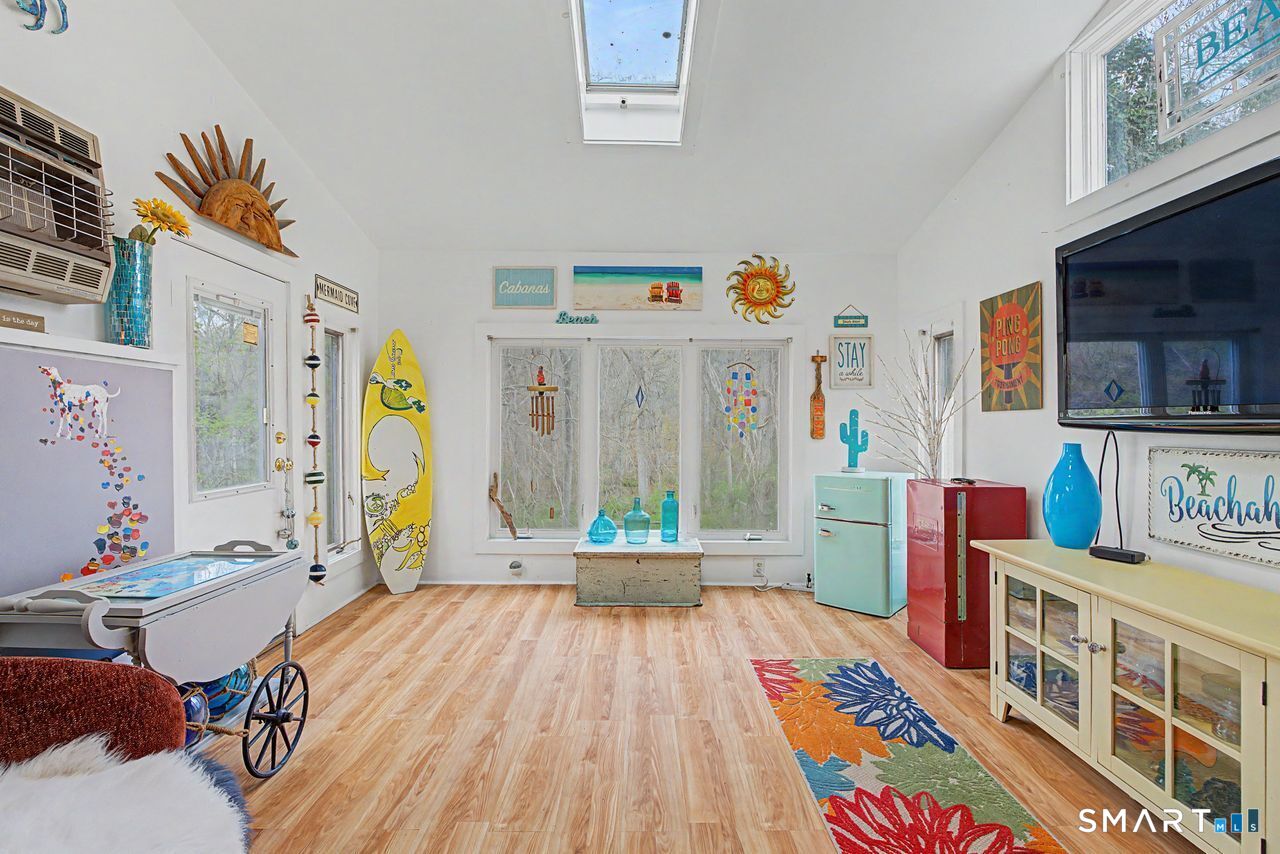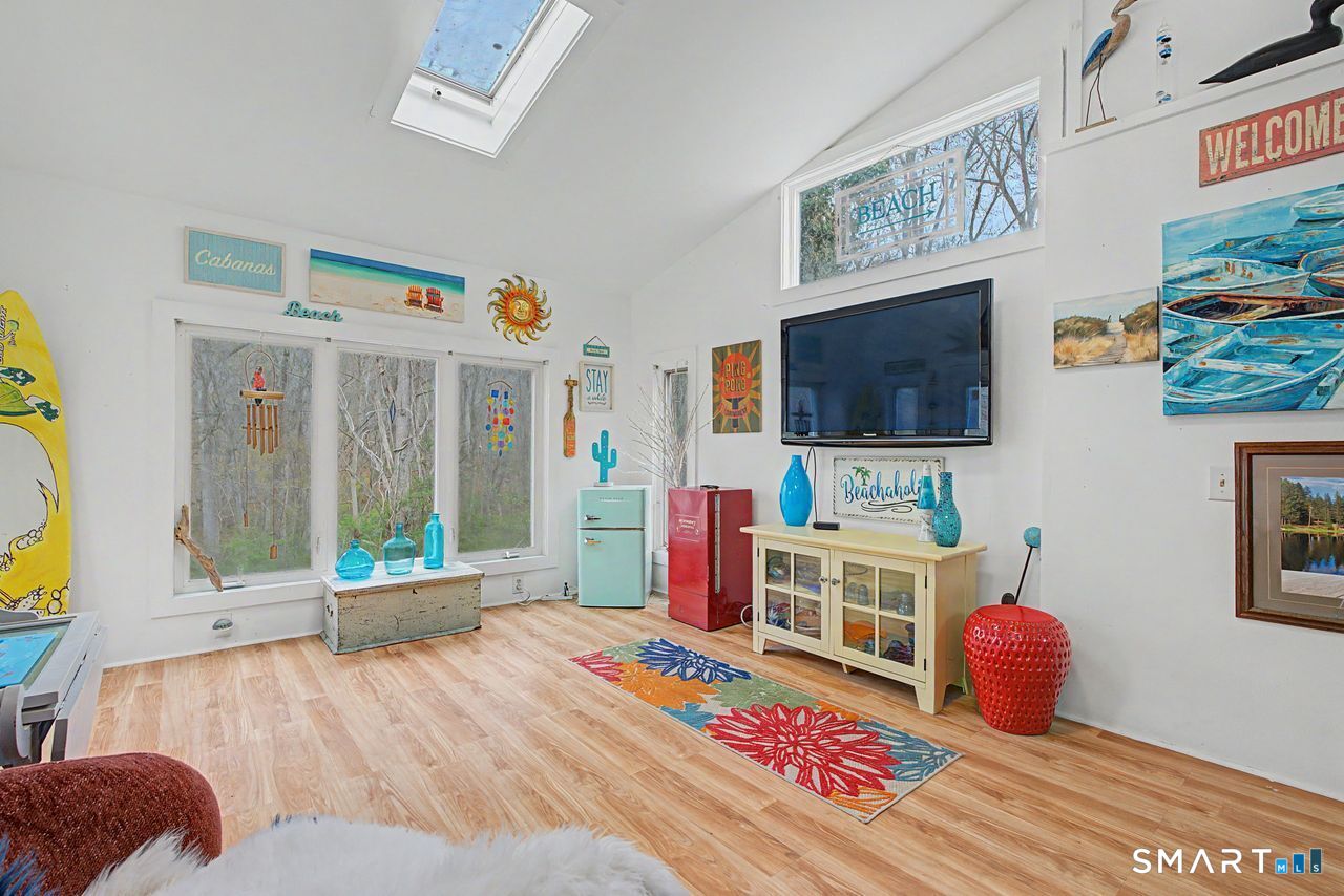 Proving that good things come in small packages, the spacious eat-in kitchen with vaulted ceiling and skylight sets the stage for this two bedroom charmer. The sense of light and space is echoed by the lower level family room with the adjacent half bath and walk-out basement supplying laundry, storage or workshop space. Sited on nearly one acre on a lovely country road, there is elbow room a-plenty with a deck off the living room for casual out-door living opportunities. Located half way between New York and Boston, whether you are looking for a year-round home or a simple pied-a-terre, Old Lyme offers town and State beaches, an art museum and galleries, shopping and restaurants, all nearby.
