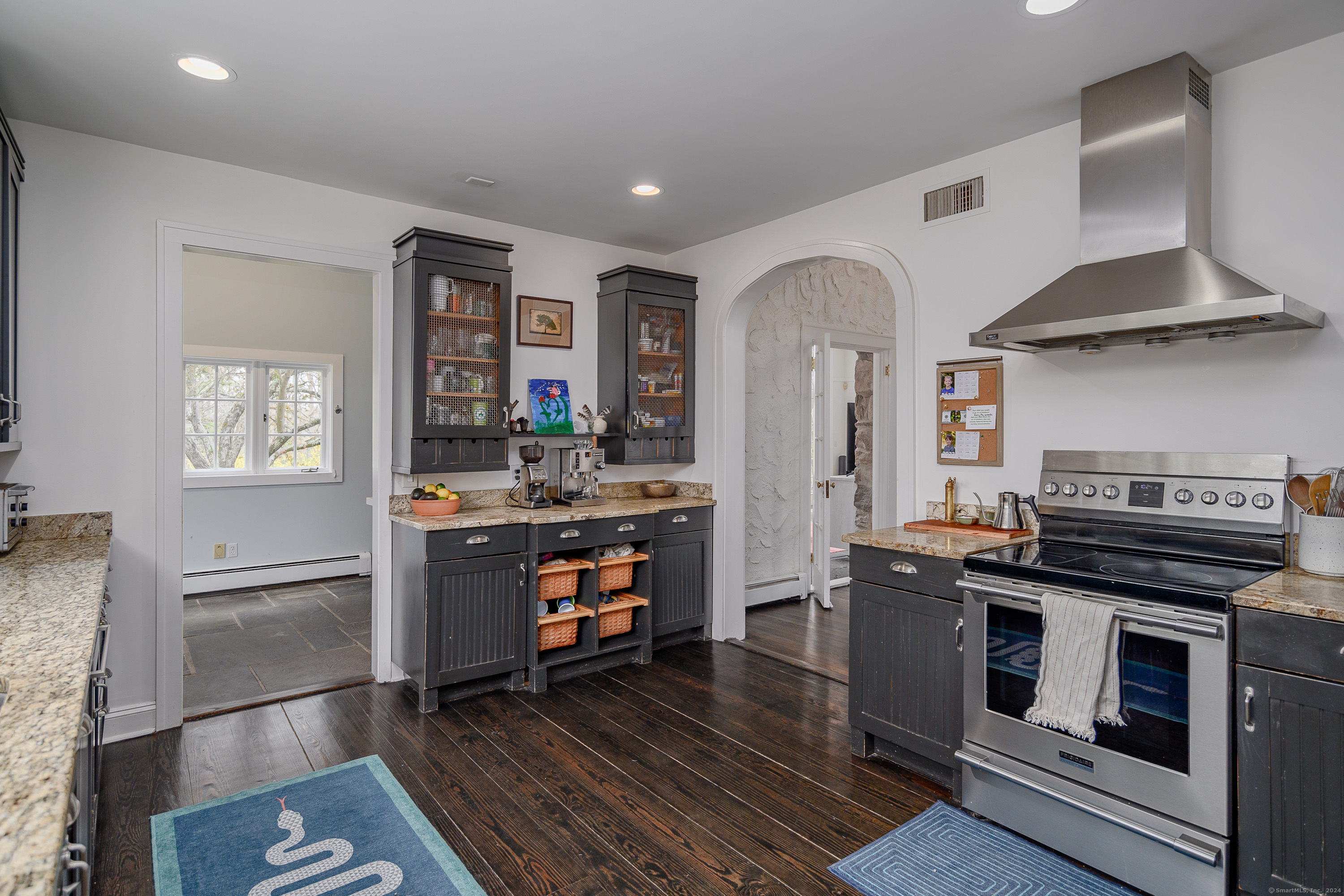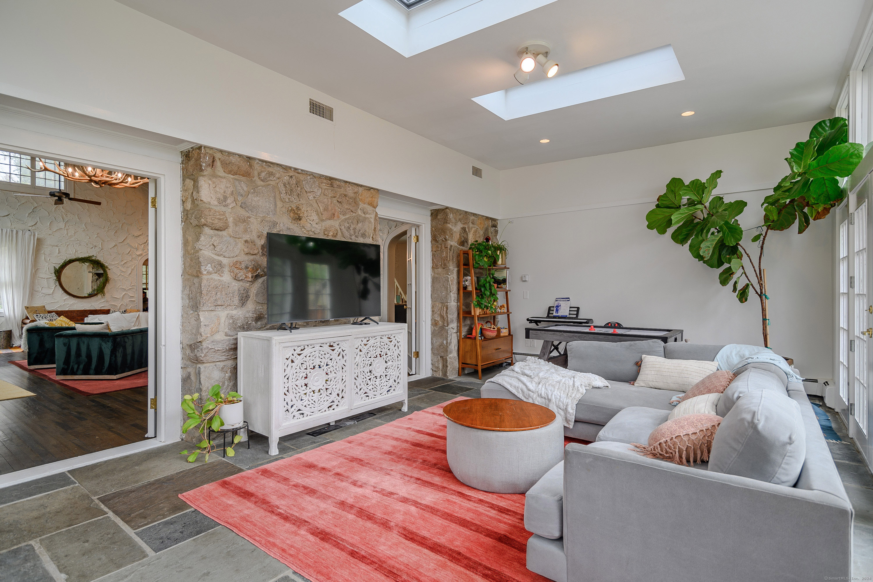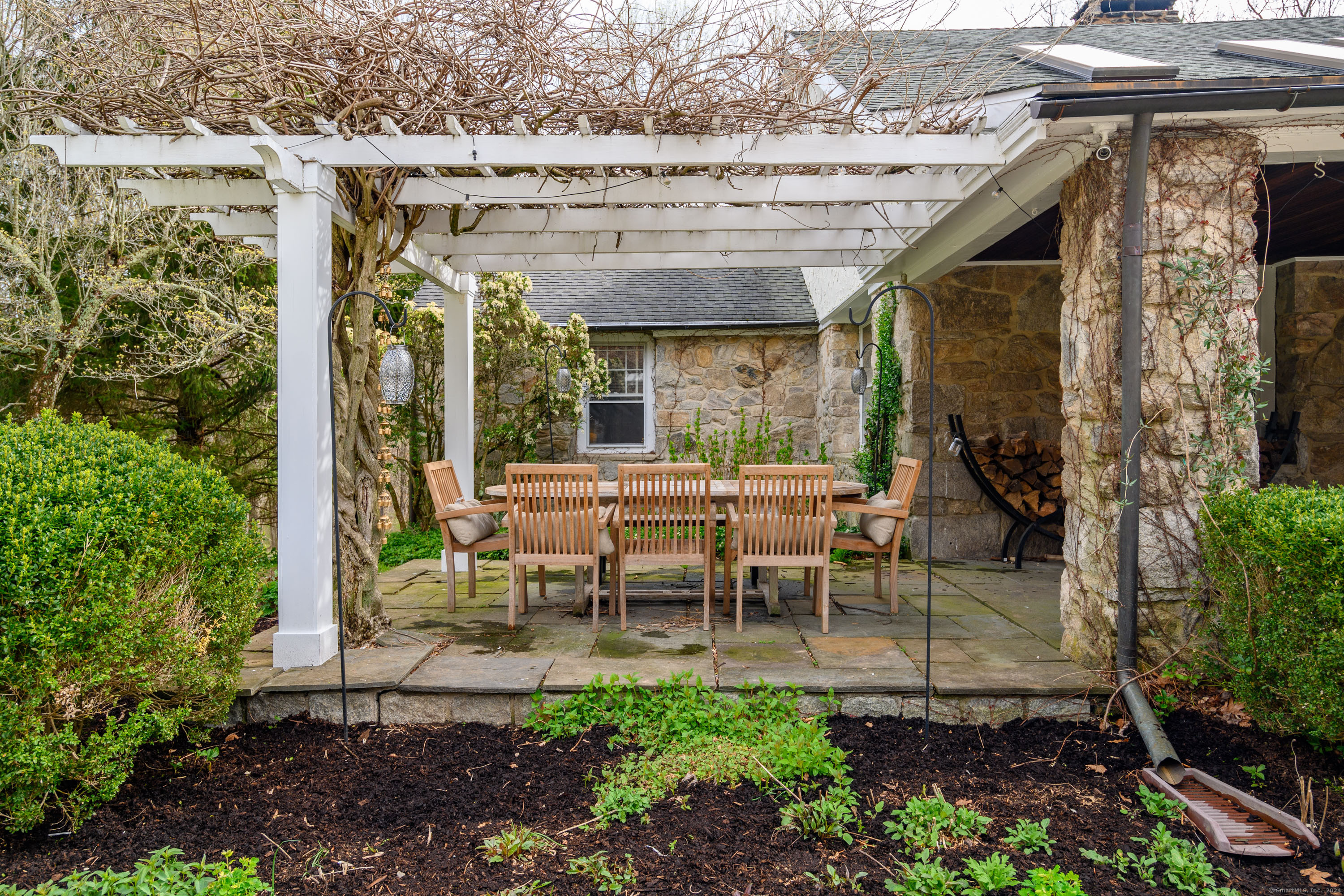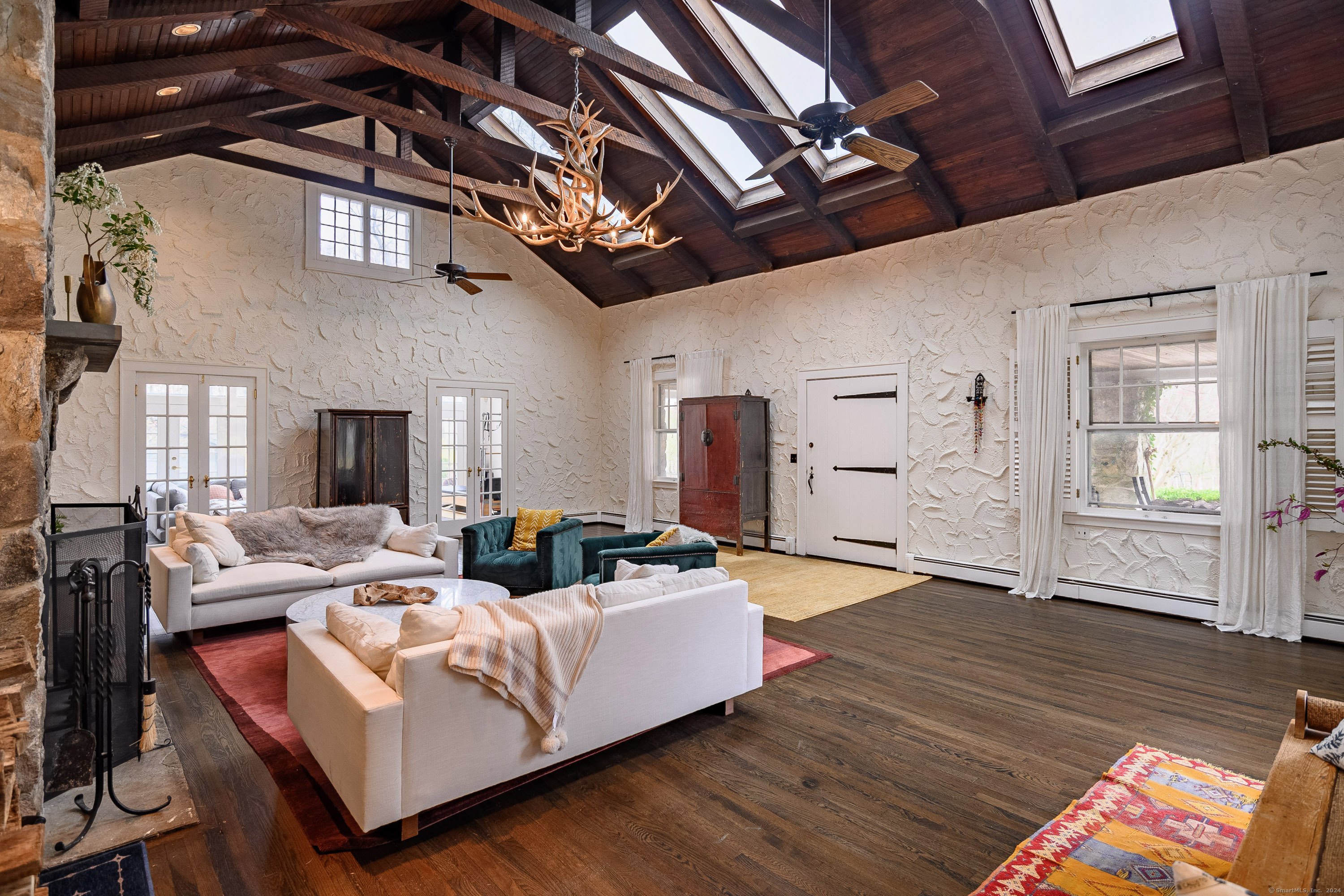 Step into a truly special home! This former hunting lodge, now a picturesque haven, is nestled on a private setting yet moments away from all that Ridgefield offers. Available for move-in August 1st. This home exudes character and charm w/over 4,000 sq ft, including 4BD and 3BA, two fireplaces, and a study that can flex as a 5th BD. The heart of the home is the expansive double-height Great Room, adorned with vaulted ceilings and exposed beams, centered around a magnificent floor-to-ceiling stone fireplace. The SS appliances and granite kitchen offer modern convenience. Retreat to the Primary suite with custom built-ins and a recently renovated ensuite bath, offering a private sanctuary for relaxation. French doors seamlessly connect living spaces to the 2-acre yard adorned with lush hydrangeas and peonies. Entertain guests on the expansive patio, deck, or porch with pergolas boasting beautiful wisteria. Or take a refreshing dip in the in-ground pool discreetly nestled amidst mature trees and landscaped grounds. This coveted residence offers the perfect blend of proximity to town and exquisite period details, making it an idyllic weekend retreat or year-round sanctuary. Don't miss the opportunity to make this historic gem your own.