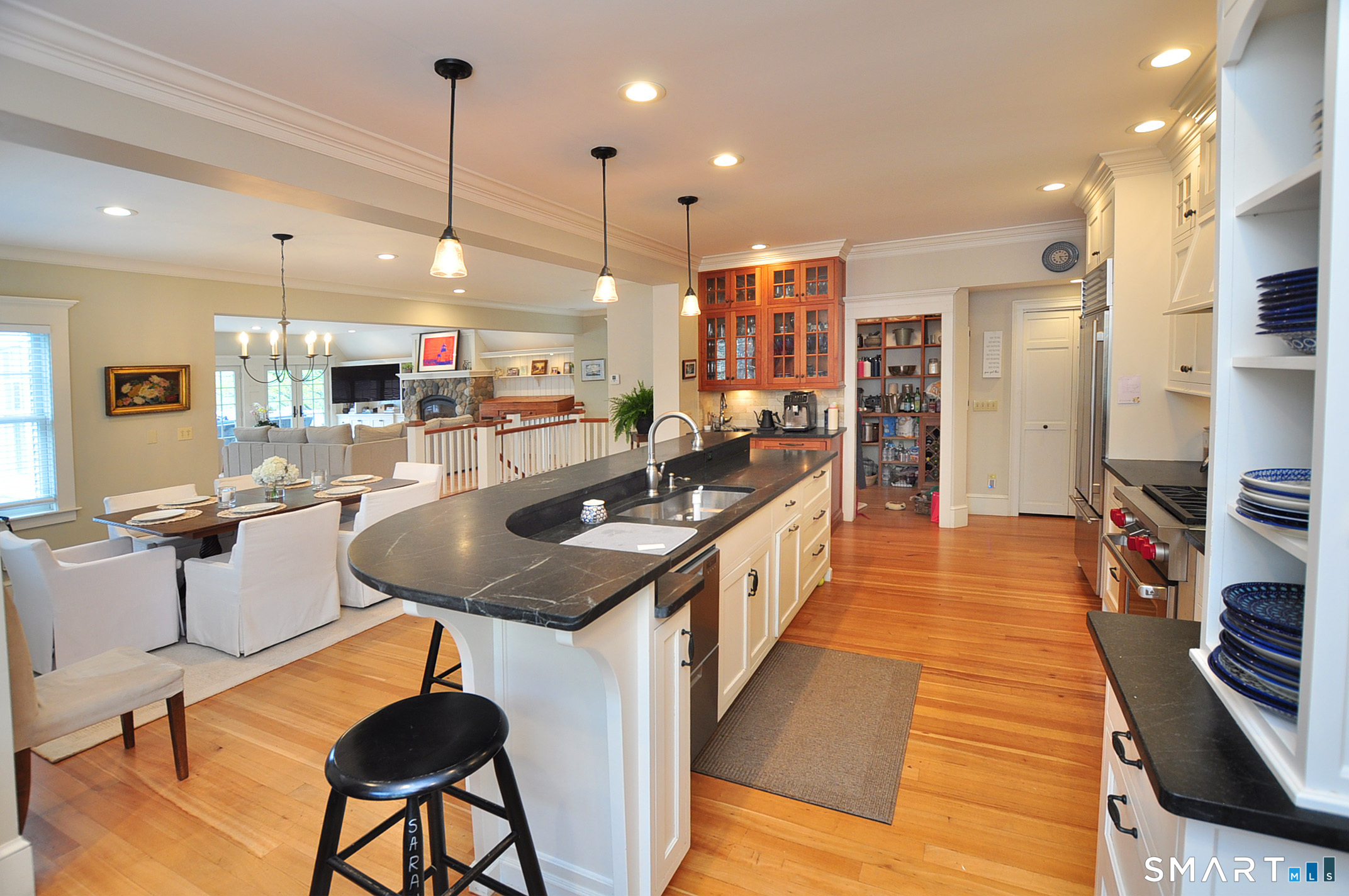 Attention location buyers: Your Extraordinary lifestyle awaits, with 5 bedrooms, including walk out studio apartment with separate entrance. From the sidewalk of historic main street, you are greeted with a professional office or living room off the foyer. The Wolf/Subzero chef's kitchen with custom white cabinetry, an 11' island with soapstone counters, a coffee bar with sink, a large panty with 2nd refrigerator, drink cooler and 2nd dishwasher is ideal for multigen living. There is radiant heat in the 2007 addition, which will change how you feel about winter! There are 2 kitchens, 3 dishwashers and 4 refrigerators, in this home, making it ideal for easy entertaining of large groups! The dining room and great room are sun-drenched with beautiful beach stone gas fireplace. French doors opening to the 20x20 deck, bring outside living in. Upstairs, the primary suite is a show stopper with gorgeous sunset views, dual walk-in closets and a spa like full bath with steam shower and limestone flooring with radiant heat. In a separate wing there are 3 additional bedrooms, and a 4th bedroom with 3 floored attics for all your storage needs. The finished lower level is an approved in-law suite with separate entry-includes a full kitchen with granite countertops and a possible 6th bedroom suite. 3+ car gar Steps to golf, Suffield Academy (just 10 houses south), Suffield Market, Kent Memorial Library, Suffield Country Club all in the in the heart of our historic district. Agent is owner