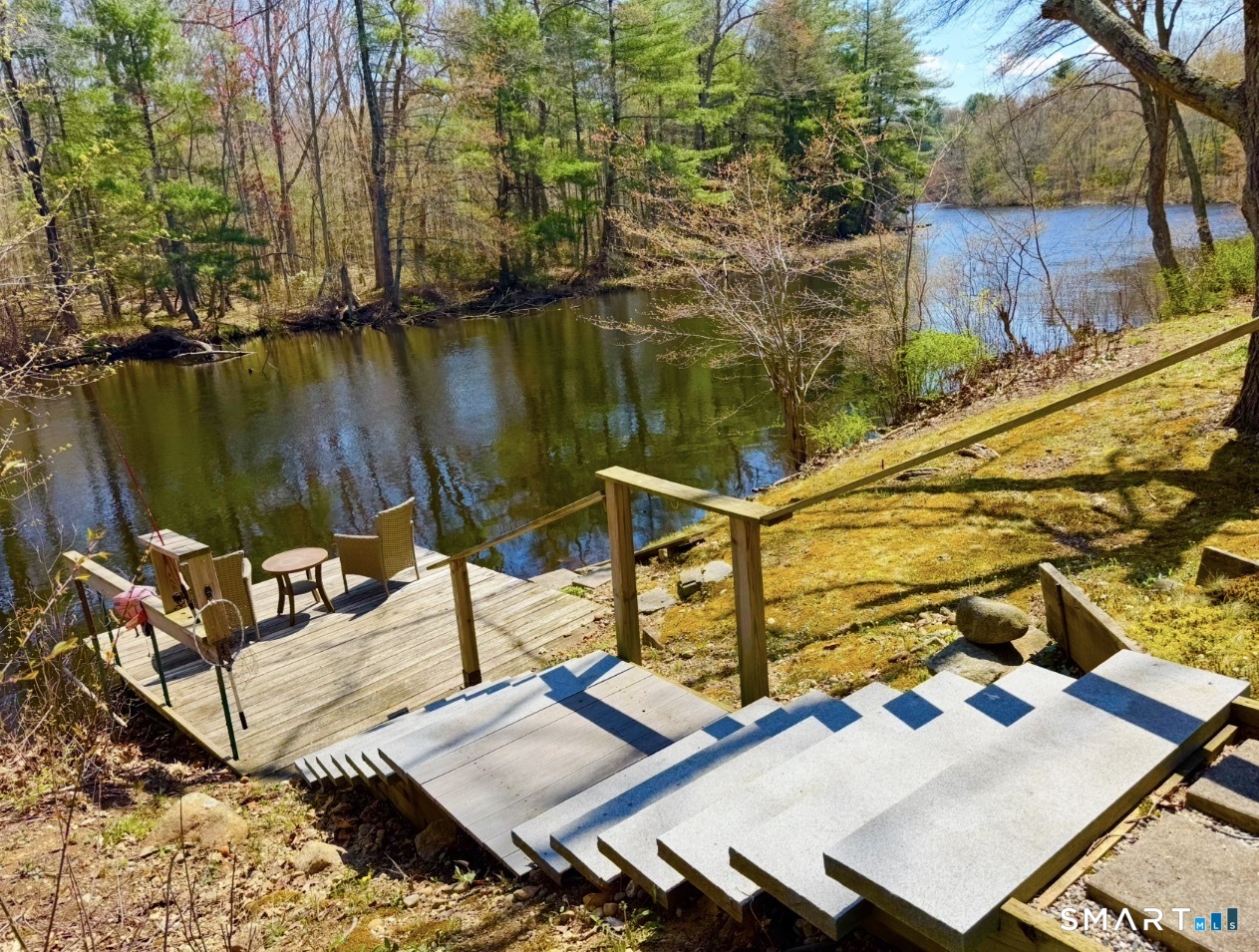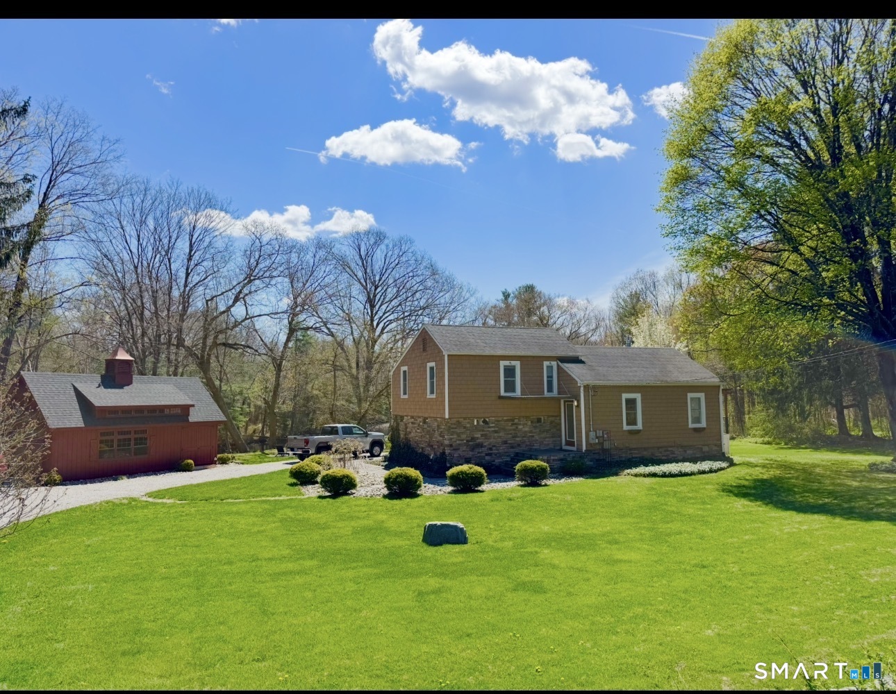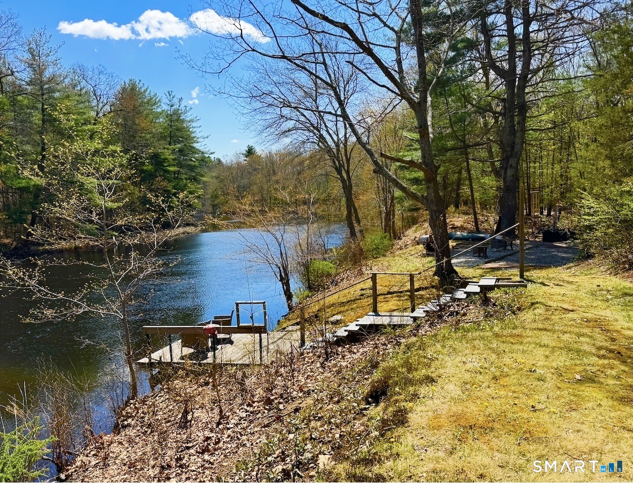 Park like grounds! Beautiful Home in Mansfield, professionally landscaped. 535' of frontage on the Natchaug River. Dock with seating, a cornhole field. Park like setting with 2.4 acres of privacy. House has been completely remodeled, 2015, from head to toe. The kitchen has a granite island with seating, a professional style gas convection range, slide-out hood, SS dishwasher and SS refrigerator. The dining room is open to the kitchen with natural lighting throughout. Cozy living room. 2nd fl has 2- bedrooms, Primary has a large WI closet plus another large closet. Full bath with double sinks, modern glass WI shower and another bedroom, Lower level has the laundry room and another modern full bathroom with heated floor and a glass WI shower. 1-car garage attached has an automatic garage door opener and room for extra storage. Huge Red Barn style has an automatic garage door opener and lots of storage space. Nice deck off the back to sit, relax and enjoy the birds and wildlife as you listen to the river flowing by. canoe, kayak and great fishing outside your door! Watch the birds and wildlife as you enjoy the back deck and yard. Living room has a glass gas fireplace that is viewed through to the kitchen-dining room area. Furnace 2yrs old~, on-demand HW heater, 4 yrs old~,refrig 2yrs old~. Automatic fresh air return system for house. W&D 1yr old~. Generator hook-up in place, 220amp service.