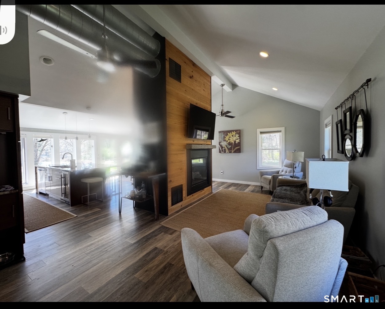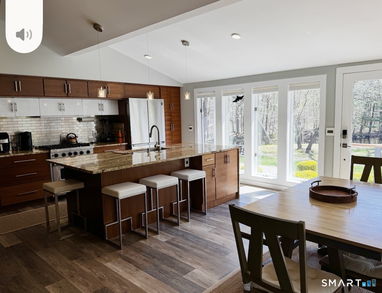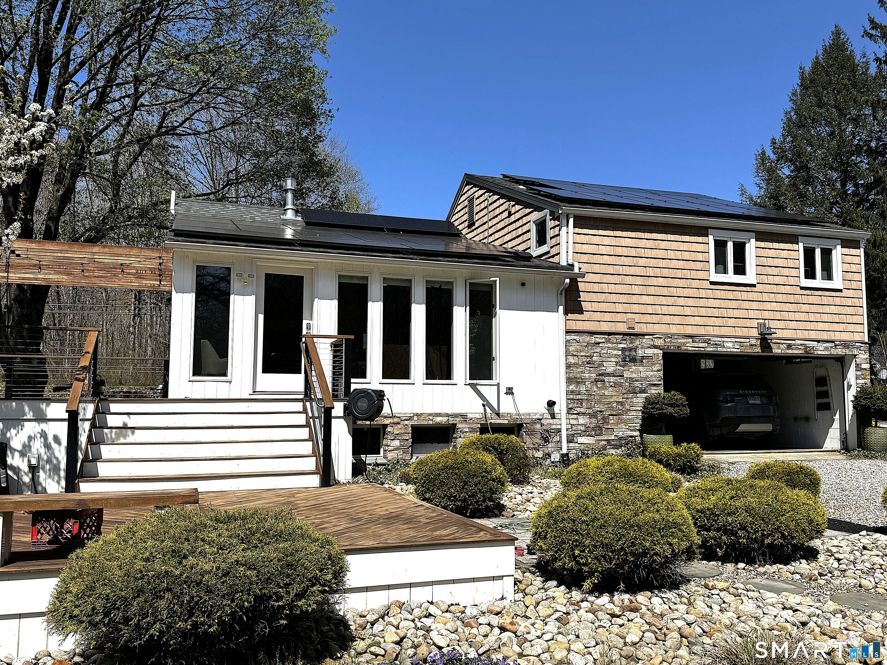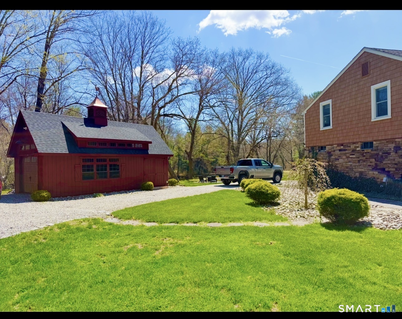Park like grounds! Beautiful Home in Mansfield, professionally landscaped. 535' of frontage on the Natchaug River. Dock with seating, a cornhole field. Park like setting with 2.4 acres of privacy. House has been completely remodeled, 2015, from head to toe. The kitchen has a granite island with seating, a professional style gas convection range, slide-out hood, SS dishwasher and SS refrigerator. The dining room is open to the kitchen with natural lighting throughout. Cozy living room. 2nd fl has 2- bedrooms, Primary has a large WI closet plus another large closet. Full bath with double sinks, modern glass WI shower and another bedroom, Lower level has the laundry room and another modern full bathroom with heated floor and a glass WI shower. 1-car garage attached has an automatic garage door opener and room for extra storage. Huge Red Barn style has an automatic garage door opener and lots of storage space. Nice deck off the back to sit, relax and enjoy the birds and wildlife as you listen to the river flowing by. canoe, kayak and great fishing outside your door! Watch the birds and wildlife as you enjoy the back deck and yard. Living room has a glass gas fireplace that is viewed through to the kitchen-dining room area. Furnace 2yrs old~, on-demand HW heater, 4 yrs old~,refrig 2yrs old~. Automatic fresh air return system for house. W&D 1yr old~. Generator hook-up in place, 220amp service.