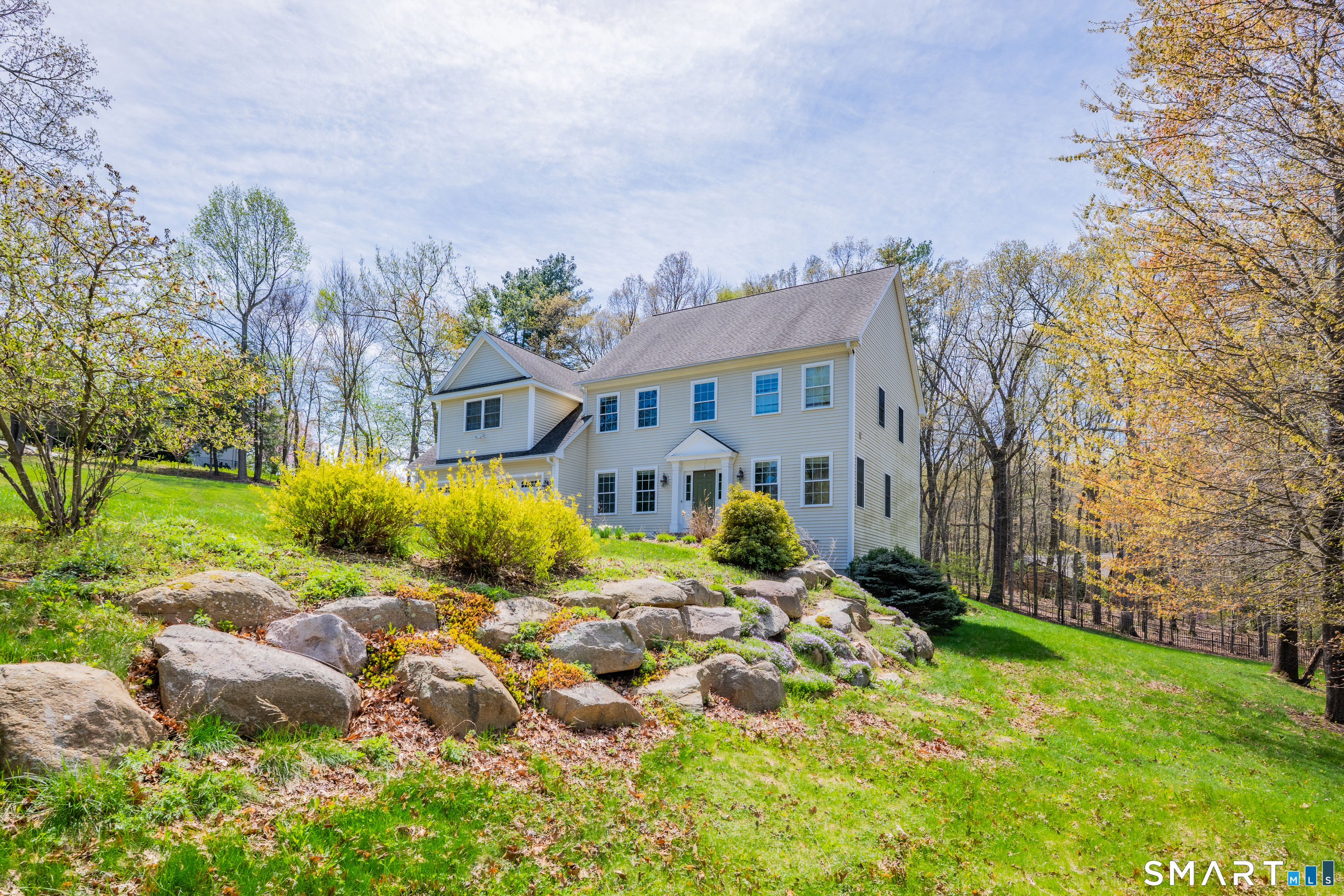Welcome to this custom-built Colonial, thoughtfully designed and ready for its next owners. Ideally located just minutes from the town center in South Glastonbury, this home is set back from the road on a private, scenic 1.68 acre lot that is fully fenced-offering both convenience and seclusion. Inside, you'll find hardwood floors throughout both levels and an abundance of natural light filling every room. The main level features a well-appointed layout with a formal living room, dining room, and a private first-floor office with French doors-perfect for working from home. The spacious family room, complete with vaulted ceilings and a fireplace, flows seamlessly off the kitchen, creating a warm and inviting space for everyday living and entertaining. A practical mudroom connects the garage to the kitchen for added functionality. Upstairs, the primary suite offers a beautifully designed retreat with a large sitting area, an expansive walk-in closet, and a full bath featuring a clawfoot tub and separate shower. Three additional bedrooms complete the upper level, making this a true four-bedroom home with 2.5 baths. The heated lower level provides additional flexible space and includes a walkout to the backyard. Built in 2012, this home is energy-efficient with propane heat, central air, public water, and public sewer. A rare opportunity to own a newer home in a desirable South Glastonbury location with space, privacy, and a layout that truly works.