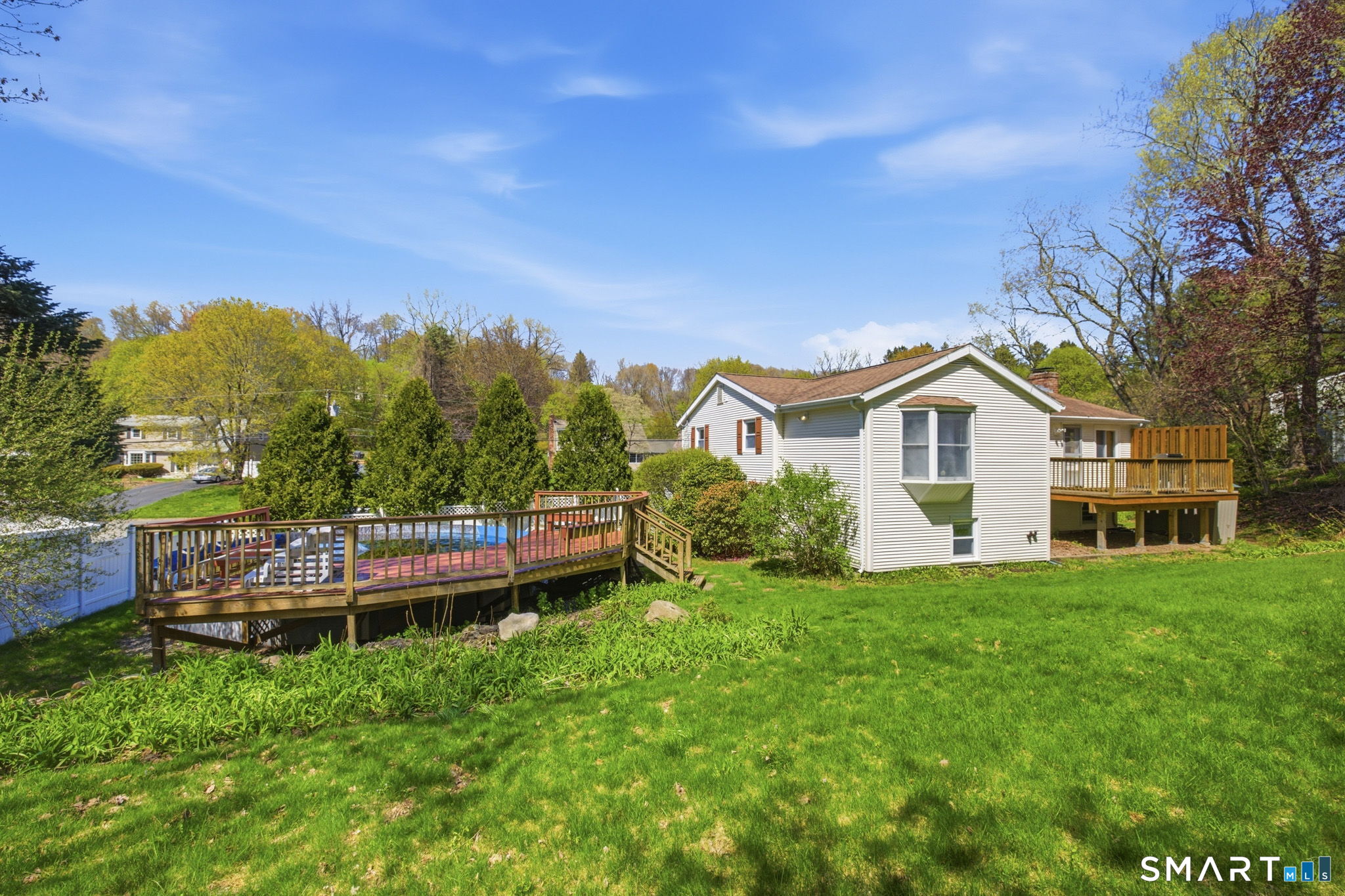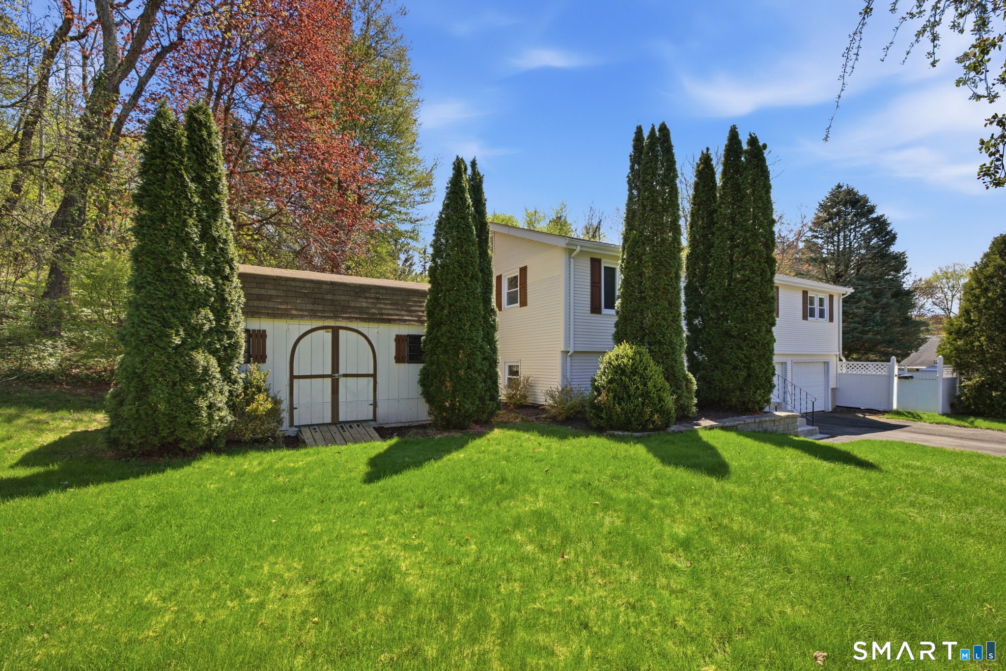 Welcome home to this charming 3-bedroom, 3 full bath raised ranch offering space, flexibility, and thoughtful updates throughout. Step inside to a professionally painted interior with beautifully refinished hardwood floors and an updated kitchen featuring granite countertops and a pantry for extra storage. The dining room is perfect for everyday living and entertaining family and friends. The primary cathedral ceiling suite includes a full bath, makeup station, brand new carpeting and additional space ideal for a nursery, home office, or sitting area. Two additional bedrooms are generously sized. The cozy lower level features a family room with brand new luxury vinyl flooring and a brick fireplace, along with a second mini kitchen and full bath-perfect for potential in-law or multi-generational living. Additional highlights include 2 outbuildings, an above ground pool to cool off on a hot summer day, a spacious 2-car garage, central air, vinyl siding and a back deck overlooking a private yard. Don't miss your opportunity to make this home yours! HIGHEST AND BEST DUE BY 4/27/2026 at 5:00 p.m. Thank you