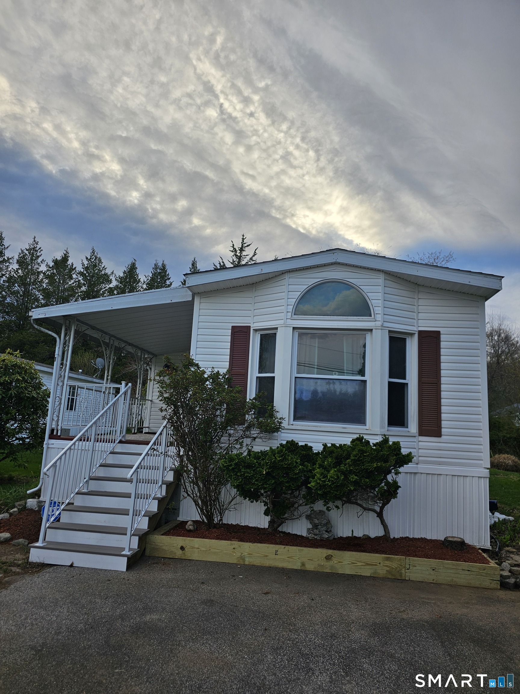 This cozy and immaculately maintained mobile home sits on a corner lot in the pristine community of Stonington. It features 2 bedrooms, 2 full bathrooms (one with a jacuzzi tub and 9 sprays), and a possible third room. The living area, dining area, and kitchen are arranged in an open-concept layout facing the front door. Many recent upgrades have been made, including brand-new laminate flooring, a new wall oven, and a new cooktop. The generator, front stairs, and roof are only 2 years old. Park dues are $560, and the home is located on Route 201, just minutes from Foxwoods Casino, golf courses, beaches, scenic parks, and numerous restaurants. Anyone wishing to live in the park must receive park management approval.