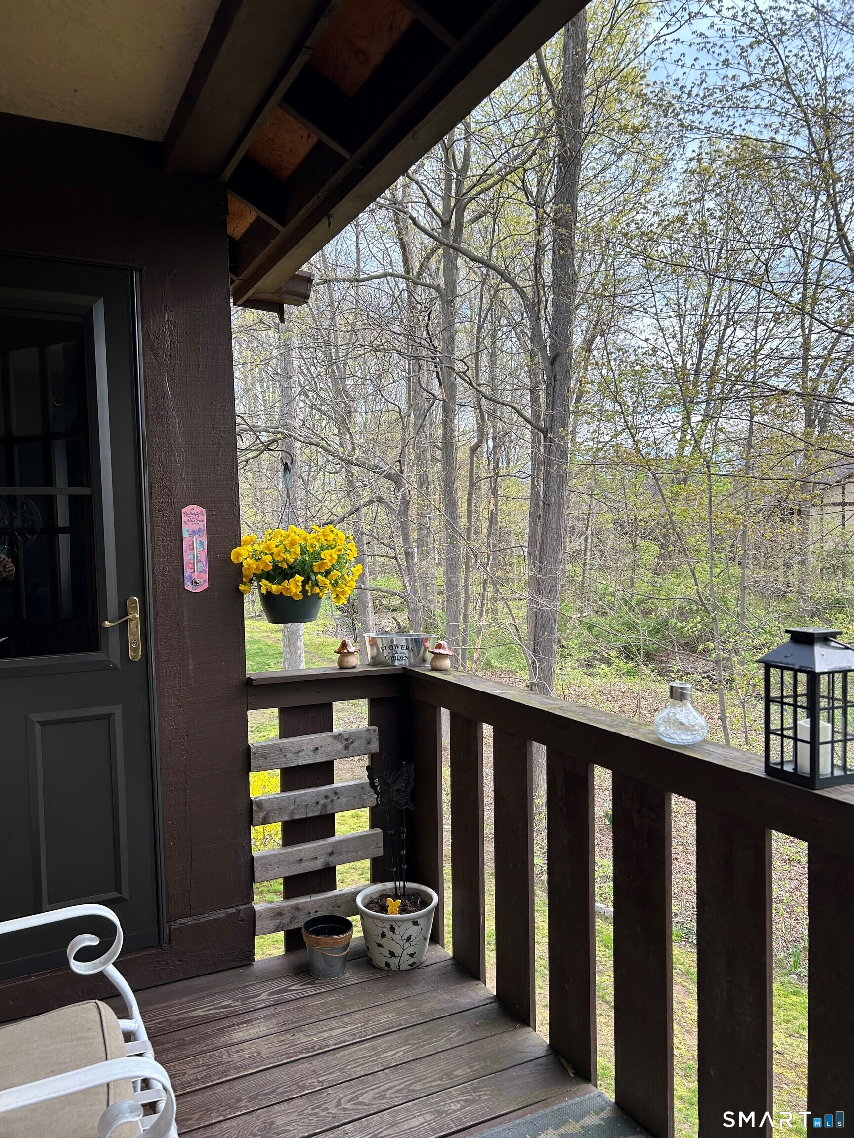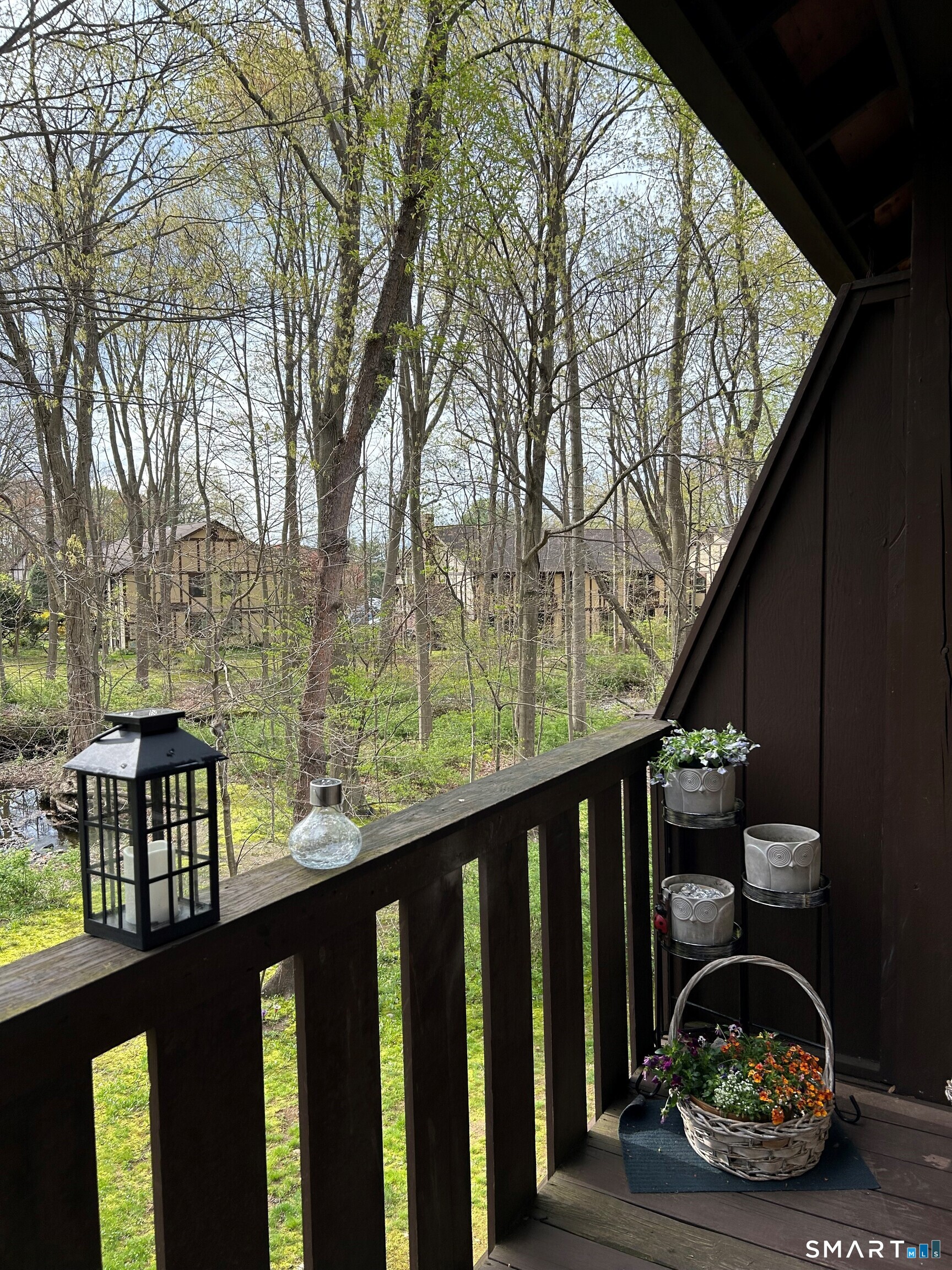 One of the largest condos in Foxwoods. This unit is destined to impress!! Second level, end unit, completely remodeled and shows beautifully. Loads of windows, open areas, and brightness will give you the peace and quiet while overlooking the woods and a brook from your deck! Interior offers large rooms, pergo flooring throughout and all updated lighting and ceiling fans. Kitchen offers quartz countertops,maple cabinets, stainless appliances, and breakfast nook. Living room and dining room are open concept, bedroom is large with built in closets and drawers. Den/office can be used as bedroom, your choice! Separate laundry room! Heat and HW included in HOA dues and pool, tennis, bocce and now pickleball! Don't miss out on this one! Sellers Motivated. Owner/Agent