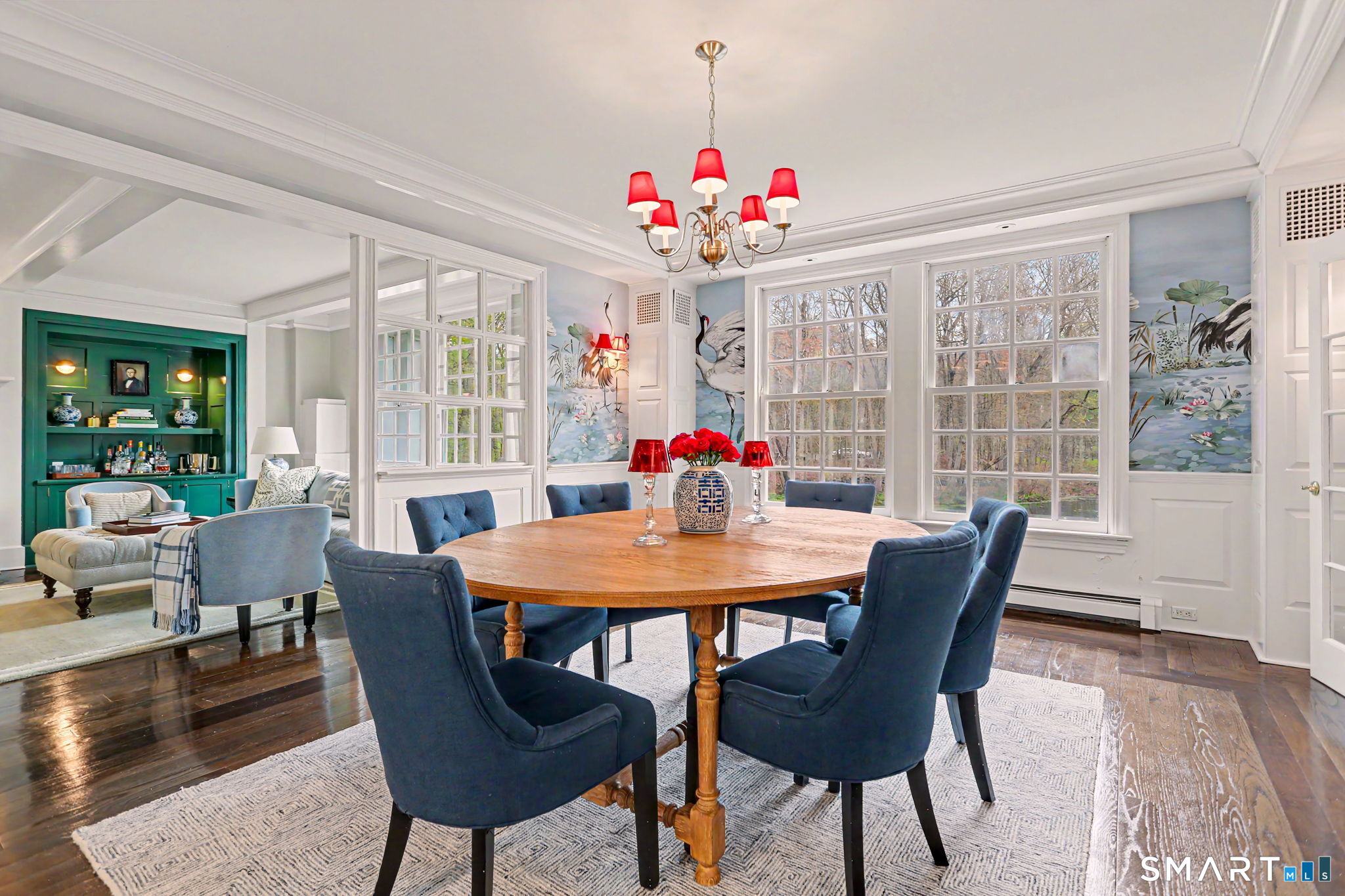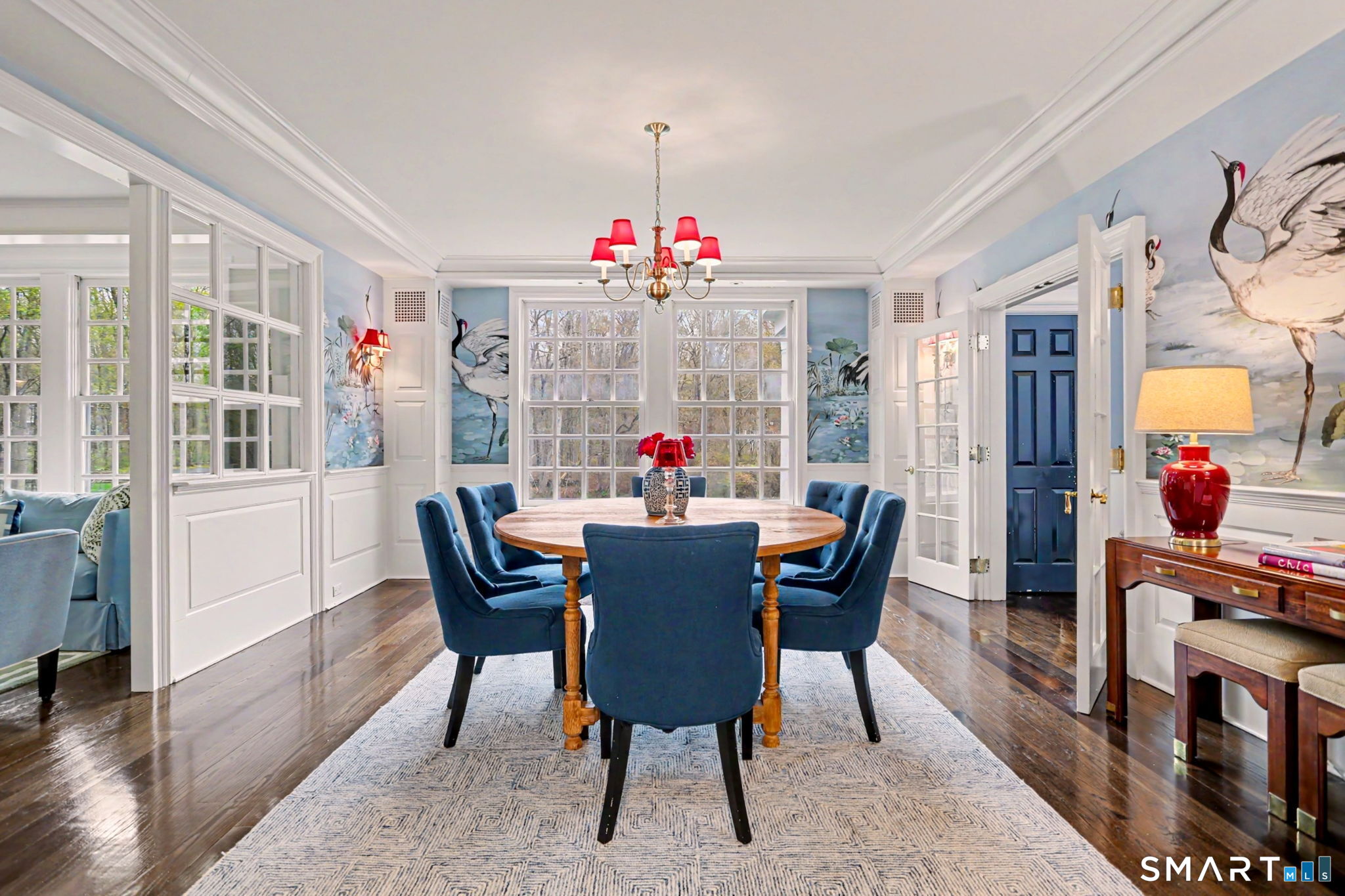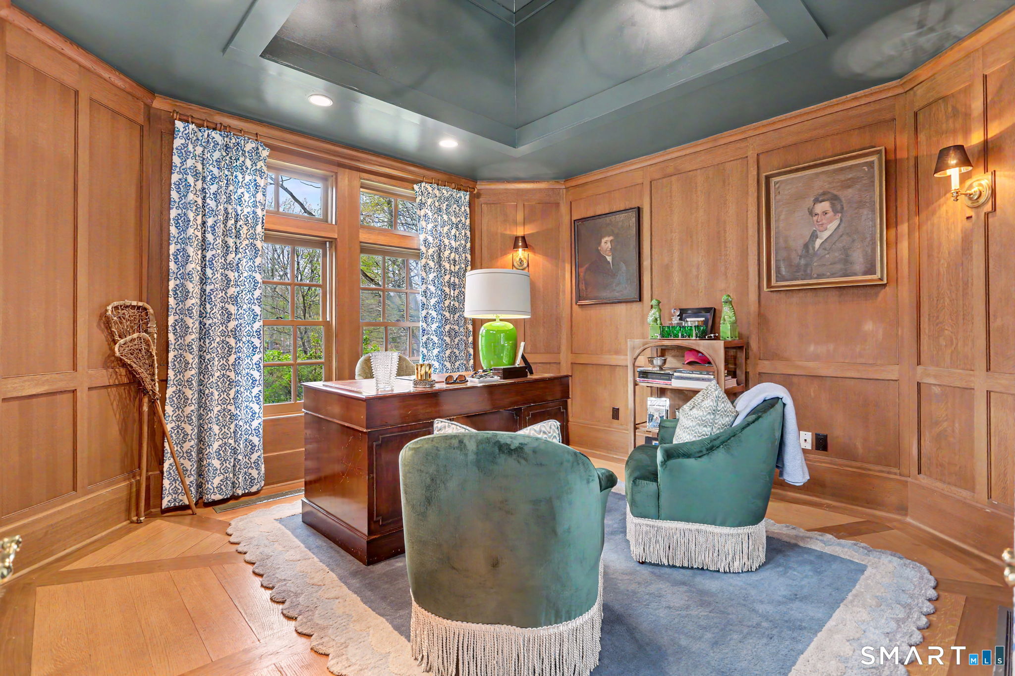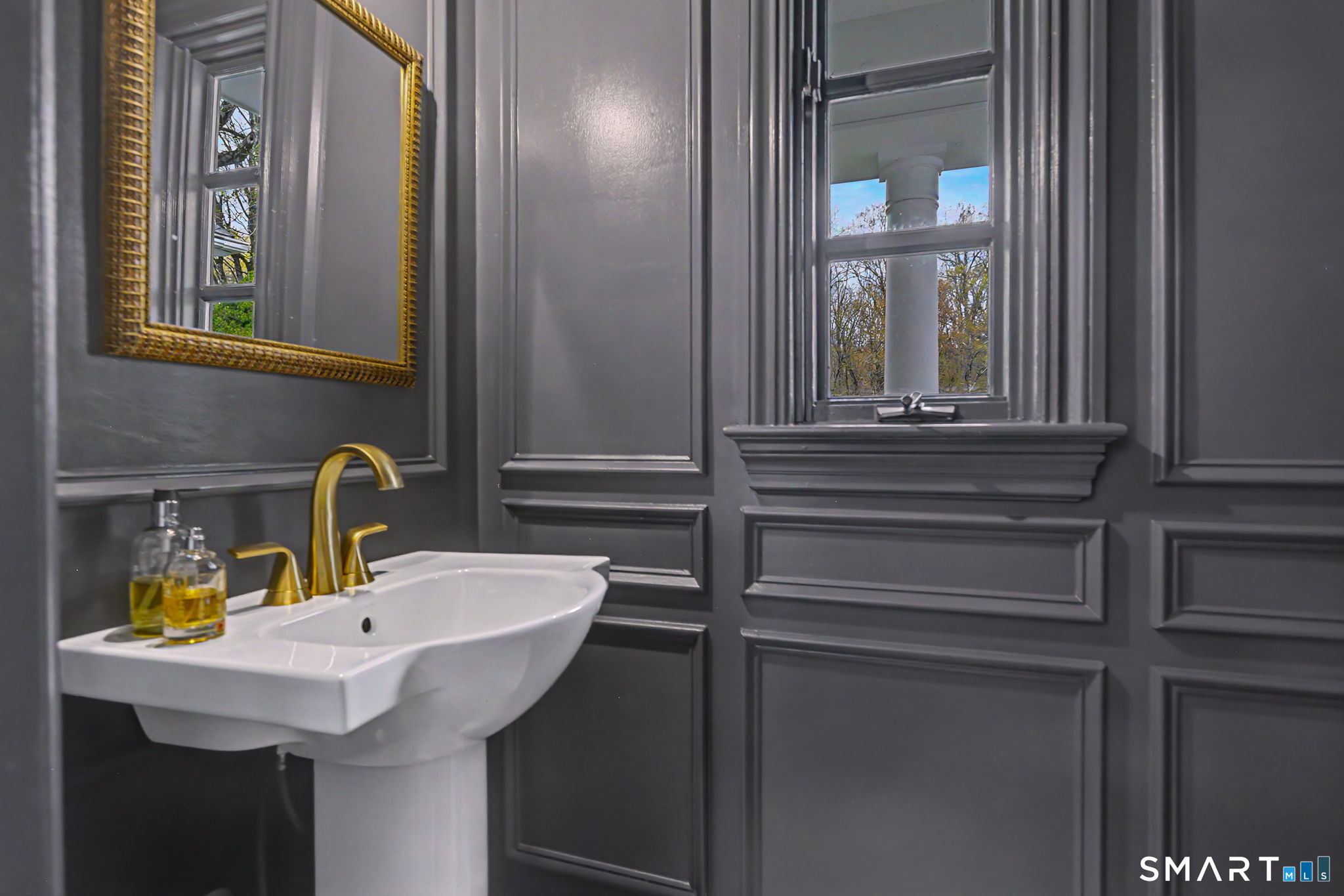 Welcome to 66 Gate Stone Lane, a quintessential Connecticut estate in the heart of historic Greenfield Hill. A gated entrance introduces this private 3.8-acre property, ideally positioned at the end of a quiet cul-de-sac among other distinguished homes. A gracious stone path leads to a double-height foyer, setting the tone for the home's refined architectural details and thoughtfully updated interiors. The formal living room features a fireplace, custom built-ins, and French doors opening to an outdoor dining area. A wood-paneled library with parquet floors offers serene views of the garden pond, while the elegant dining room flows seamlessly into a warm and inviting family room with fireplace and direct access to the patio. The home has been extensively and thoughtfully renovated throughout, including a completely redesigned chef's kitchen featuring custom cabinetry, high-end finishes, and the addition of a striking fireplace-creating a true heart-of-the-home gathering space. New hardwood floors run throughout, complemented by updated powder rooms and a state-of-the-art water filtration system. Upstairs, the expansive primary suite has been fully reimagined, offering a luxurious bedroom retreat with built-ins and window seat, along with a spa-caliber bath finished to the highest standard. Three additional guest bedrooms and a versatile additional room with Palladian windows-ideal for office or play-complete the second level.