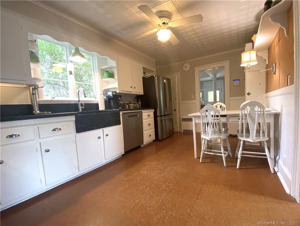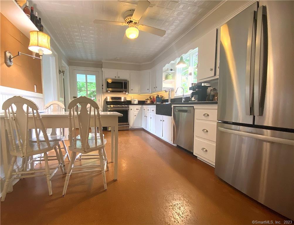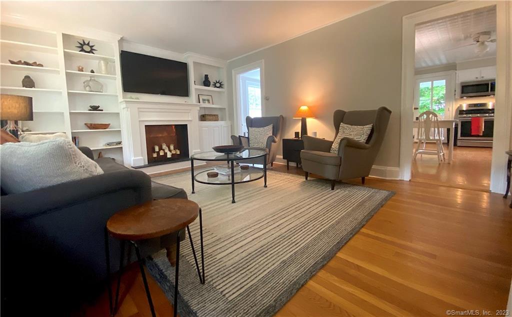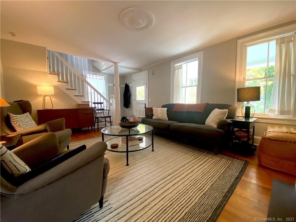 Beyond a white picket fence, sits this pretty colonial farmhouse close to Fairfield Center w/AMAZING property! You are welcomed onto the property by a semi-circle driveway, a lovely stone patio/path & abundant perennial gardens w/2 outdoor patio areas & lighted paths throughout. You enter through an idyllic wrap around porch & step into the living room fitted w/attractive built-ins & a fabulous period bannister/railing. The EI kitchen is connected to both the living room & dining room featuring new stainless steel appliances, a gas range & classic soapstone countertops & farmhouse sink. The dining room has a hip chandelier & fun pantry/bar nook. A full bath completes this main level, which has a second covered porch off the back leading to the lush outdoor living areas. On the lower level you'll find a rec/exercise room, TWO offices, a laundry room and the utility room w/ work bench. All 3 bedrooms are all on the 2nd floor w/surprisingly generous closets for the age of the home. The main full bath has hip finishes, a rain shower & great tile work. The majority of the home has hardwood floors & has been repainted throughout in soothing tones. If you enjoy nature, flowers, or perhaps a vegetable garden, this property is the ultimate! The owners have created a Blue Ribbon Outdoor Oasis! Available 7/5 or possibly sooner, TBD. Prefer rent to YEARLY FURNISHED. Very convenient to I95, downtown, schools,Fairfield Univ, shopping/restaurants & the beach
