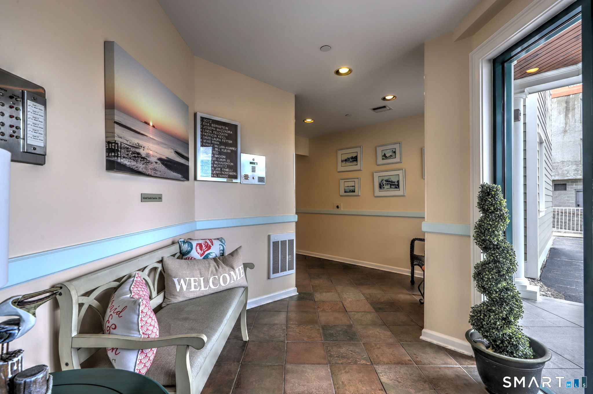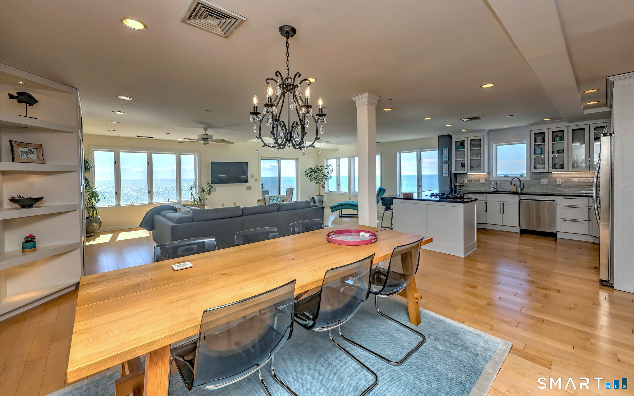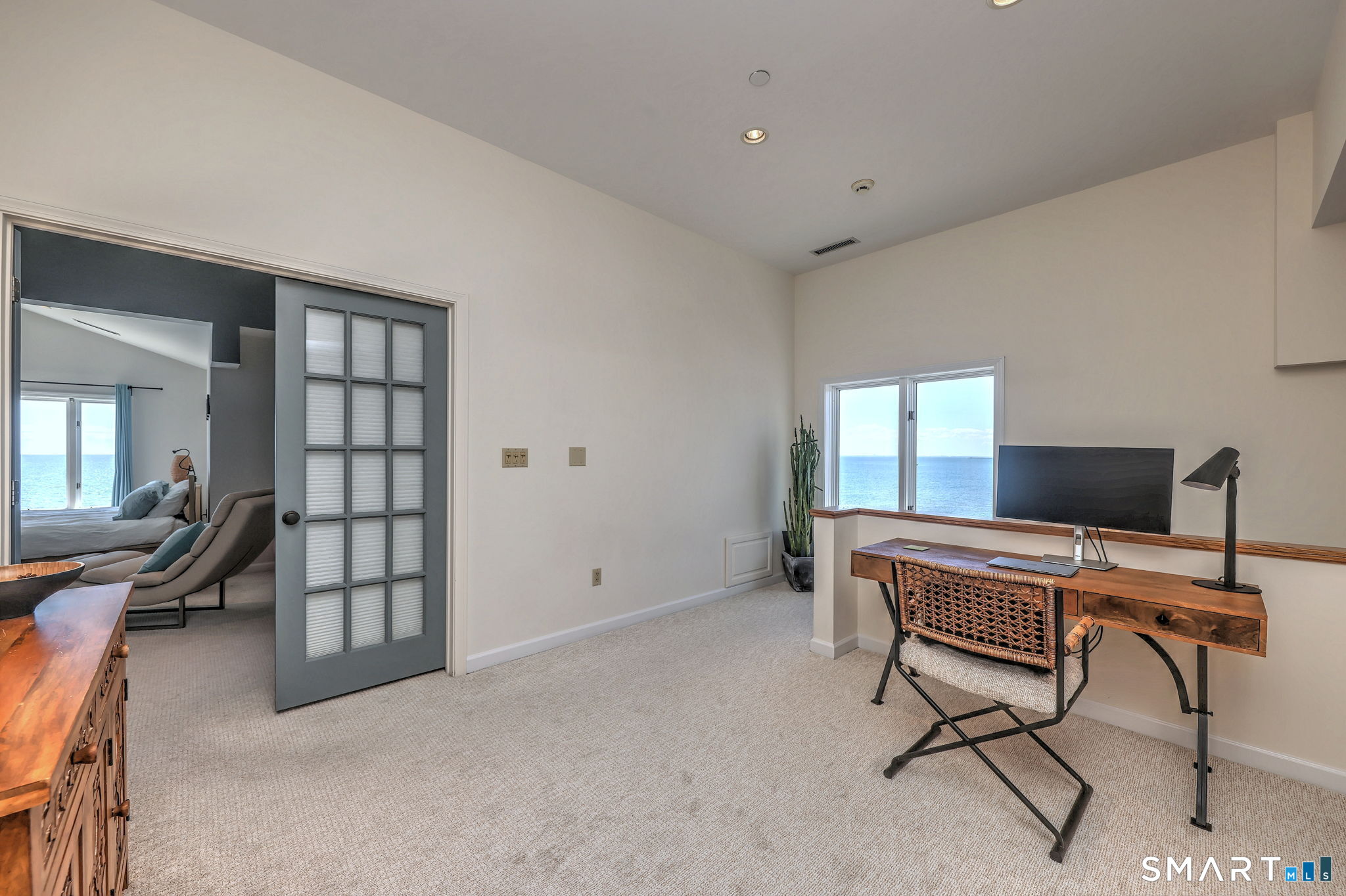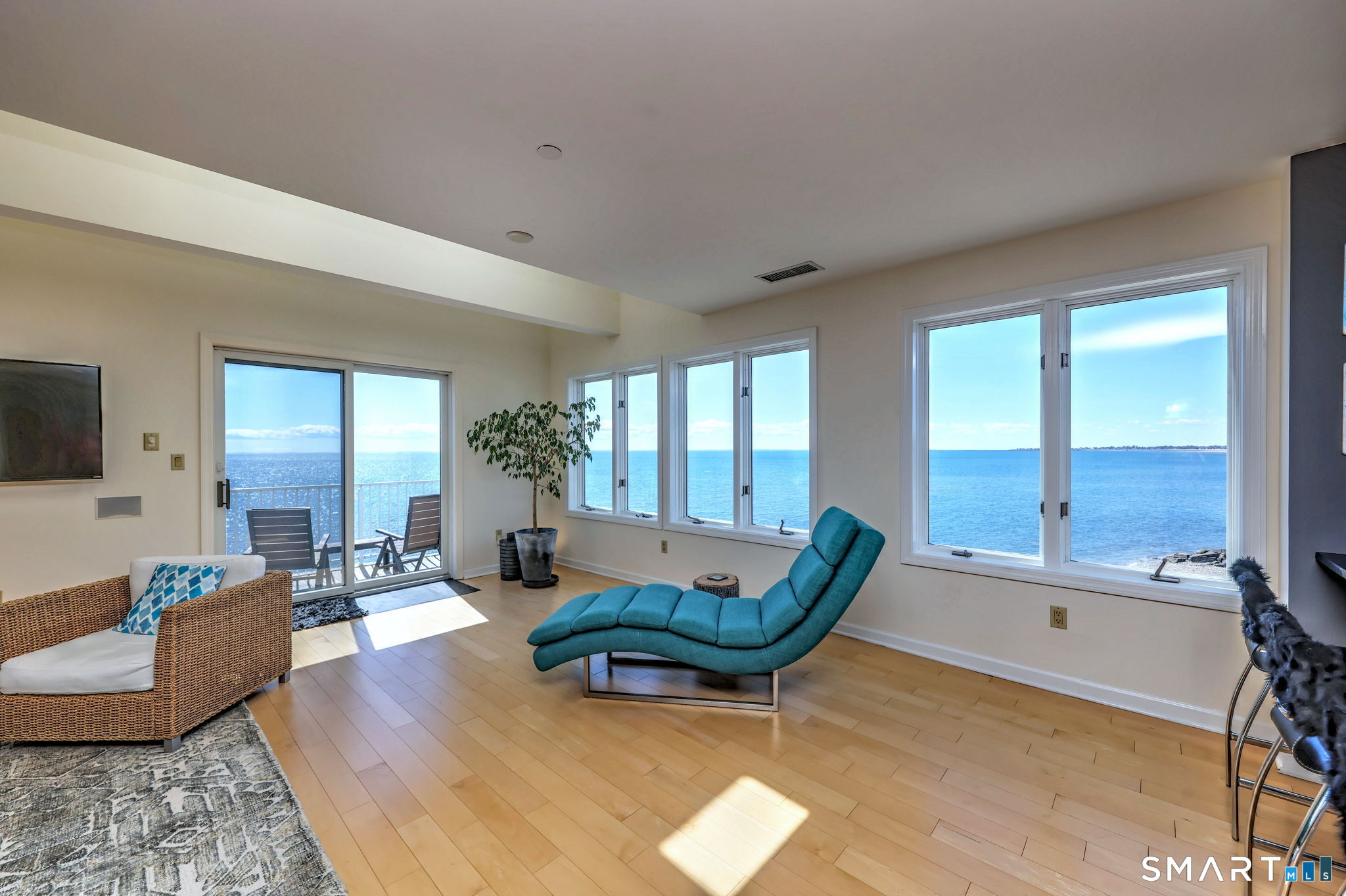 **DIRECT WATERFRONT CONDO - Private sandy beach and expansive waterside patio.** This perfectly positioned penthouse end unit offers sweeping, unobstructed views of Long Island Sound and Charles Island. The main level features a bright, open-concept living room with stunning water views, hardwood floors, custom built-ins, and direct access to the waterside balcony. The eat-in kitchen includes granite countertops, high-end appliances, abundant cabinetry, and a picturesque window over the sink framing the water. It flows seamlessly into the dining area, which also enjoys beautiful shoreline views. A full bath completes the main level. Upstairs, the luxurious primary suite captures breathtaking water views and includes a generous walk-in closet with floor-to-ceiling built-ins. The beautifully updated spa-like bath features a glass-enclosed shower, whirlpool tub, double vanity, tile flooring, and serene, unobstructed water views. A spacious home office is located just off the primary suite, also offering its own water view. With ample room for a futon or daybed, this flexible space can easily serve as a guest room. Island Sands Condominiums are ideally situated in the heart of the sought-after Walnut Beach neighborhood-a vibrant coastal community where you can stroll miles of sandy shoreline and enjoy nearby shops, cafes, and an ice cream parlor.