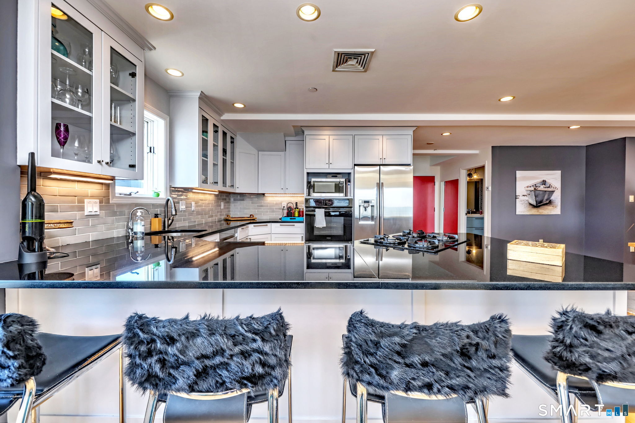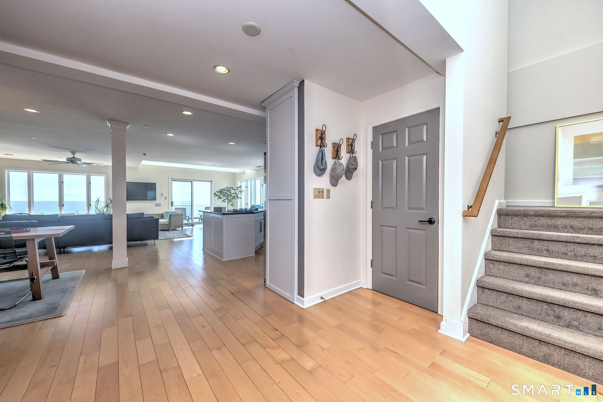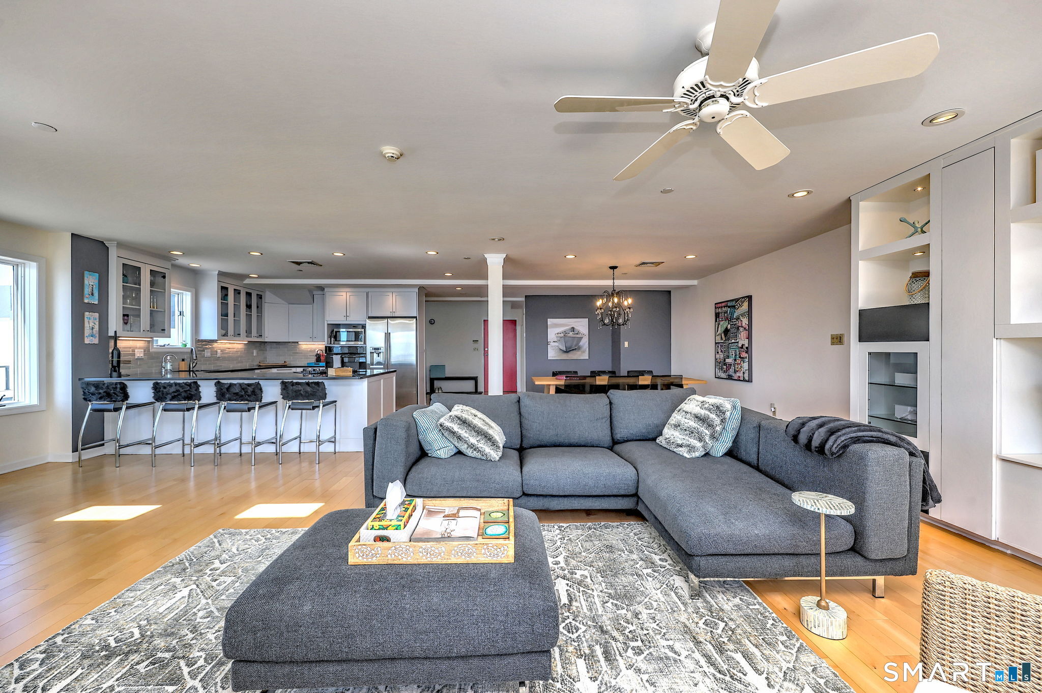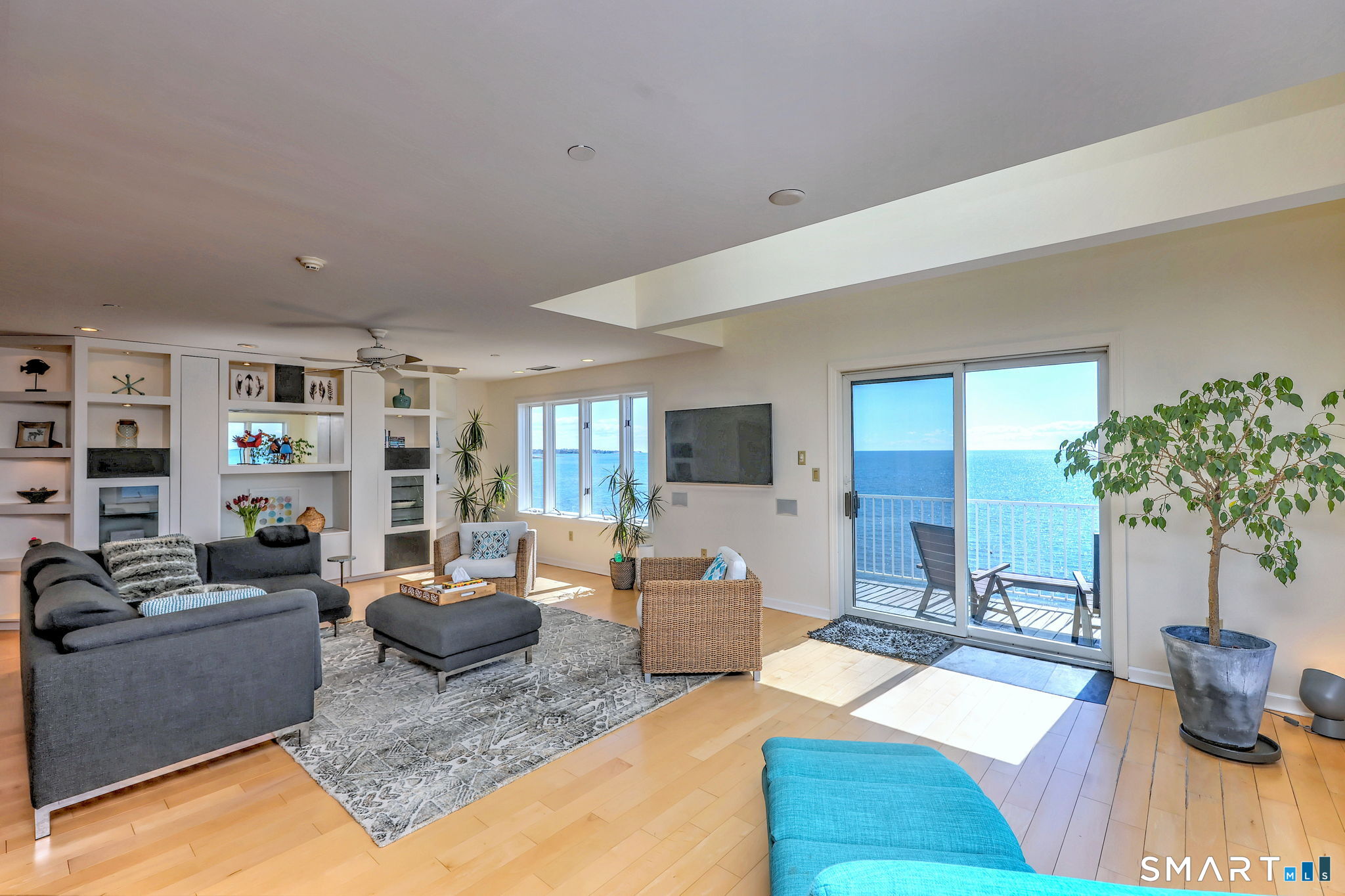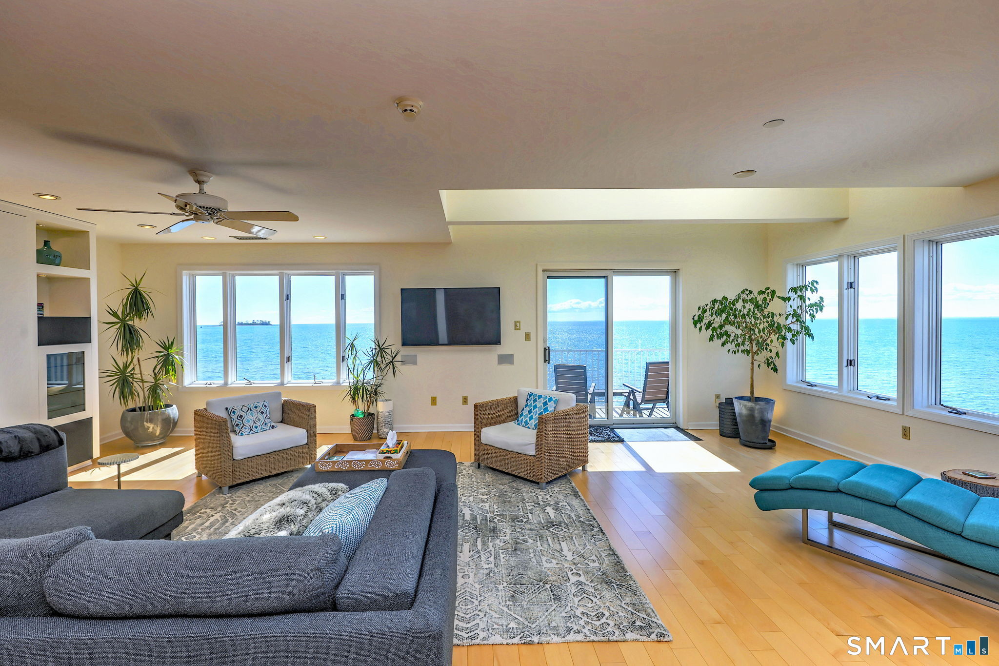 **DIRECT WATERFRONT CONDO - Private sandy beach and expansive waterside patio.** This perfectly positioned penthouse end unit offers sweeping, unobstructed views of Long Island Sound and Charles Island. The main level features a bright, open-concept living room with stunning water views, hardwood floors, custom built-ins, and direct access to the waterside balcony. The eat-in kitchen includes granite countertops, high-end appliances, abundant cabinetry, and a picturesque window over the sink framing the water. It flows seamlessly into the dining area, which also enjoys beautiful shoreline views. A full bath completes the main level. Upstairs, the luxurious primary suite captures breathtaking water views and includes a generous walk-in closet with floor-to-ceiling built-ins. The beautifully updated spa-like bath features a glass-enclosed shower, whirlpool tub, double vanity, tile flooring, and serene, unobstructed water views. A spacious home office is located just off the primary suite, also offering its own water view. With ample room for a futon or daybed, this flexible space can easily serve as a guest room. Island Sands Condominiums are ideally situated in the heart of the sought-after Walnut Beach neighborhood-a vibrant coastal community where you can stroll miles of sandy shoreline and enjoy nearby shops, cafes, and an ice cream parlor.