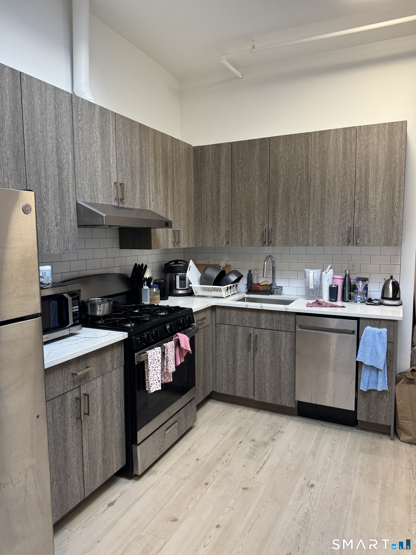 Stunning, new 1-bedroom, 1 bath, approximately 600 square feet apartment. An ideal location for a short walk to Yale's Old Campus, School of Management, Science Hill and downtown shops, restaurants and theatres. The apartment features open concept high end kitchen, appliances are new stainless refrigerator, gas stove and dishwasher, quartz system countertops, natural flooring, in-unit tower washer and dryer, split AC and heat system, tankless water heater, video security system and cable ready. Tenants is responsible utilities excluding water and sewer. Available June with good credit and 1.5 month security