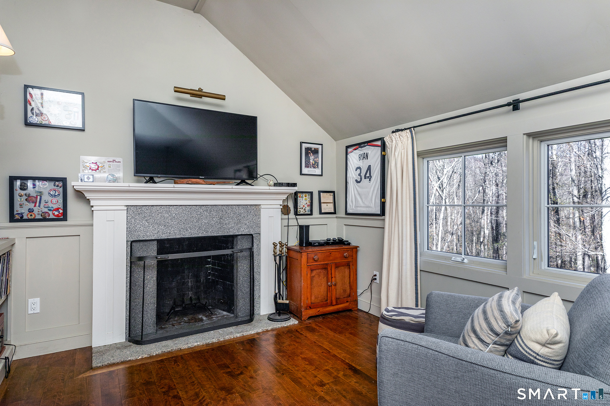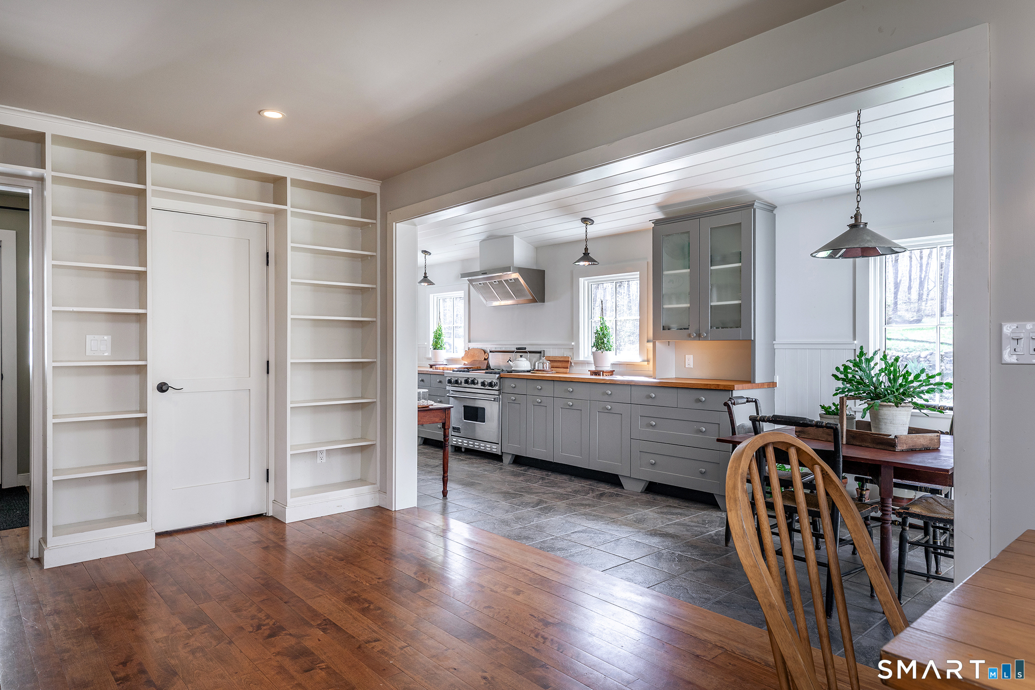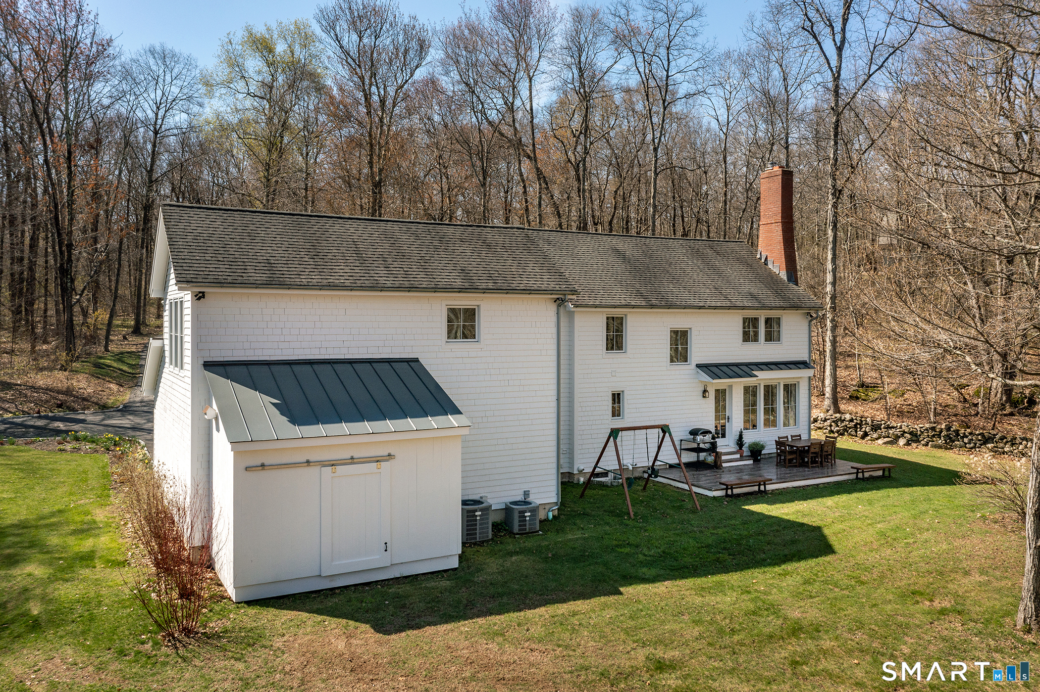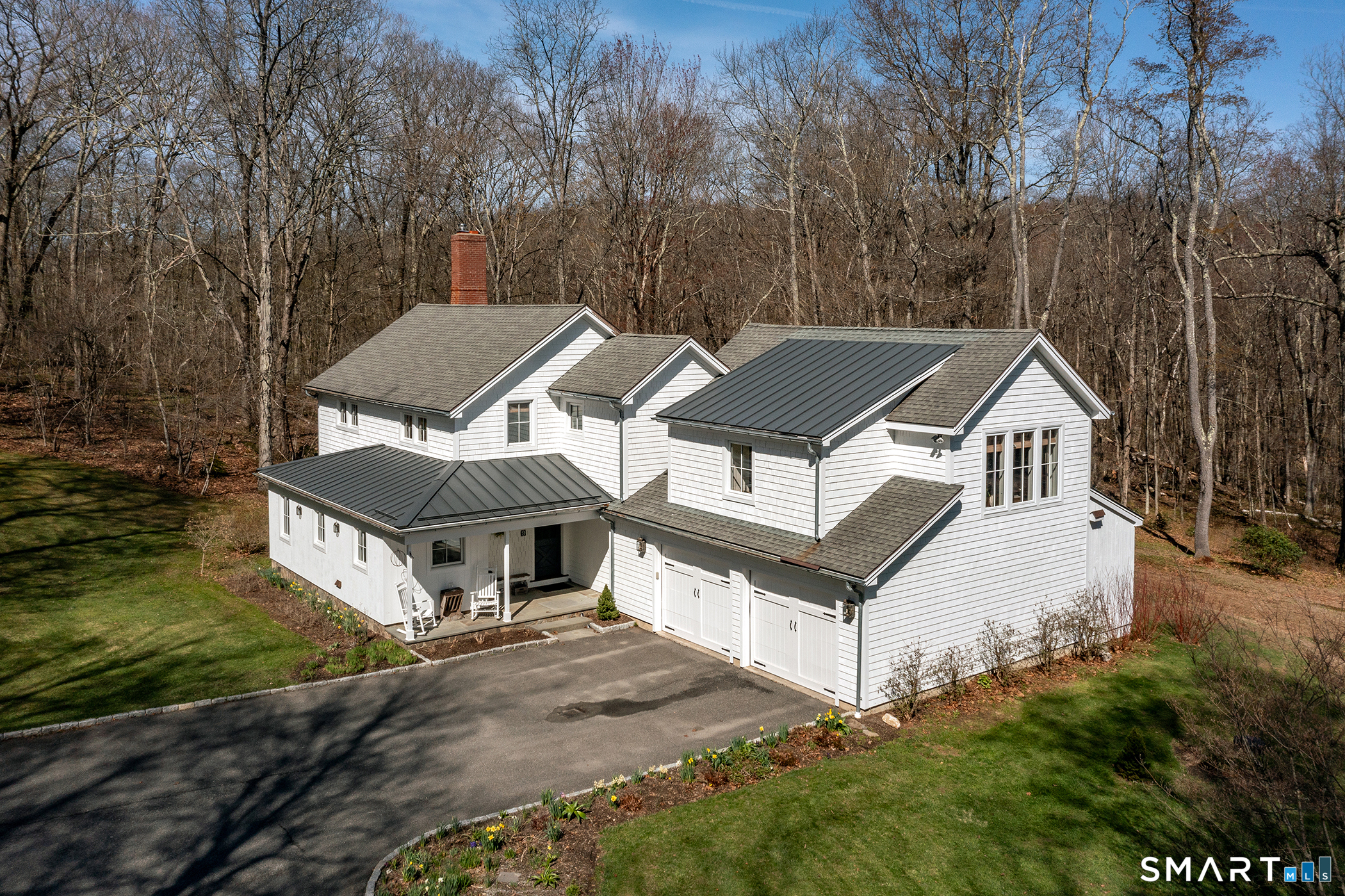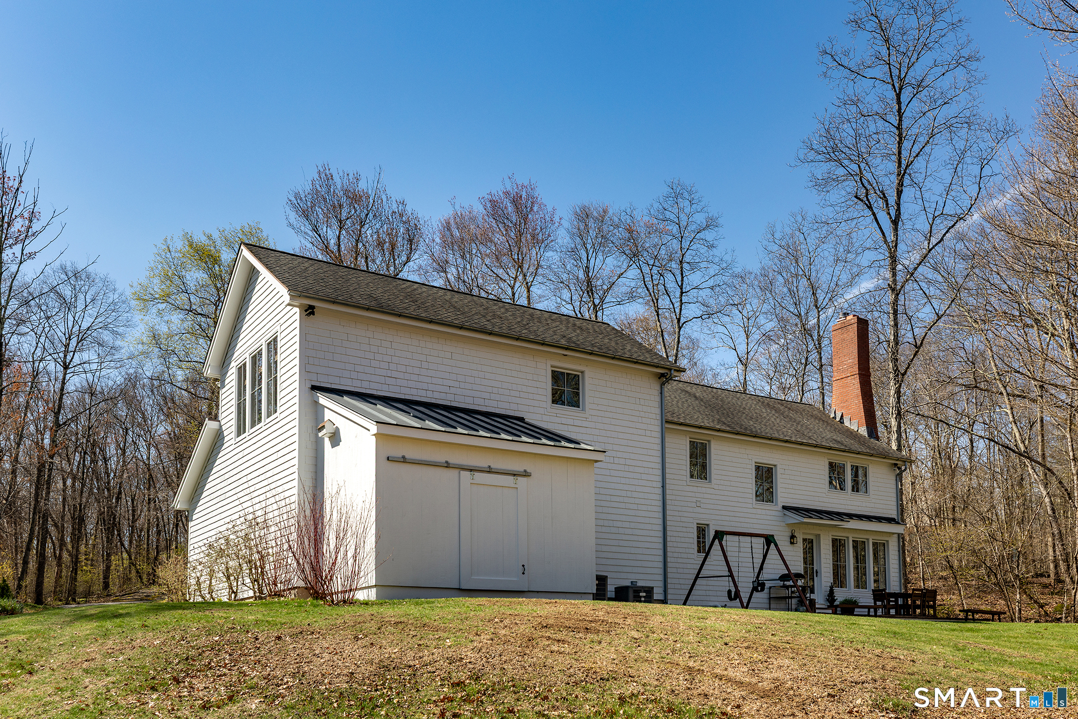Set on 14+ private acres abutting Connecticut State land, this chic three-bedroom farmhouse offers the kind of quiet that's increasingly hard to find - and interiors that make you want to stay. The main floor is built around an open, light-filled plan that flows naturally from a chef's kitchen, featuring shaker-style cabinetry, butcher block counters, a farmhouse sink, and a professional range, through a generous dining area and into a living room anchored by a fieldstone fireplace. Step outside and relax or entertain on a back deck overlooking the lawn and surrounding forest. A powder room and laundry complete the level. Upstairs, a comfortable sitting area with a second fireplace connects two well-proportioned bedrooms sharing a full bath. The primary suite is a proper retreat: a handsome built-out office, a spa bath with soaking tub, and a walk-in closet done right. Outside, a classic red barn with metal roof adds character and utility. The Litchfield Hills at their best: two hours from Manhattan, with Kent's village life, Appalachian Trail, the Housatonic River, and Mohawk Ski Mountain all within easy reach.