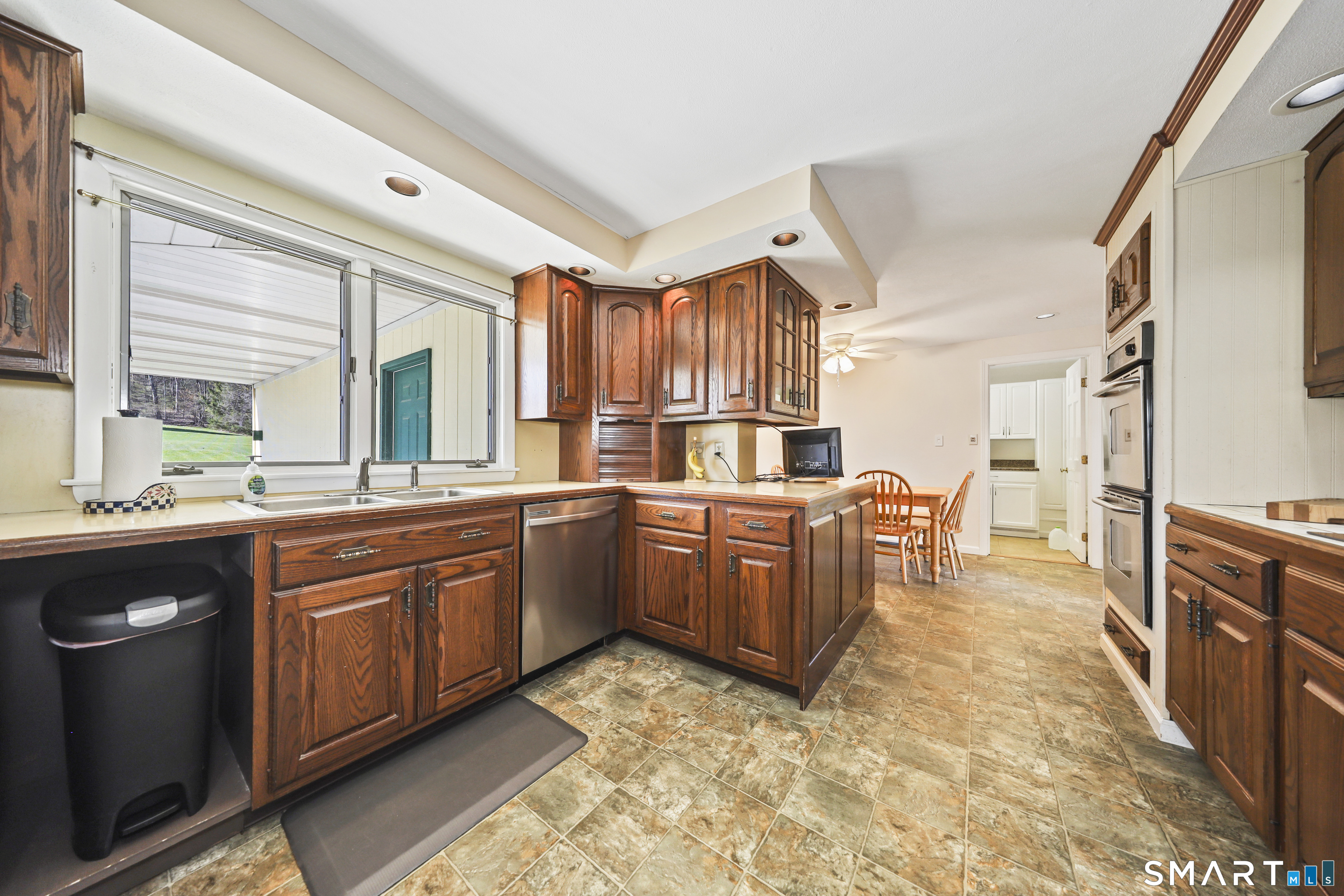 Charming ranch with easy one-level living! This 3 bedroom 2.5 bath home welcomes you in through a covered front porch, perfect for morning coffee or unwinding at the end of the day. Enjoy the views of your open yard and appreciate the gorgeous sunsets. Inside, you'll find beautiful hardwood floors and large bay windows in both the living and dining rooms, bringing in great natural light. All 3 bedrooms also feature hardwood floors. Convenient laundry on the main level inside the half bath. You'll appreciate the built-ins and tons of storage throughout. The eat-in kitchen offers plenty of space and flows into a mudroom with access to the garage; super convenient everyday living. The partially finished lower level adds even more flexibility with a summer kitchen and space that could work well for an in-law setup, rec room or extended living area. A few steps further, you will find the utility room with potential for a workshop. Outside, there's a large open yard just under an acre, and a two bay garage. Attached to the garage is a woodshed where hobbyist alike will enjoy the convenience for storing motorcycles, lawn equipment and beyond. There is also a great storage shed in the yard, making it convenient for the handy man. Great space, great layout and plenty of potential, don't miss this one!