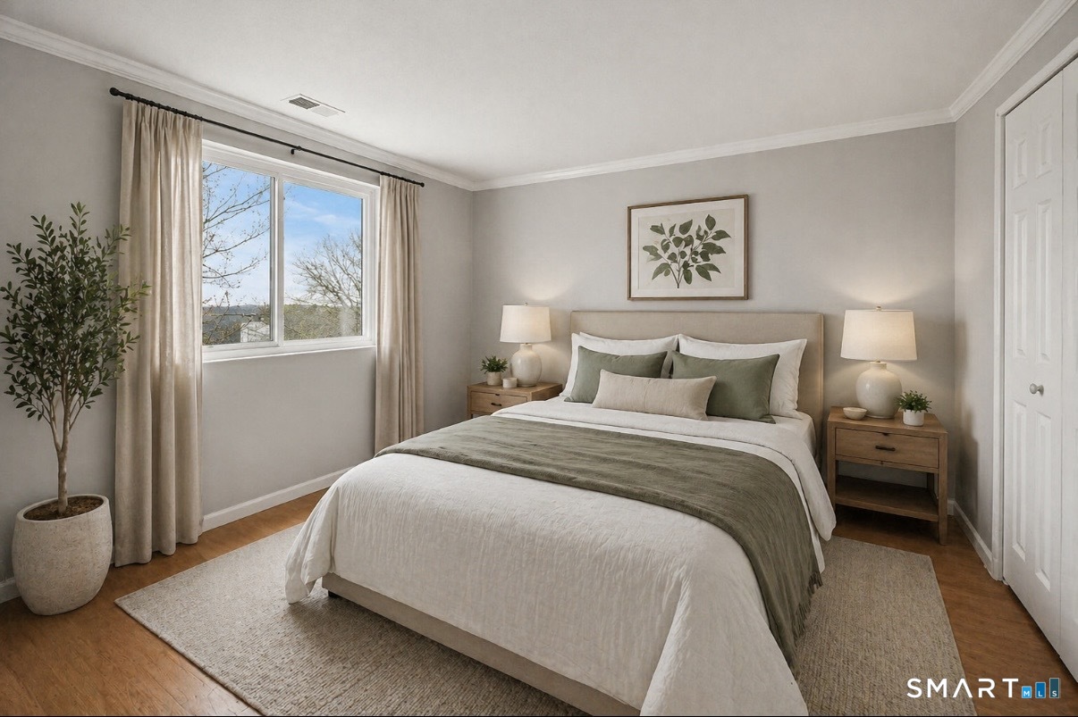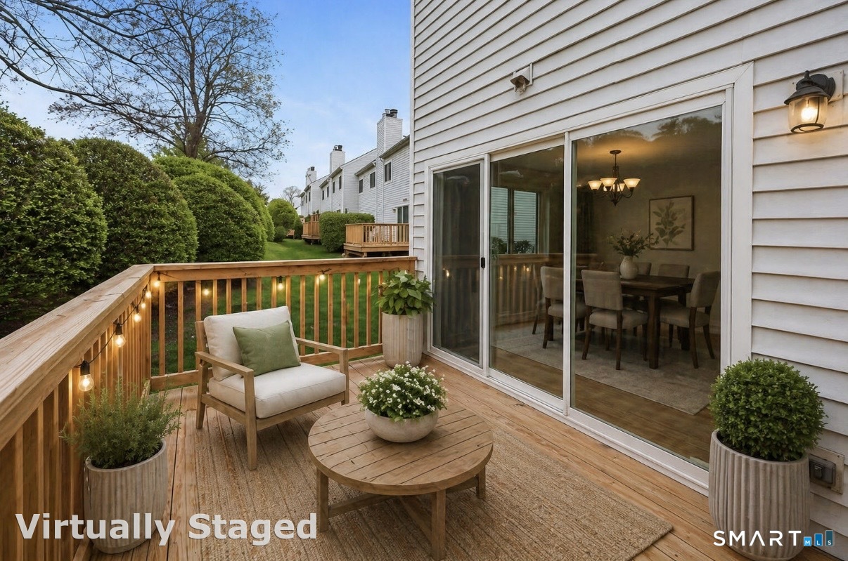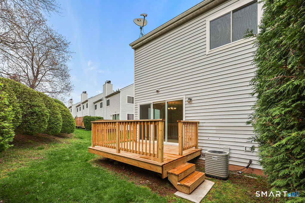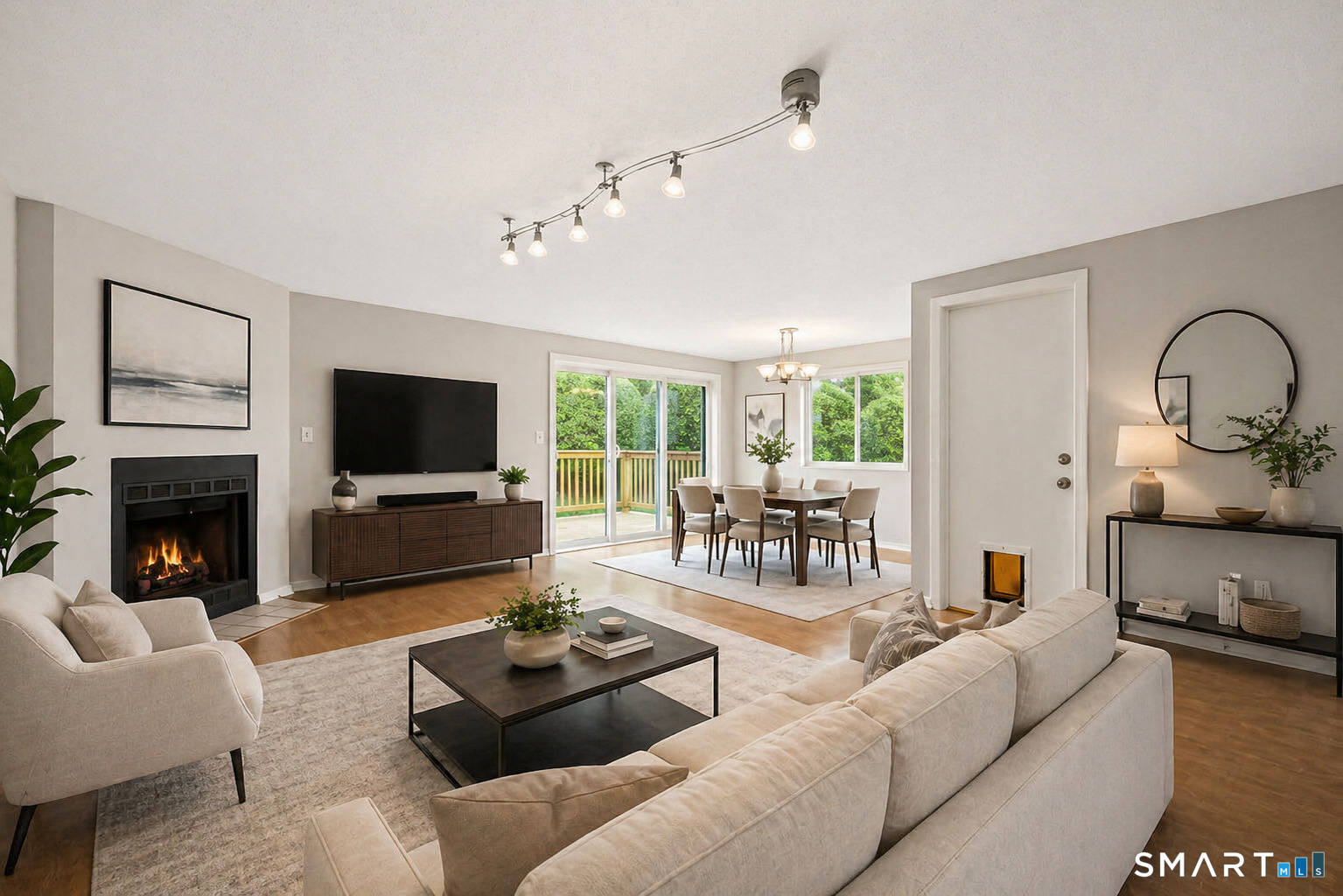 Refined, turnkey, and ideally located end-unit. Step into a sun-drenched retreat where style, space, and location converge-this is a rare opportunity in Cromwell's sought-after Fox Meadows community. Condos of this caliber, in this condition, and in this location do not come to market often... and they do not last. Perfectly positioned for today's lifestyle, this exceptional residence offers an unbeatable location with immediate access to major highways for effortless commuting, while remaining walkable to shopping, dining, and everyday conveniences-a rare blend of accessibility and neighborhood charm. Freshly painted throughout and thoughtfully updated with new kitchen appliances, brand new carpet in the upstairs area this home is truly move-in ready. The main level showcases an open-concept design ideal for both everyday living and entertaining, featuring a spacious living room anchored by a beautiful fireplace, a dedicated dining area, and a stylish bar space seamlessly connecting to the kitchen. A dramatic three-panel sliding door floods the space with natural light and opens to a private deck-creating the perfect indoor-outdoor flow. A convenient half bath and direct access to the oversized garage, complete with abundant storage, cabinetry, and utility space, add to the home's functionality.