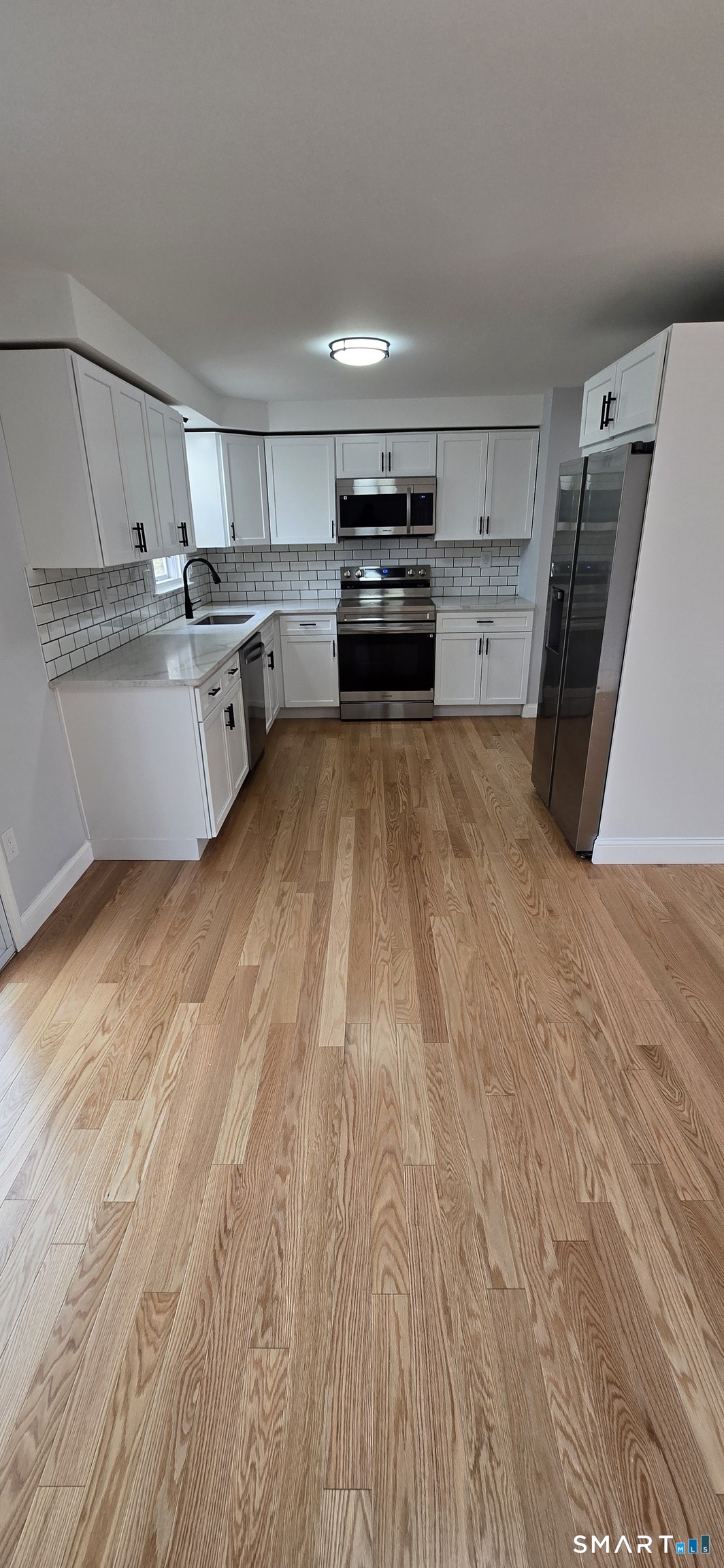 Beautiful remodeled Raised Ranch offers 3 bedrooms 2.5 bathrooms kitchen with granite countertops and stainless appliances, spacious living room with recessed lighting, dining area with sliders to deck overlooking private wooded back yard. lower level family room with fireplace and laundry room with 1/2 bathroom and above ground walkout to back yard