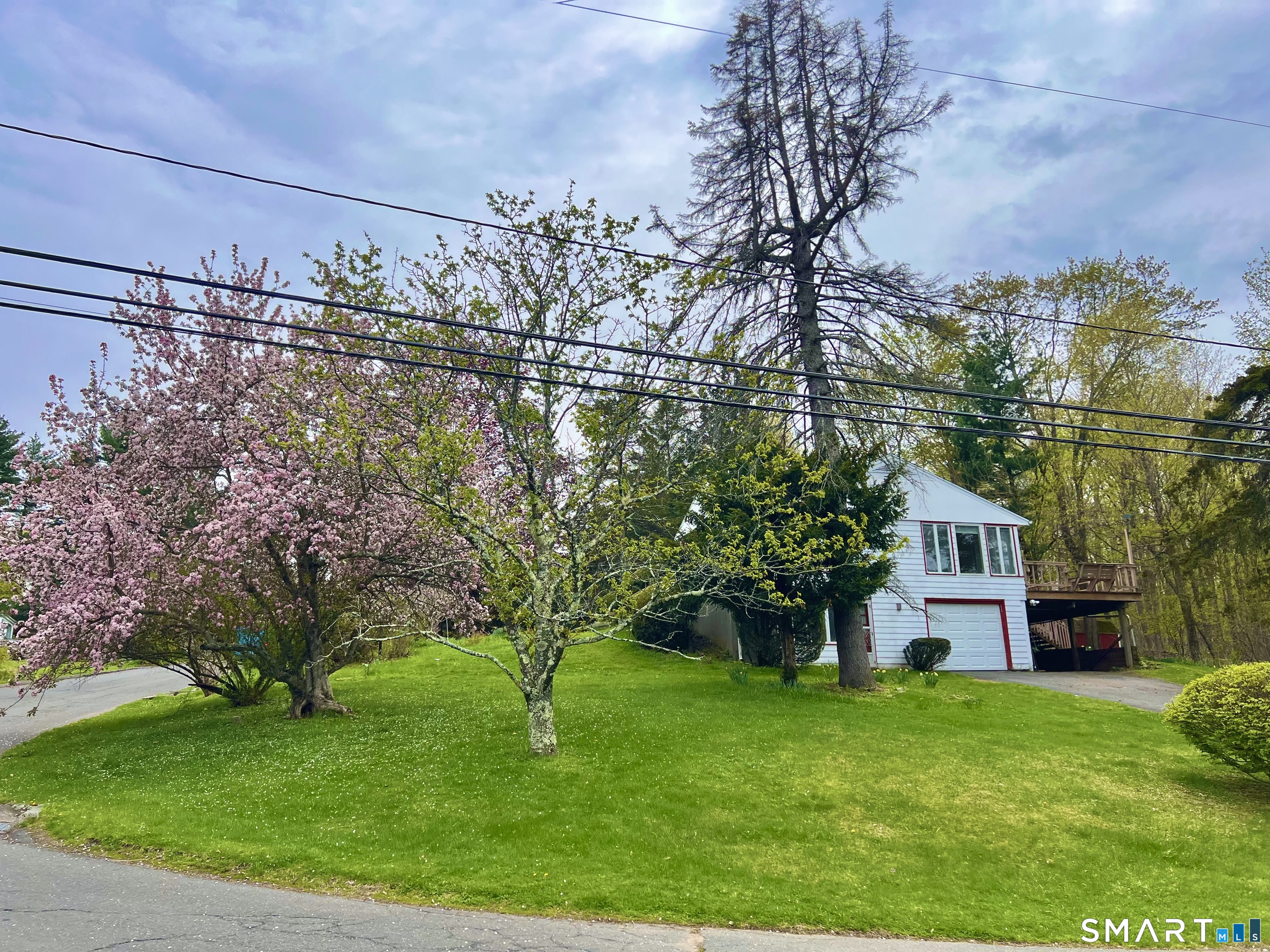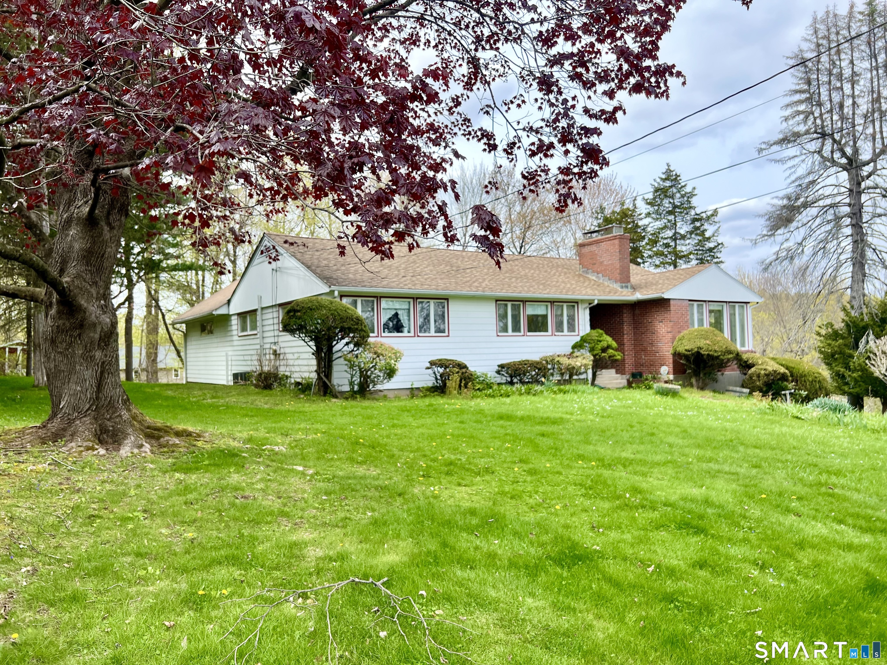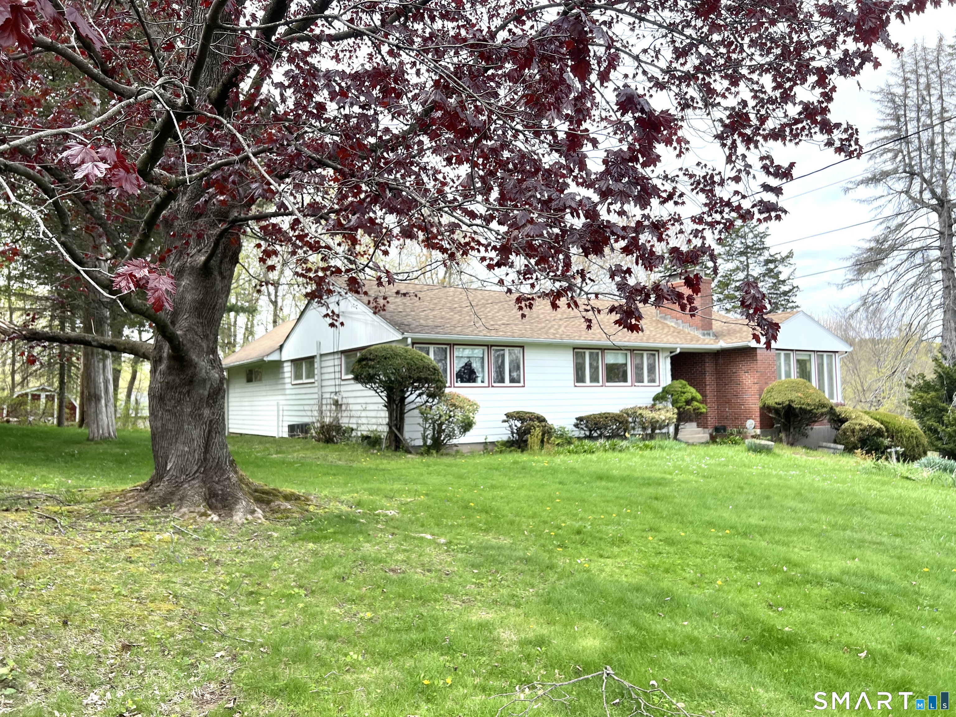 Lovely L-shaped ranch in a highly desirable neighborhood featuring a master addition ensuite with a spacious bedroom, vaulted ceilings, walk-in closet with pocket door, full bath with jacuzzi tub and stand-up shower, and sliders to a deck that overlooks flowering trees and excellent neighborhood views. The home offers a generous living room with fireplace, formal dining room with chandelier, and big picture windows that flood the space with light and showcase the scenery from all angles. The eat-in kitchen includes granite counters, generous amount of oak cabinets, a pantry, a picture window, and a convenient door to the deck. Two additional bedrooms on the main level, a second full bath with tub and separate shower, and hardwood floors flow throughout with tile in the bathrooms; a walk-in cedar closet on the main level is a delightful surprise. The lower level can easily be converted into an in-law apartment and currently features a family/rec room, a large room with French doors and laminate floors suitable for a bedroom, media room, or second family room, another room with a wood stove and private exterior access, a half bath, laundry, and garage access. updated mechanical, are all Sited on a corner lot with a nice yard and perennial gardens, this home awaits a few personal touches to make it simply amazing. The Home is being sold "In As Is Condition", come and see why you will want this house to be your Home Sweet Home.