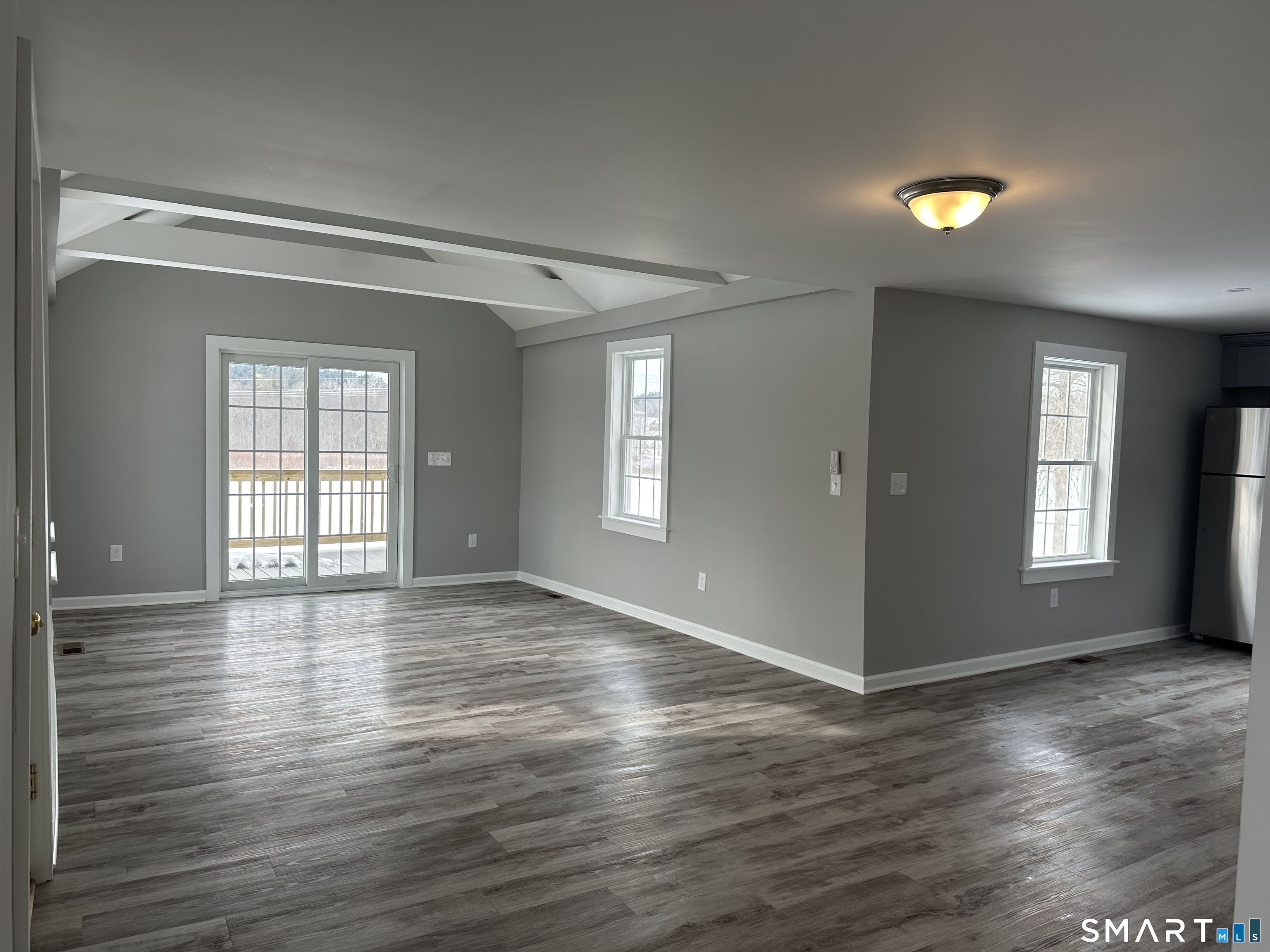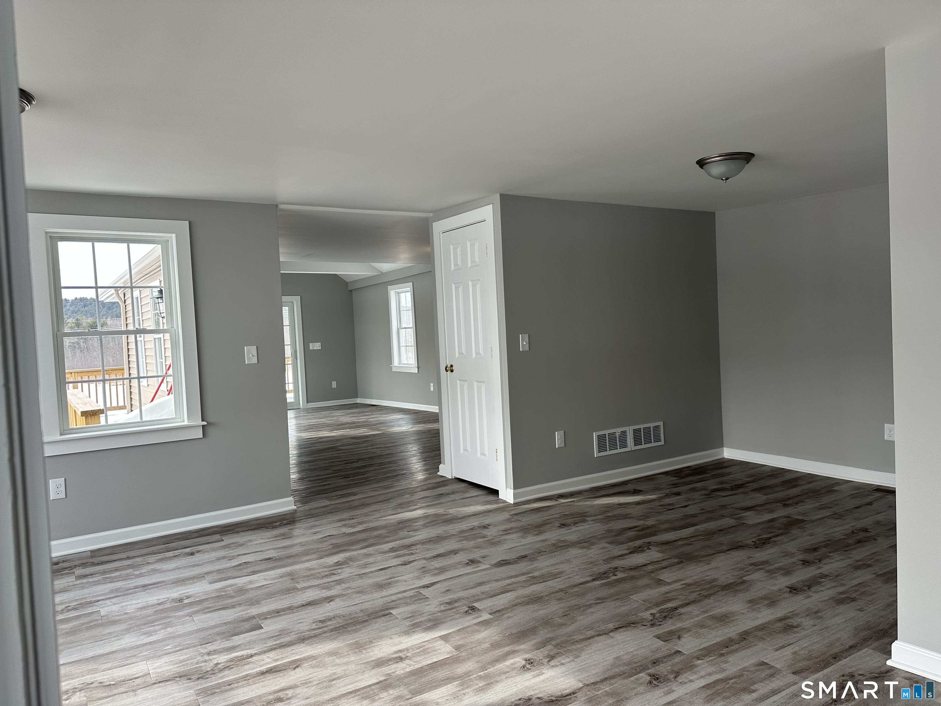 Ground up renovation on this 1810 farm house. As close to new as can be. Two bedroom home. Each bedroom has its own bathroom. A first floor bedroom and a second floor bedroom. Half bath on first floor. Newly renovated kitchen features SS appliances, ample cabinetry, granite counters. Open floor plan - kitchen opens to dining area which opens to the family room with cathedral ceiling, and a large living room. An enclosed sunroom porch offers a great space to enjoy solar heat and great views. The wrap around deck, located off of the family room provides a pavilion canopy and offers magnificent views. Propane hot air heat, central a/c, and ceiling fans. This 4 acre property has a small pond and is surrounded by preserved farm land. A great home for empty nesters looking to downsize and experience new. Tenant pays for propane and electric. Enjoy your panoramic views from the privacy of your deck and sunroom.