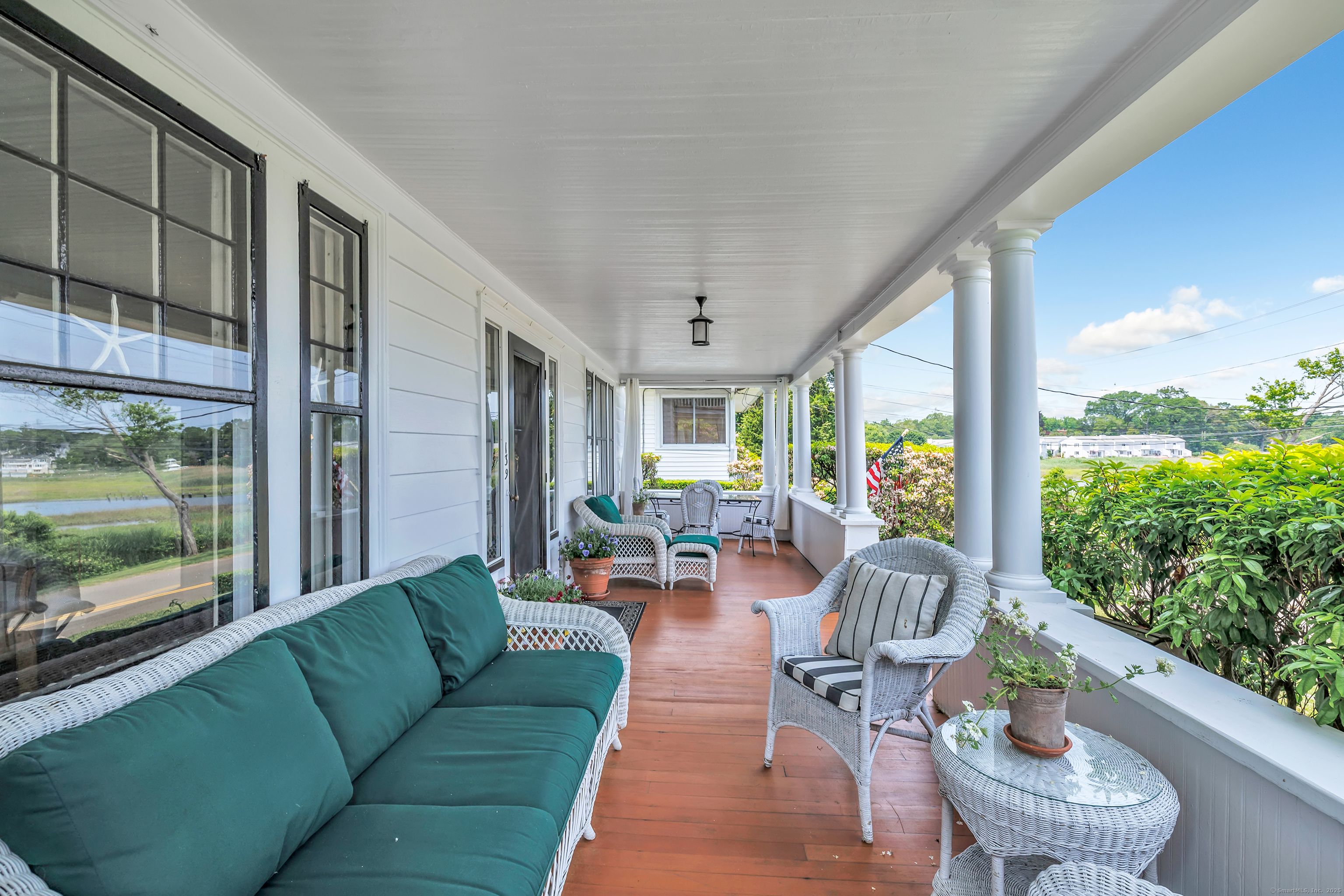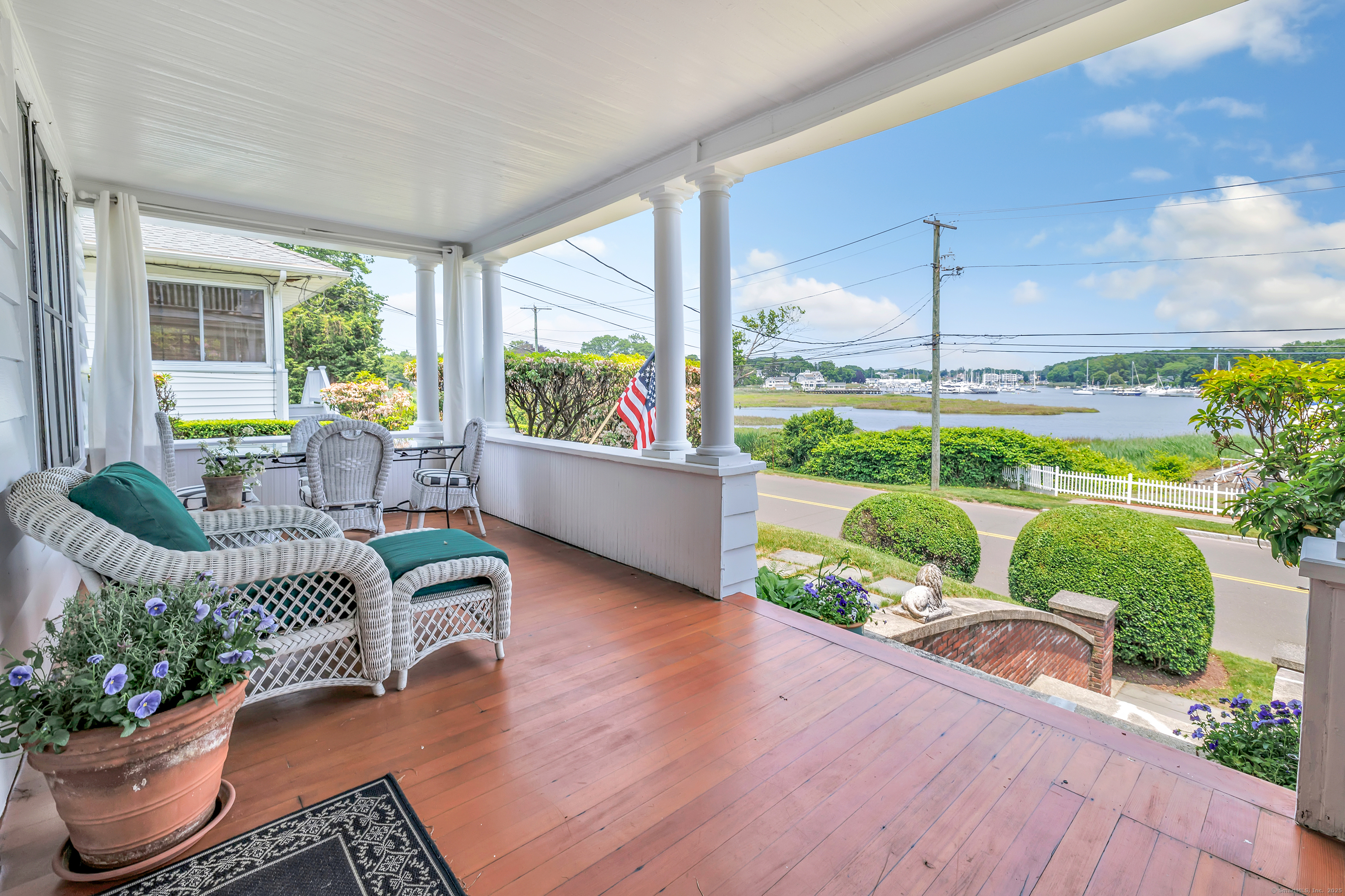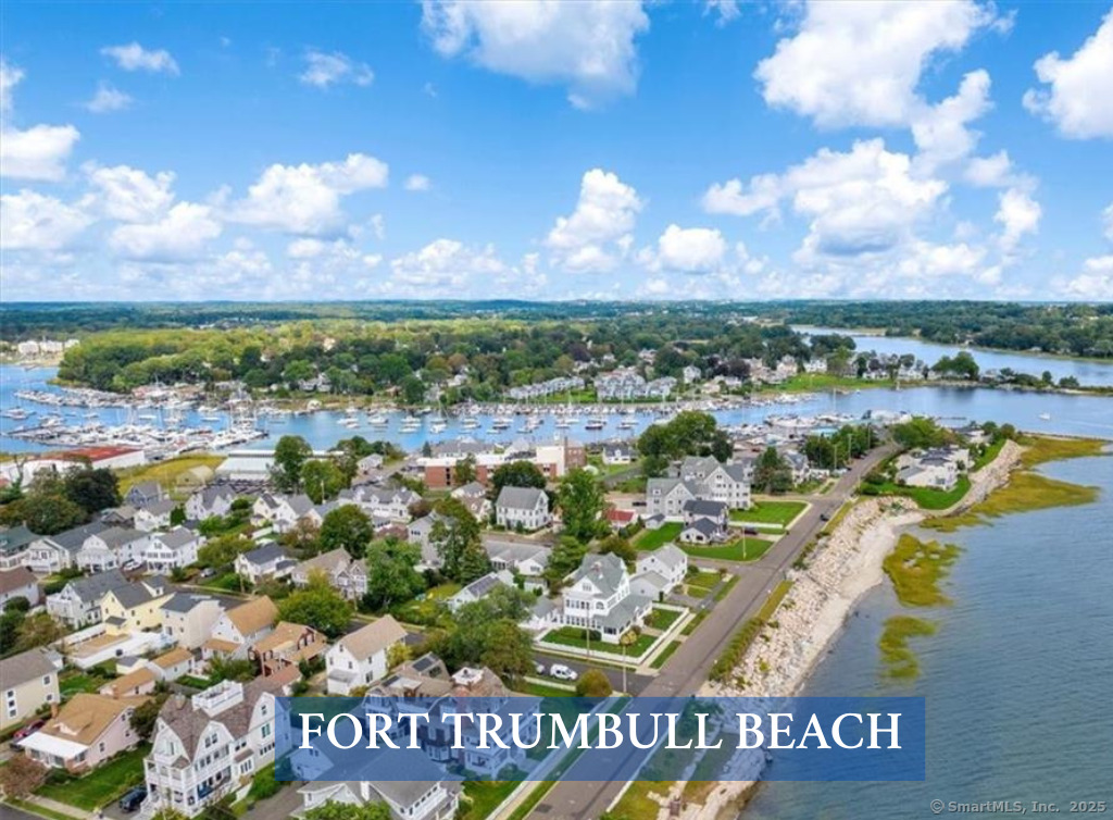 An exceptional coastal compound overlooking Milford Harbor, this one-of-a-kind waterfront estate features a main residence with thoughtful updates plus a fully detached Nantucket inspired guest house and three-car garage. Just two blocks from Fort Trumbull Beach and the Milford Yacht Club, and minutes to town shops, restaurants and Metro North, the property offers private beach access and direct harbor views creating an unmatched blend of lifestyle, location, and flexibility. The main home showcases timeless architecture, high ceilings, a formal living room w/fireplace and a den with harbor views. Modern updates include an expansive open concept kitchen/family room with fireplace, large island, dining area and sliders to a new waterfront deck. The spacious covered front porch overlooking the harbor is perfect for summer evenings. Upstairs, the harbor-facing primary suite offers a private deck and full bath. Two additional bedrooms and a third-floor guest/bonus suite w/full bath complete the home. The guest house spans 1768 SF and features a first floor rec room with wet bar, full bath, patio with hot tub hookup and outdoor shower. Located on the upper level is a large harbor view room with fireplace and balcony, two additional rooms, a common area and full bath ideal for guests or extended family. Bluestone patios connect both residences creating seamless indoor-outdoor living along the harbor. A RARE coastal retreat with unmatched versatility. This property is a MUST SEE!
