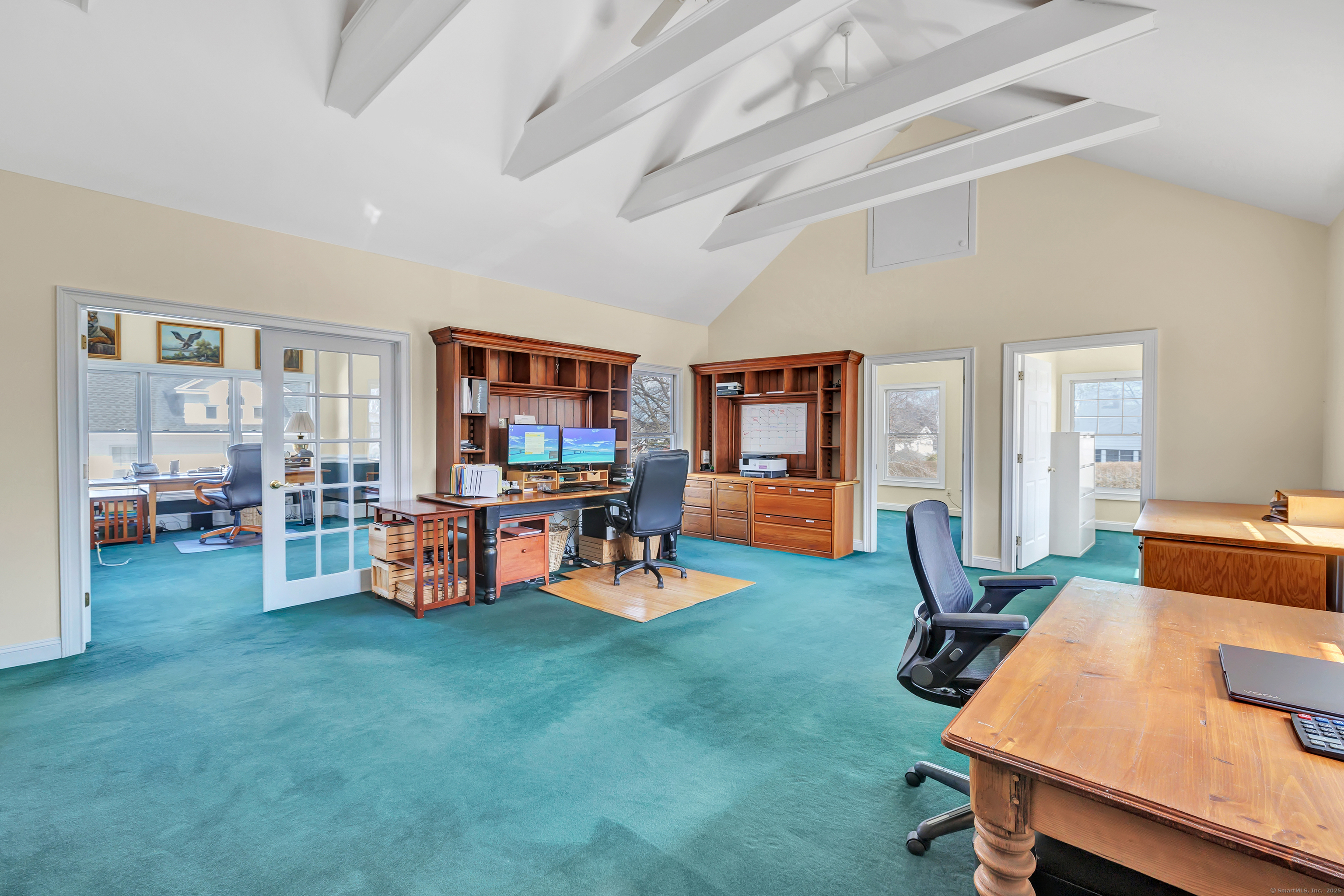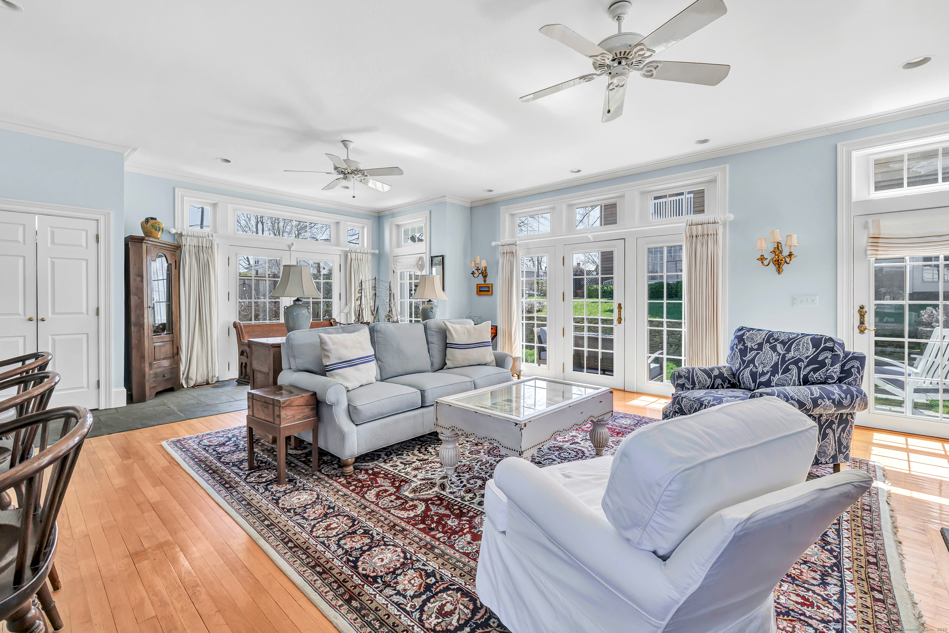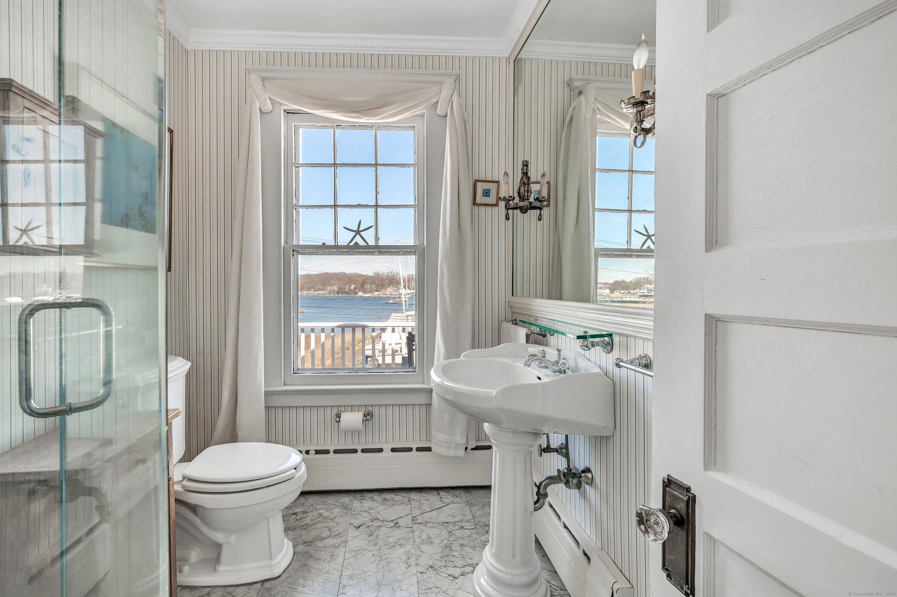 An exceptional coastal compound overlooking Milford Harbor, this one-of-a-kind waterfront estate features a main residence with thoughtful updates plus a fully detached Nantucket inspired guest house and three-car garage. Just two blocks from Fort Trumbull Beach and the Milford Yacht Club, and minutes to town shops, restaurants and Metro North, the property offers private beach access and direct harbor views creating an unmatched blend of lifestyle, location, and flexibility. The main home showcases timeless architecture, high ceilings, a formal living room w/fireplace and a den with harbor views. Modern updates include an expansive open concept kitchen/family room with fireplace, large island, dining area and sliders to a new waterfront deck. The spacious covered front porch overlooking the harbor is perfect for summer evenings. Upstairs, the harbor-facing primary suite offers a private deck and full bath. Two additional bedrooms and a third-floor guest/bonus suite w/full bath complete the home. The guest house spans 1768 SF and features a first floor rec room with wet bar, full bath, patio with hot tub hookup and outdoor shower. Located on the upper level is a large harbor view room with fireplace and balcony, two additional rooms, a common area and full bath ideal for guests or extended family. Bluestone patios connect both residences creating seamless indoor-outdoor living along the harbor. A RARE coastal retreat with unmatched versatility. This property is a MUST SEE!