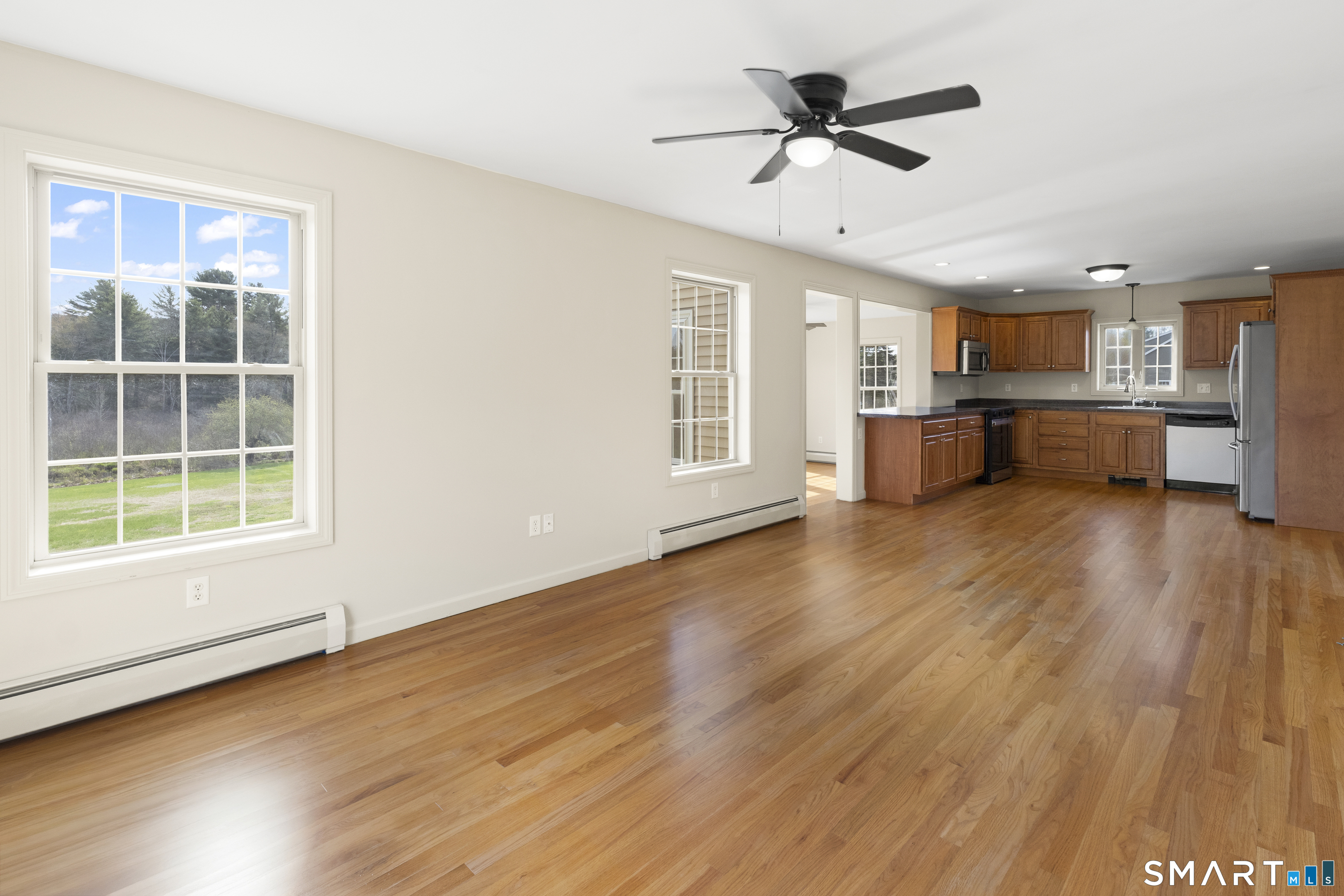 Enjoy this move-ready 3 Bedroom/ 2 bath home on 1.6 acres that abuts the Snake Meadow Brook. Hardwood floors on main level and carpeting in upstairs bedrooms. 2 car underneath garage, with a finished room for multi-purposes. Updated mechanicals. Generac 8kw whole house generator for peace of mind. Open kitchen with multiple options for eat in or separate dining. Sun room provides multiple options for tv room, reading room or formal dining as well.