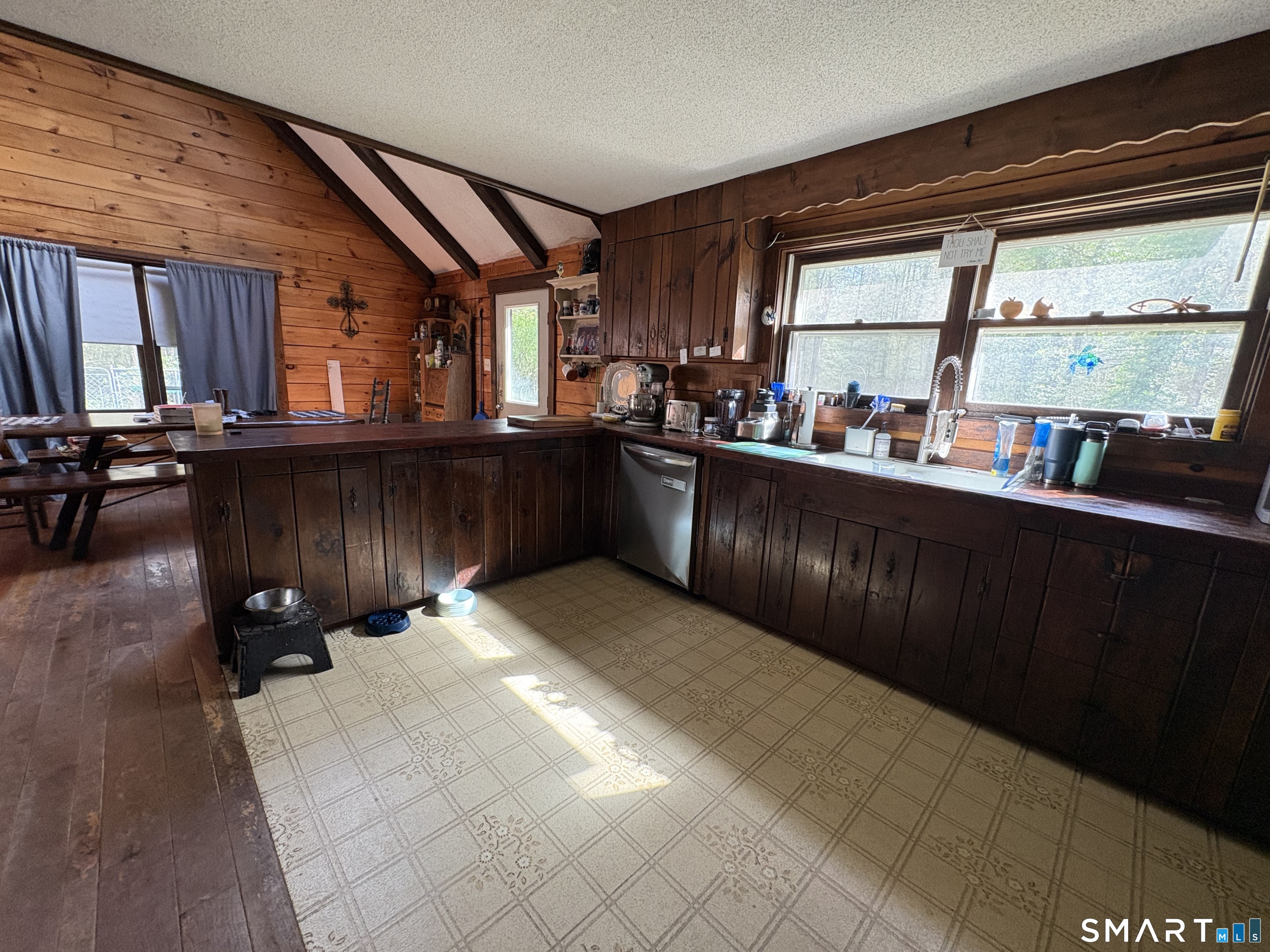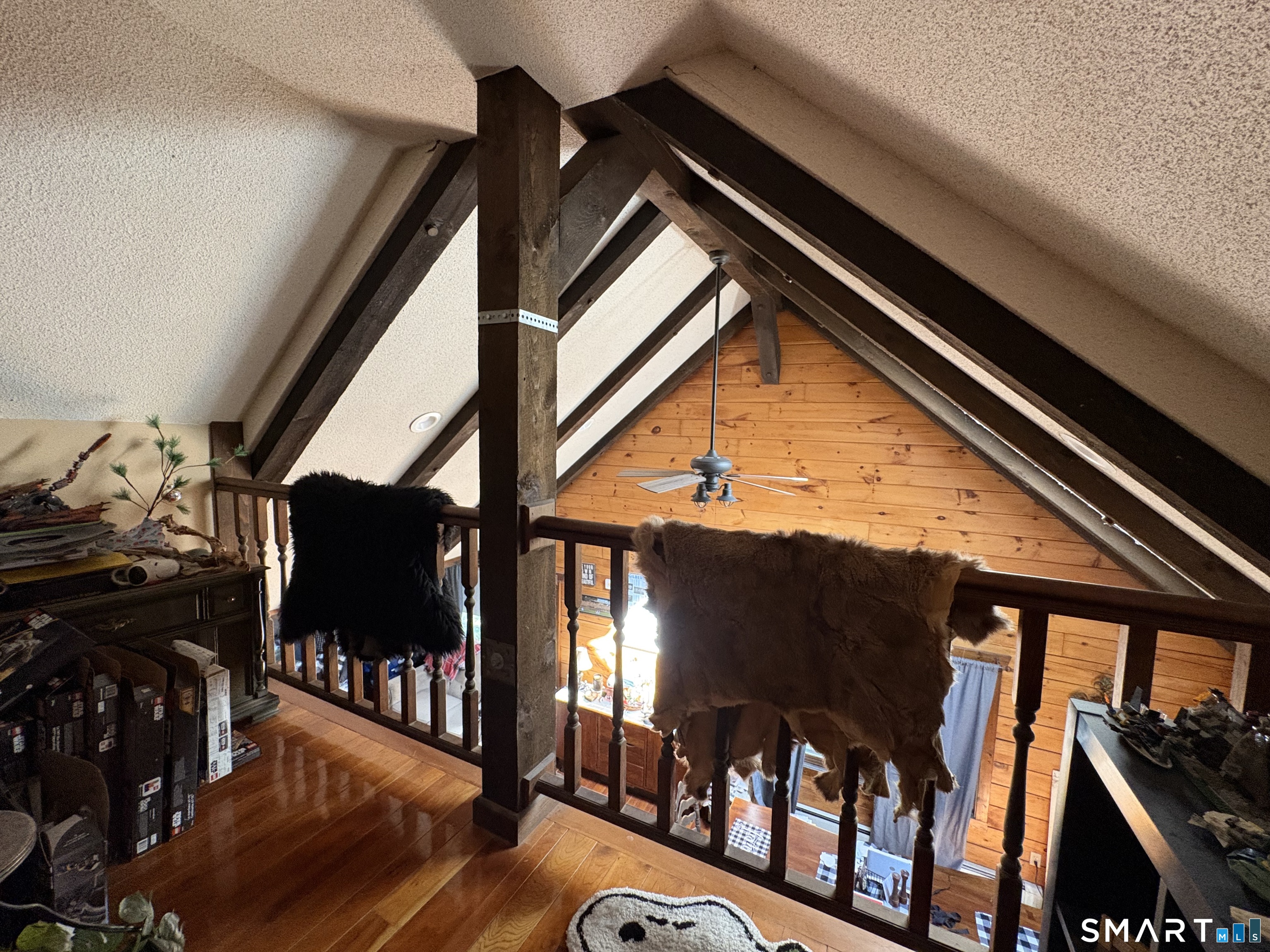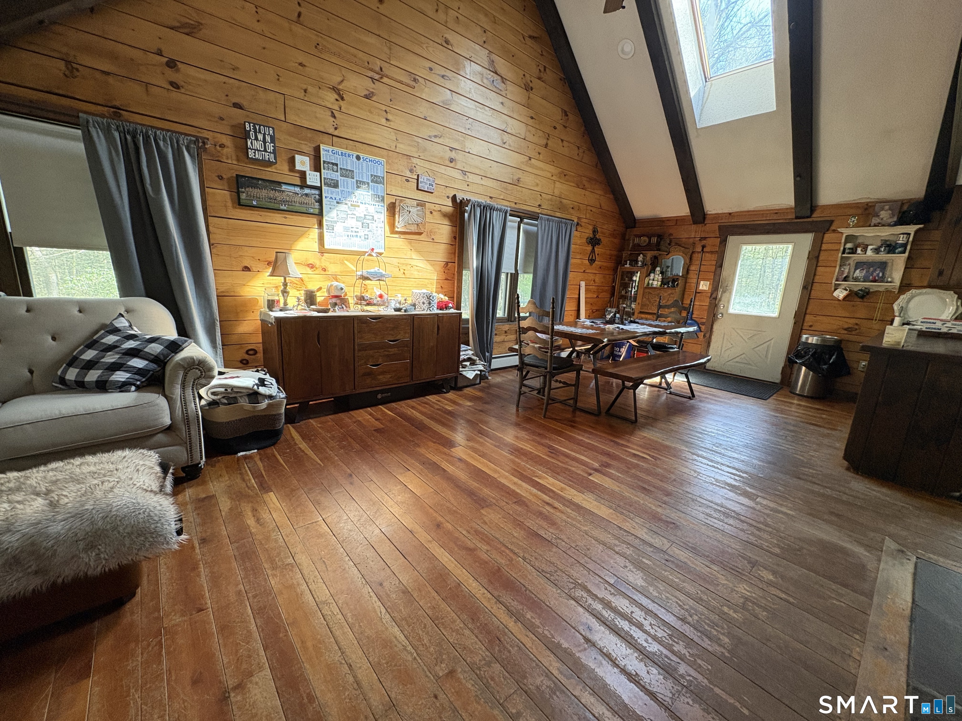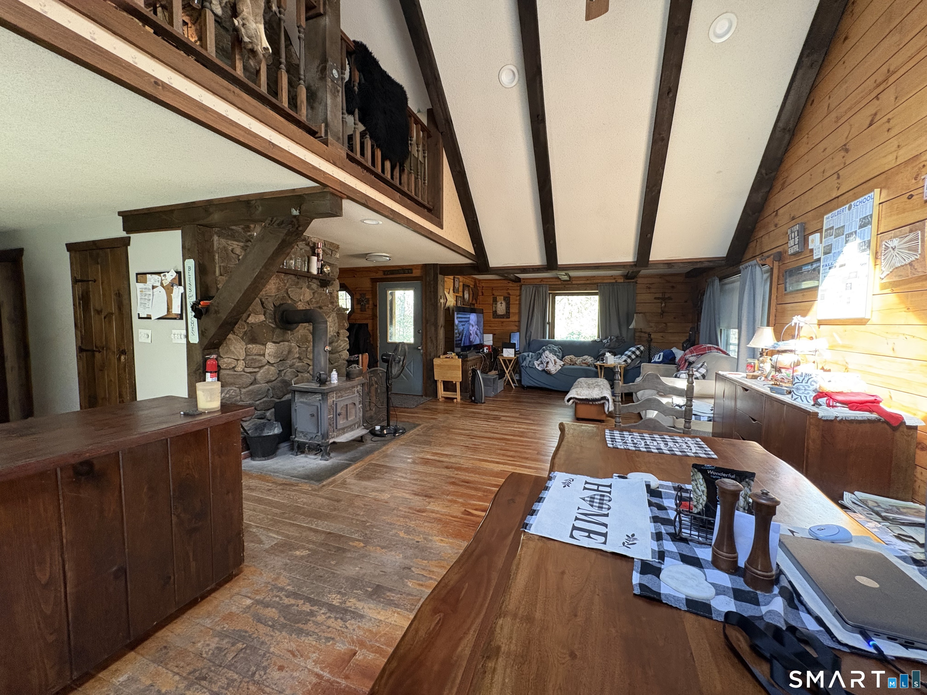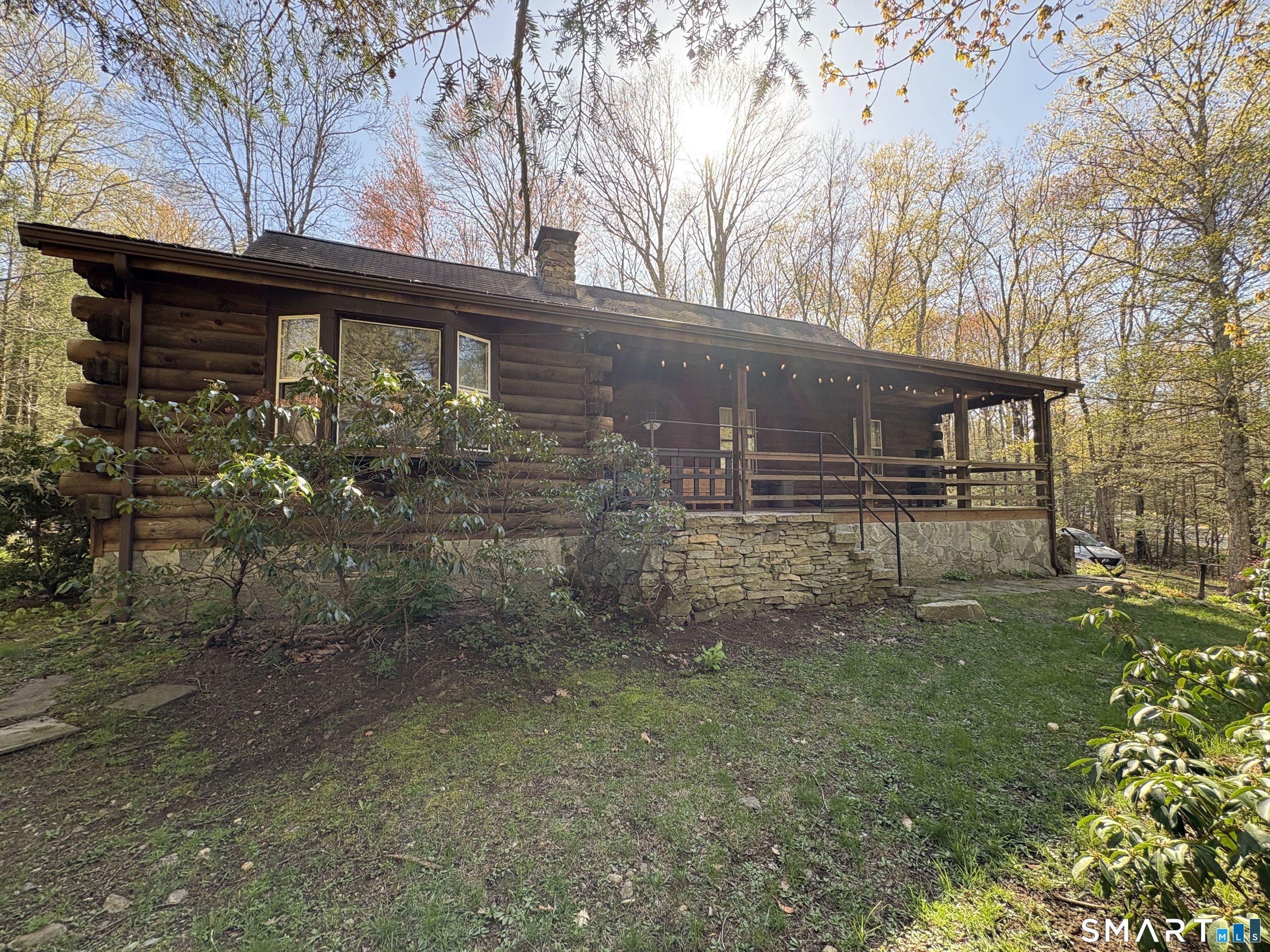 Escape to the woods in this enchanting log-style Cape nestled on 3.5 private, treed acres. Perfectly blending rustic character with modern potential, this 1985-built retreat offers a serene lifestyle in the heart of Hartland. Step inside to a dramatic living room featuring soaring cathedral ceilings and a warm, inviting atmosphere. The unique layout includes a private upper-level master suite with an open balcony overlooking the living area, providing a loft-like feel while maintaining a quiet sanctuary. The main floor offers a flexible floor plan with two additional bedrooms and a potential office space-ideal for remote work or guest accommodations. The full walk-out basement provides ample opportunity for a recreation room, workshop, or additional storage, and features a convenient under-house 1-car garage. Enjoy quiet mornings on your open front porch taking in the sights and sounds of nature. With its expansive wooded lot and peaceful setting, this home is a rare find for those seeking a true getaway without sacrificing convenience. With a little TLC, you can enjoy nature's setting at its best! Sold As-Is.