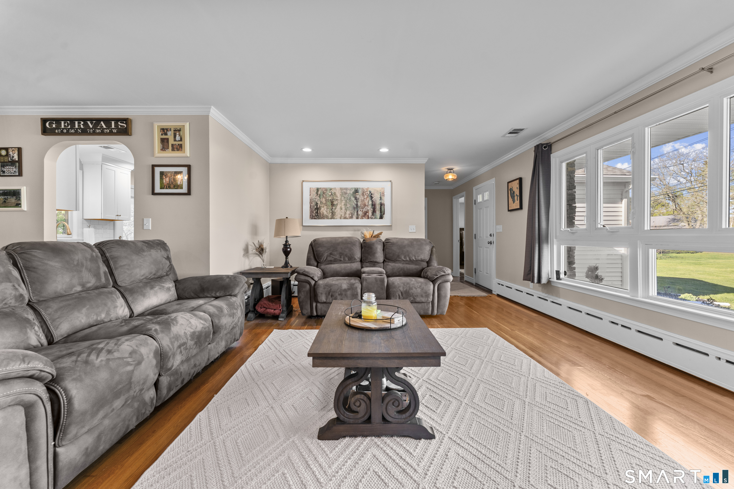 Welcome to this beautifully remodeled 2 bed, 1.5 bath ranch with finished basement, nestled in a peaceful country setting. This charming home offers the perfect blend of modern updates and timeless craftsmanship, with meticulous attention to detail throughout. Step inside to find a completely renovated interior featuring a brand new kitchen with quartz countertops, updated bathrooms and a newly added laundry area. Gleaming upgraded hardwood floors, custom trim work, recessed lighting and thoughtful built-in shelving, including a custom bookshelf and mantel... Adding warmth and character to every room. Major improvements have been completed over the past several years, including siding, Andersen windows, exterior doors, garage floor and full kitchen and bath renovations. More recent upgrades include a refinished basement, central air system and irrigation system... Providing comfort, efficiency and move-in-ready convenience. Outside, enjoy a private backyard ideal for entertaining, relaxing, or hosting family gatherings. The property offers plenty of space while maintaining a clean, well-kept feel throughout. The best of farm-town living with easy access to everyday amenities. This home combines privacy with convenience-truly the best of both worlds.