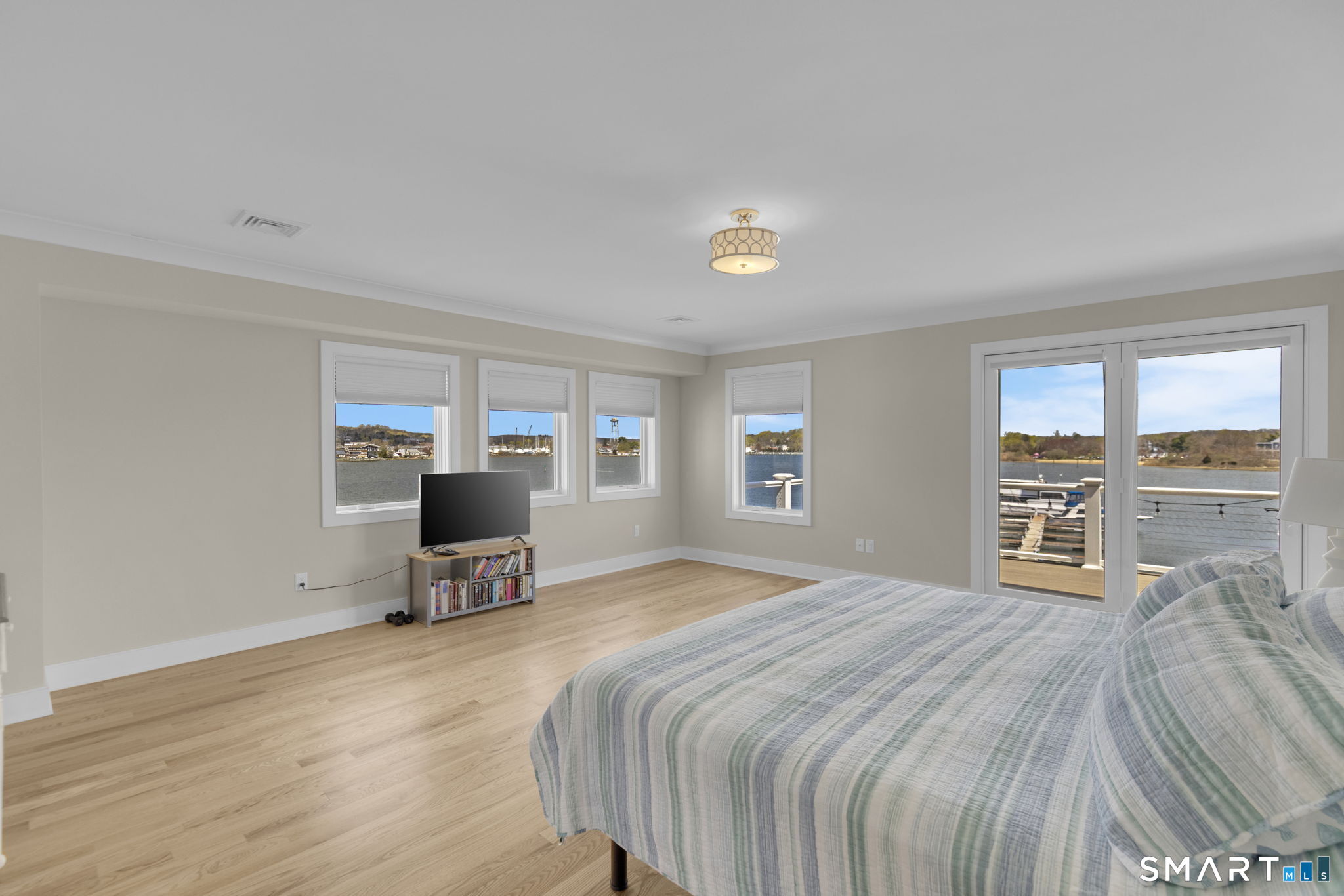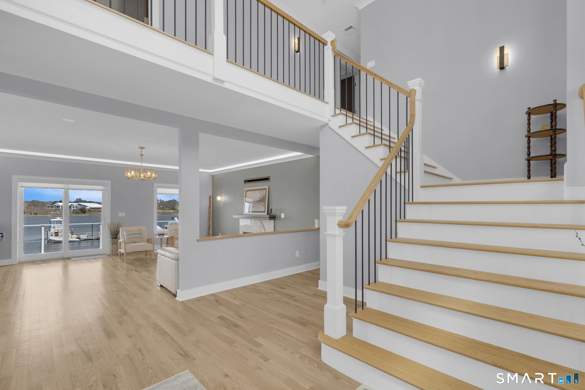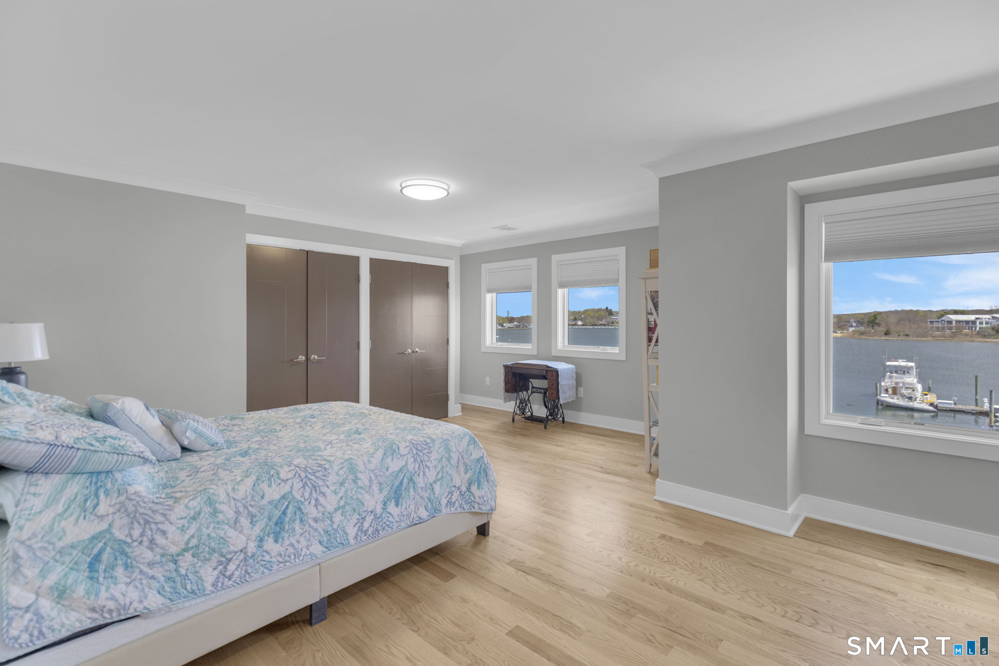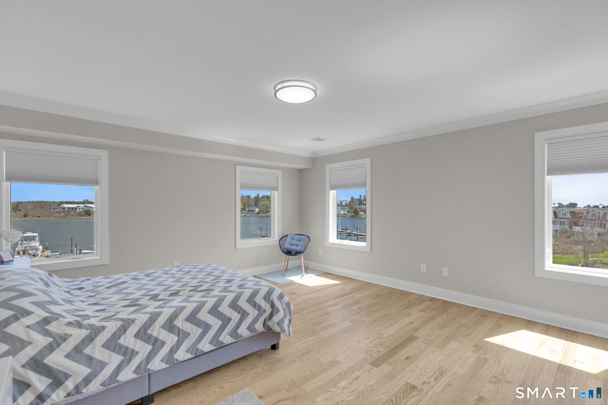 Vacation year round in this stunning 4 bedroom, 3 & 1/2 bath island house. Custom built in 2022...better than new. Expansive water views of the picturesque Mystic river in huge deck. More than 100 sf of frontage give you spectacular views in almost all the rooms. Have fun entertaining in it's striking open floor plan. Gourmet kitchen layout, Subzero & Bosch appliances, marble countertop & oversized kitchen island, make this a chef's dream. Hardwood floors throughout, high ceilings, cove lighting, contemporary linear gas fireplace in living room, and top of the line security system give it an unmistakable modern and sophisticated flair. Notice the carefully selected sinks/fixtures in bathrooms. Soak and relax in the freestanding tub in spacious primary bath. Generous-sized walk-in closets for your storage needs. Geothermal heat, thermal windows, central air, electric vehicle (EV) charger, and a back up generator, make this property a perfect blend of beauty and efficiency. Located just a few minutes to downtown Mystic/famous Bascule bridge and a short walk to the idyllic Enders Island. You can potentially build your own dock and launch your boat off the property. A truly one of a kind gem.