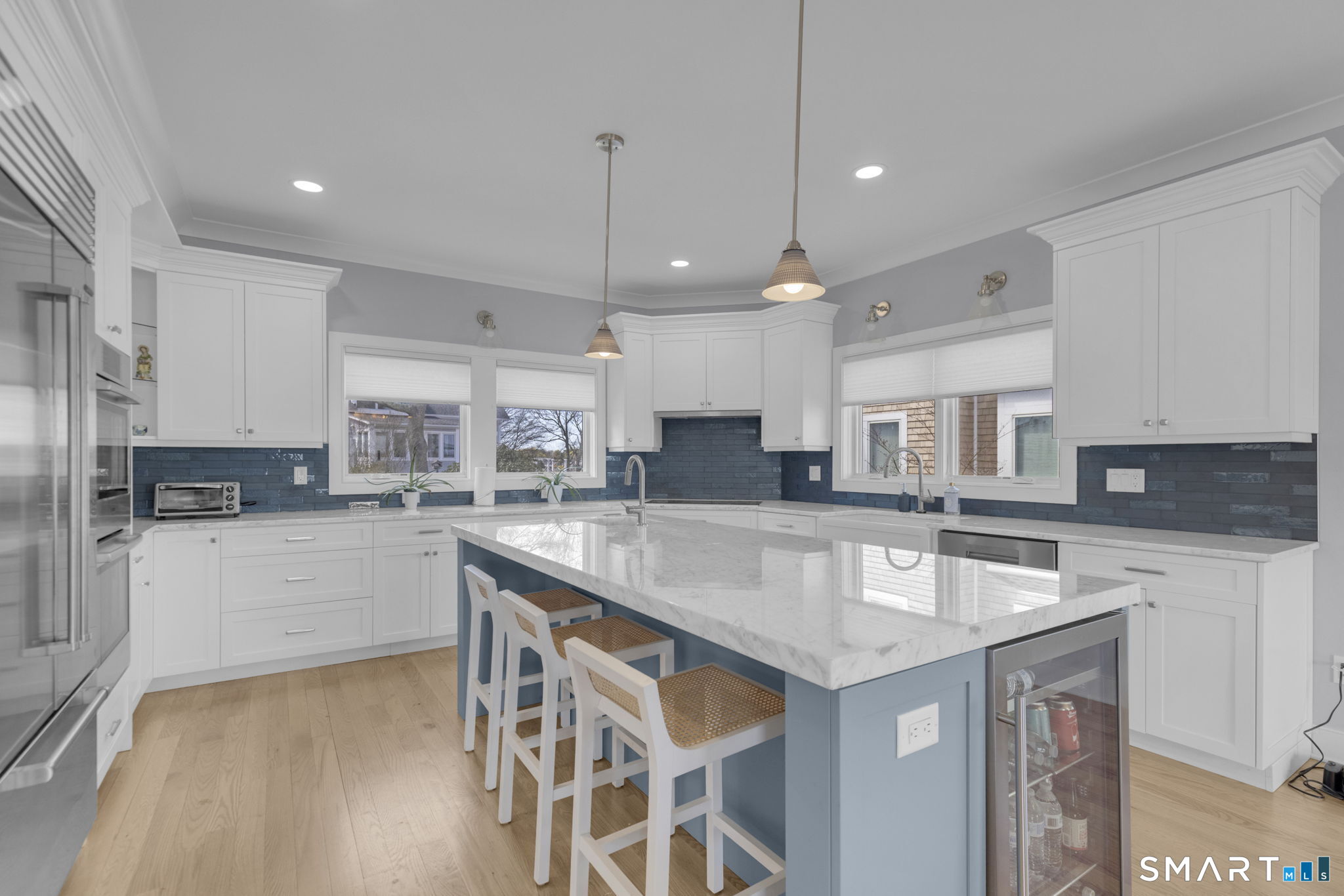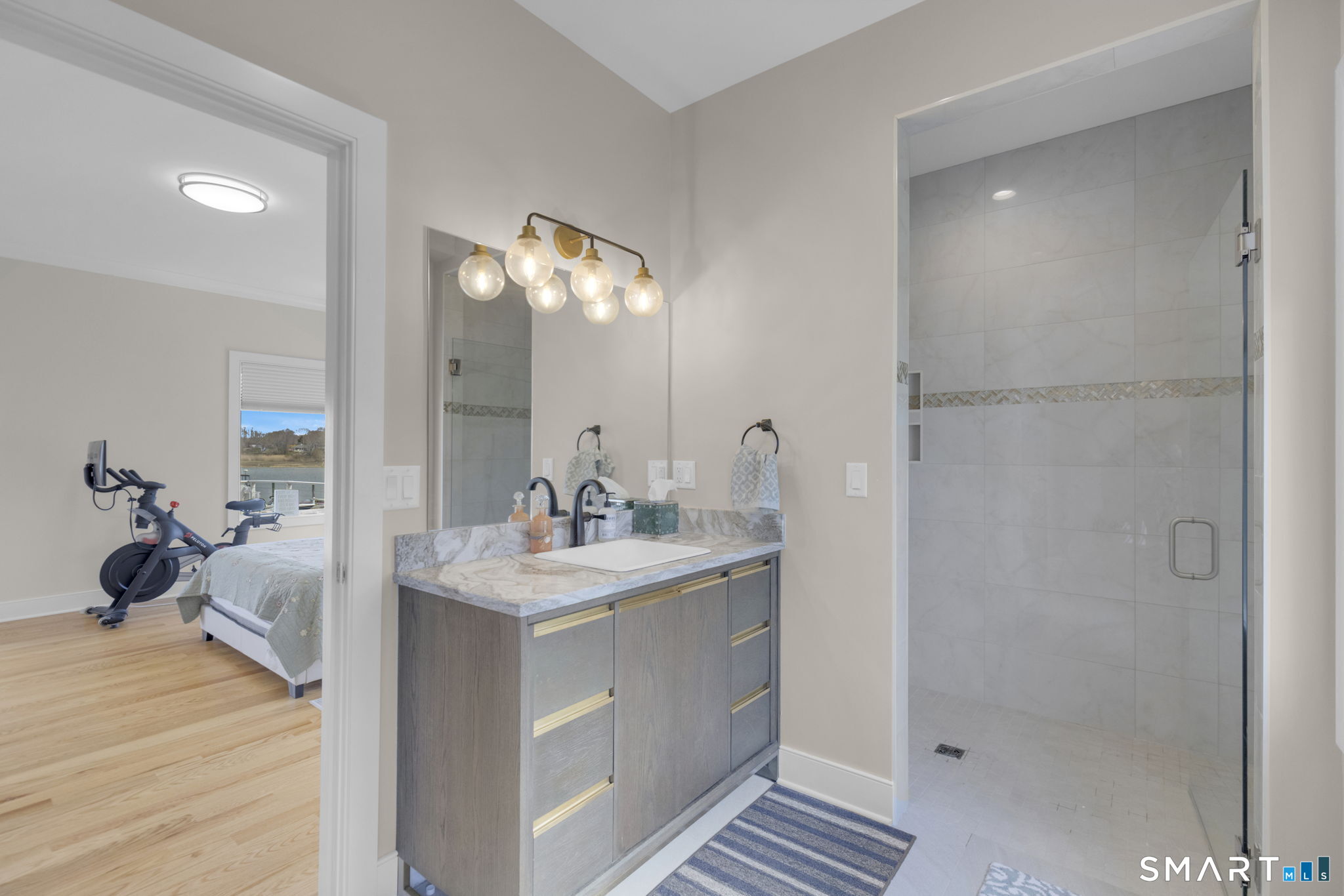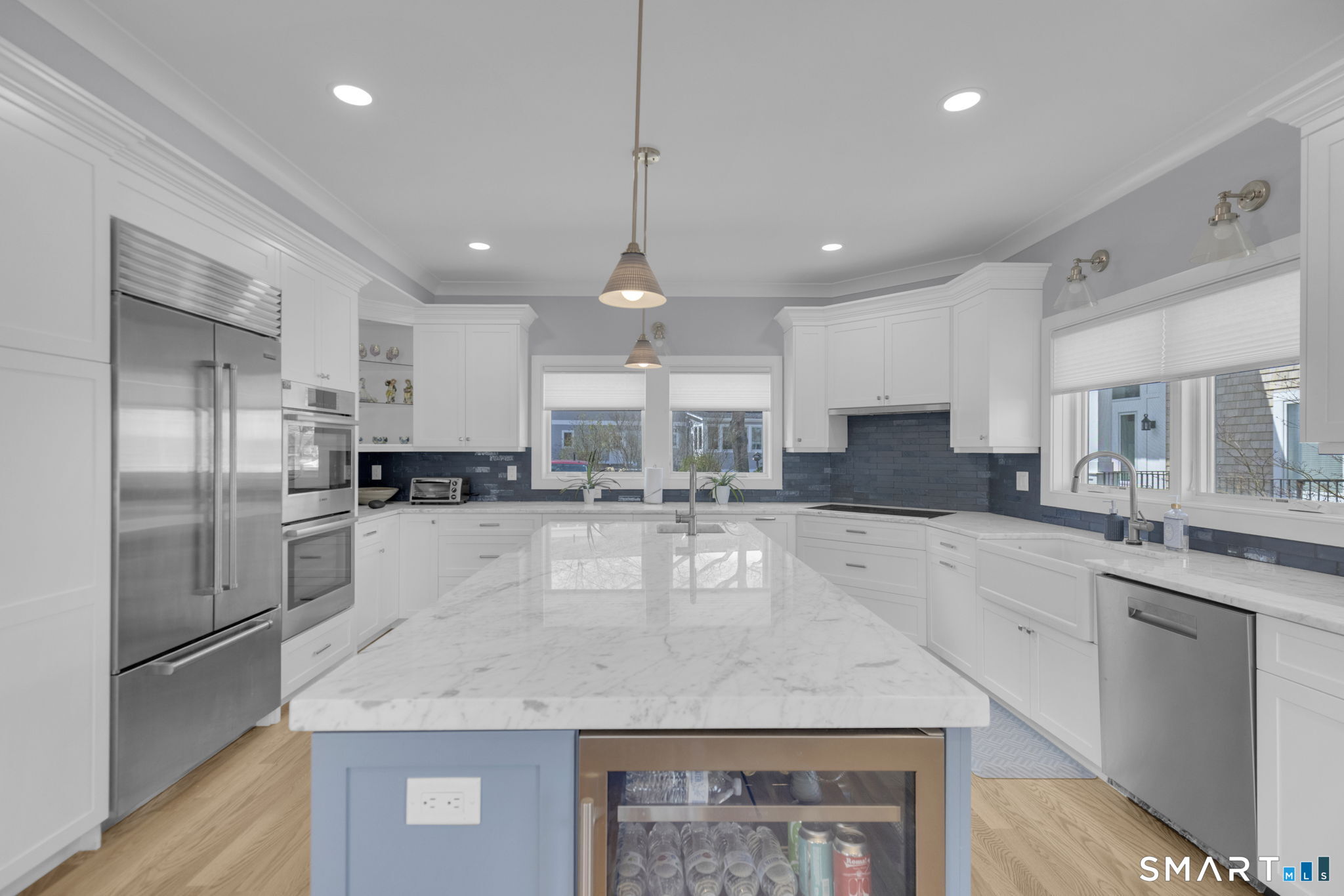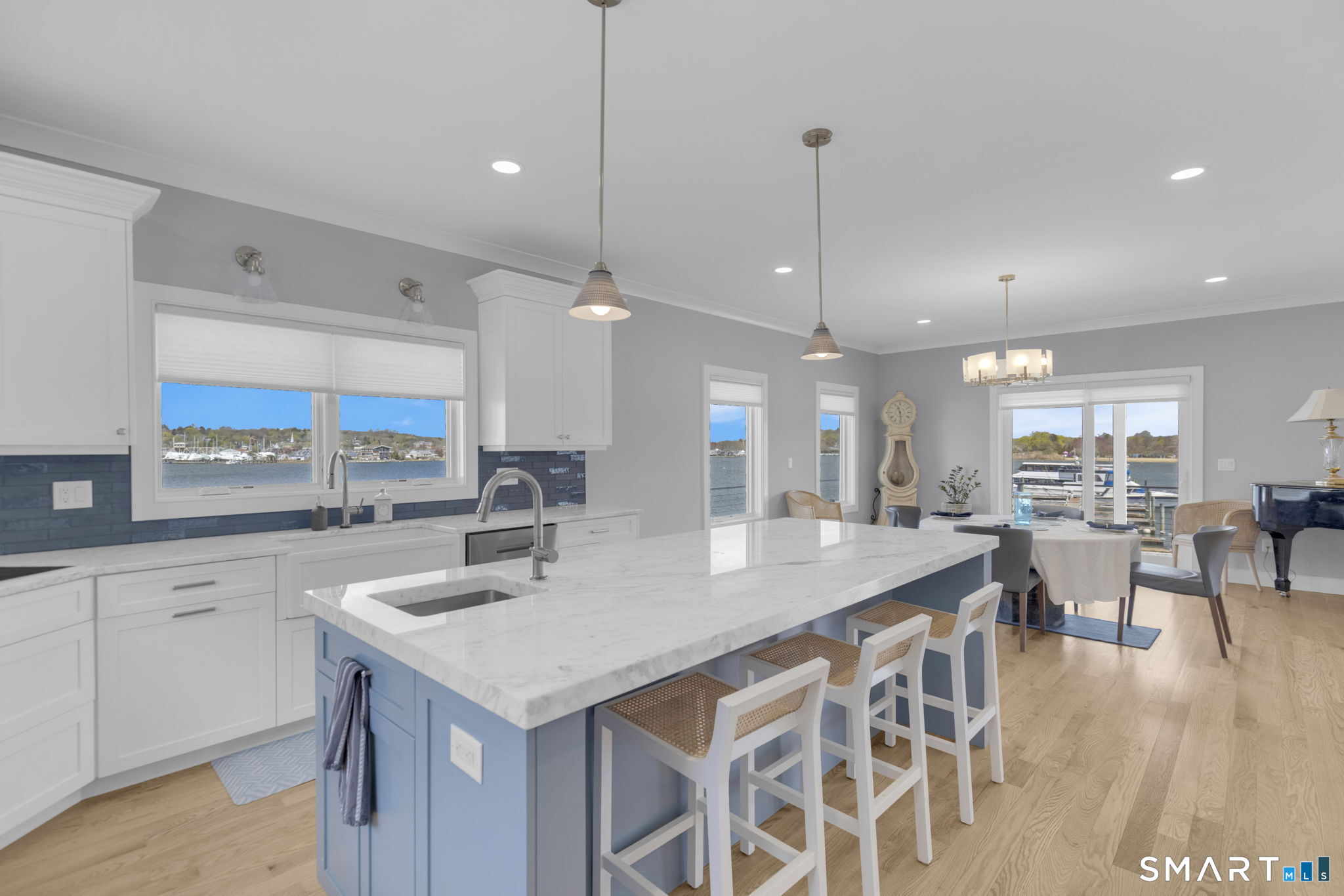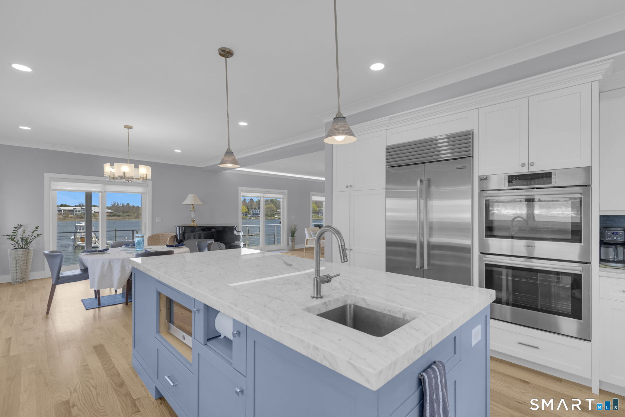 Vacation year round in this stunning 4 bedroom, 3 & 1/2 bath island house. Custom built in 2022...better than new. Expansive water views of the picturesque Mystic river in huge deck. More than 100 sf of frontage give you spectacular views in almost all the rooms. Have fun entertaining in it's striking open floor plan. Gourmet kitchen layout, Subzero & Bosch appliances, marble countertop & oversized kitchen island, make this a chef's dream. Hardwood floors throughout, high ceilings, cove lighting, contemporary linear gas fireplace in living room, and top of the line security system give it an unmistakable modern and sophisticated flair. Notice the carefully selected sinks/fixtures in bathrooms. Soak and relax in the freestanding tub in spacious primary bath. Generous-sized walk-in closets for your storage needs. Geothermal heat, thermal windows, central air, electric vehicle (EV) charger, and a back up generator, make this property a perfect blend of beauty and efficiency. Located just a few minutes to downtown Mystic/famous Bascule bridge and a short walk to the idyllic Enders Island. You can potentially build your own dock and launch your boat off the property. A truly one of a kind gem.