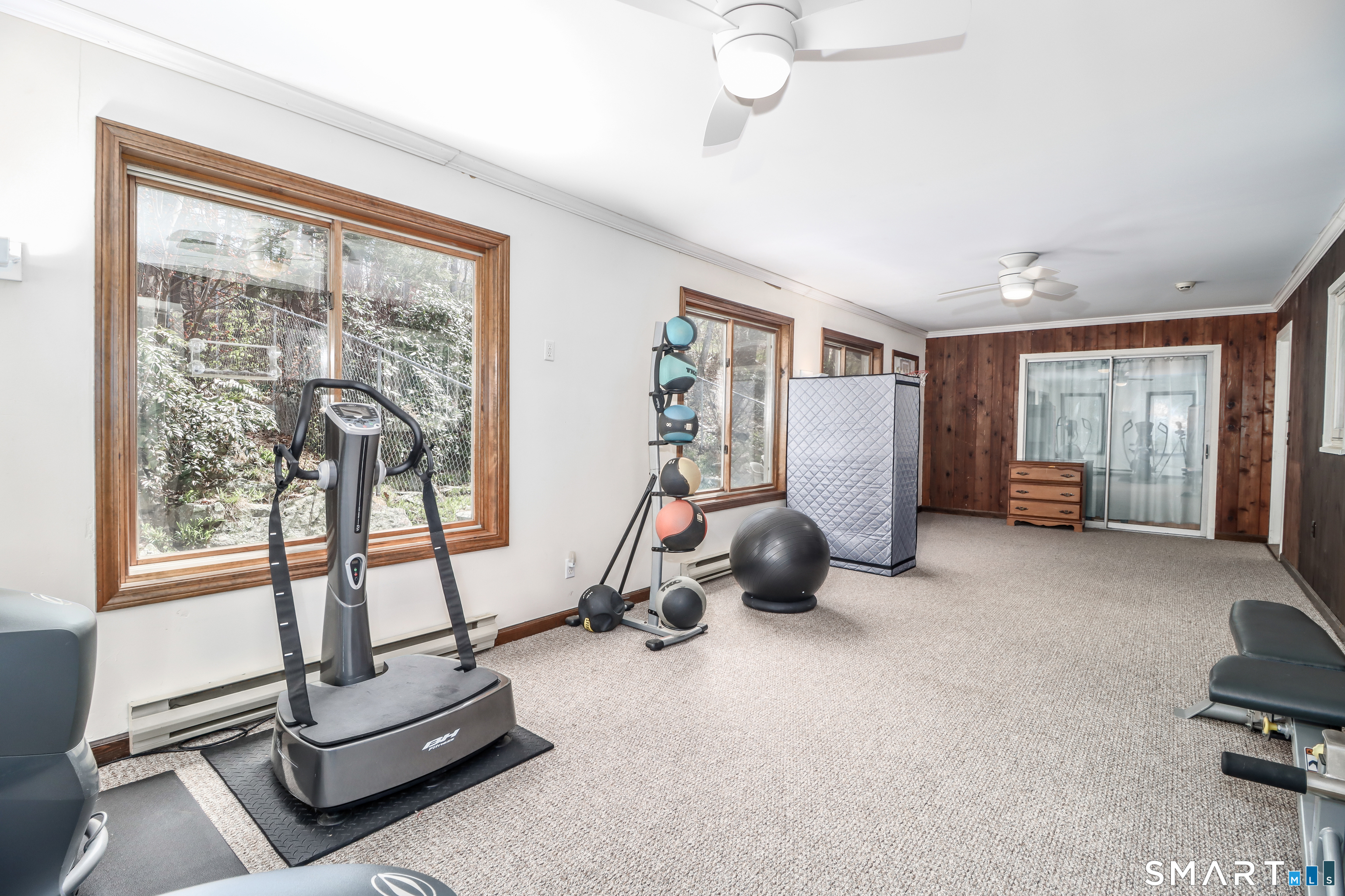 Located on a desirable cul-de-sac in Brookfield, this lovingly maintained and updated 4-bedroom Colonial offers over 3,100 sq ft on 1.05 acres with beautiful curb appeal, professionally landscaped garden beds, a stone paver walkway, and an expansive yard. The main level features a spacious kitchen with Corian countertops, tile flooring, exposed beam, under-cabinet and recessed lighting, a new backsplash, new microwave, and a large peninsula-perfect for gathering and entertaining. The layout offers multiple living spaces, including an oversized formal living room and a separate family room with a brick accent wall and gas log fireplace. A versatile dining room, currently used as a home office, adds flexibility. A powder room and main-level laundry complete this floor. Upstairs are four bedrooms with hardwood floors. The primary suite includes two walk-in closets, a private full bath, and sliders to the expansive great room. One additional bedroom also has access to this space, while another offers a large walk-in closet. The great room (2021) features wall-to-wall carpet, fresh paint, ceiling fans, and access to the backyard-ideal for recreation, gym, or media use. Fenced area for pets. Recent updates include NEW septic (2024), water heater (2024), roof (2022), and driveway (2022). Eversource Energy audit completed for improved efficiency. Close to Candlewood Lake, boat launch, local marinas, Brookfield Town Park, and Cadigan Park. Convenient to shopping, dining, and I-84.