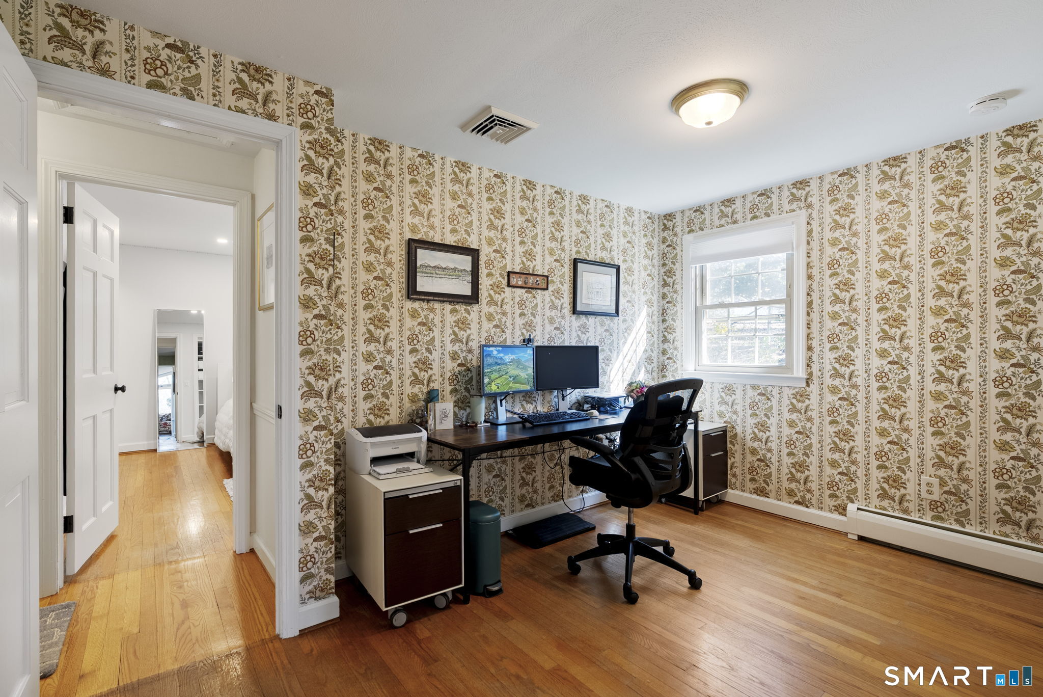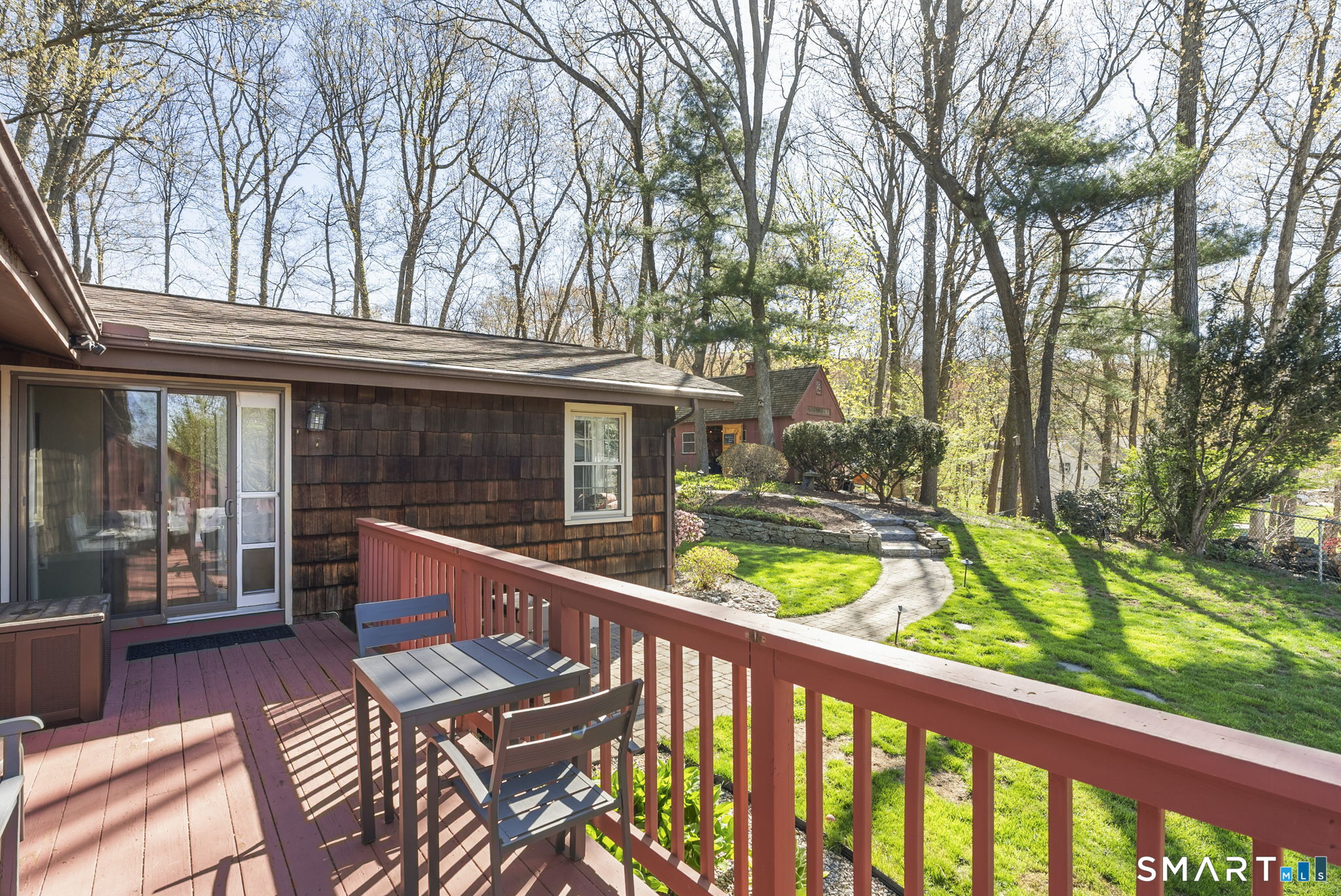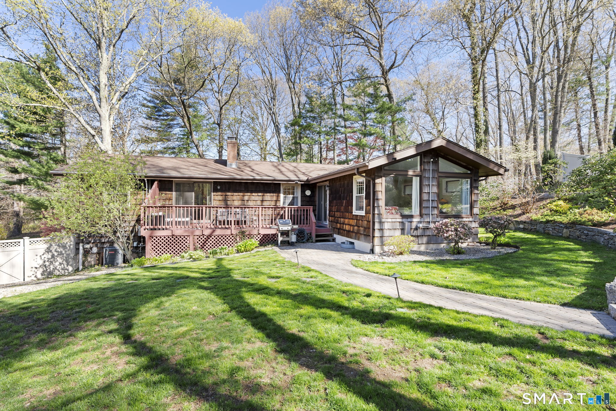Summer is calling, and your private Glastonbury oasis awaits! Fresh to the market, this charming ranch is the ultimate staycation home, perfectly timed for outdoor living and pool season. Step into your own tranquil retreat featuring lush, mature gardens, privacy, and a sparkling 16'x32' in-ground pool equipped with a newer heater to extend your swim season. The thoughtfully designed, fully fenced grounds are kept vibrant with a convenient irrigation system, while a charming country shed with power offers the perfect spot for projects or extra storage. Inside, gorgeous hardwood floors flow through an inviting layout that beautifully balances classic charm with modern updates. The eat-in kitchen is ready for your culinary adventures, with granite countertops and a propane gas range. Flow right into the cozy living room, where you can relax by the wood-burning fireplace flanked by built-in bookshelves, or open the sliding glass door to the deck for seamless indoor-outdoor entertaining. With three bedrooms and three full baths, there is plenty of room for everyone to unwind. The luxurious primary suite serves as your personal sanctuary, featuring vaulted ceilings, a dedicated dressing room, a private en-suite bathroom, and serene views of the backyard. Hosting guests is a breeze thanks to a rare second bedroom with its own en-suite bath, alongside a third comfortable bedroom and a beautifully updated full hallway bathroom.