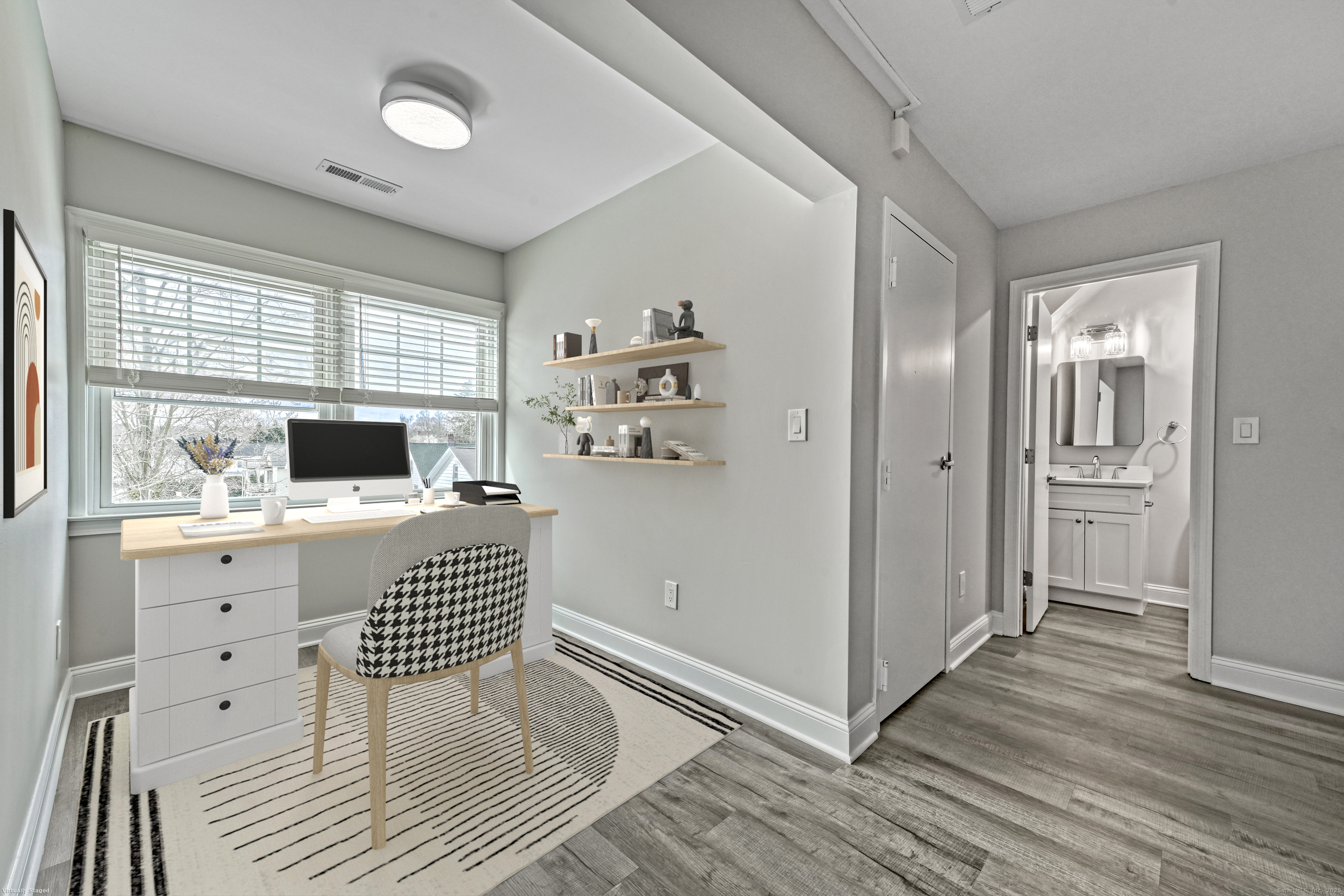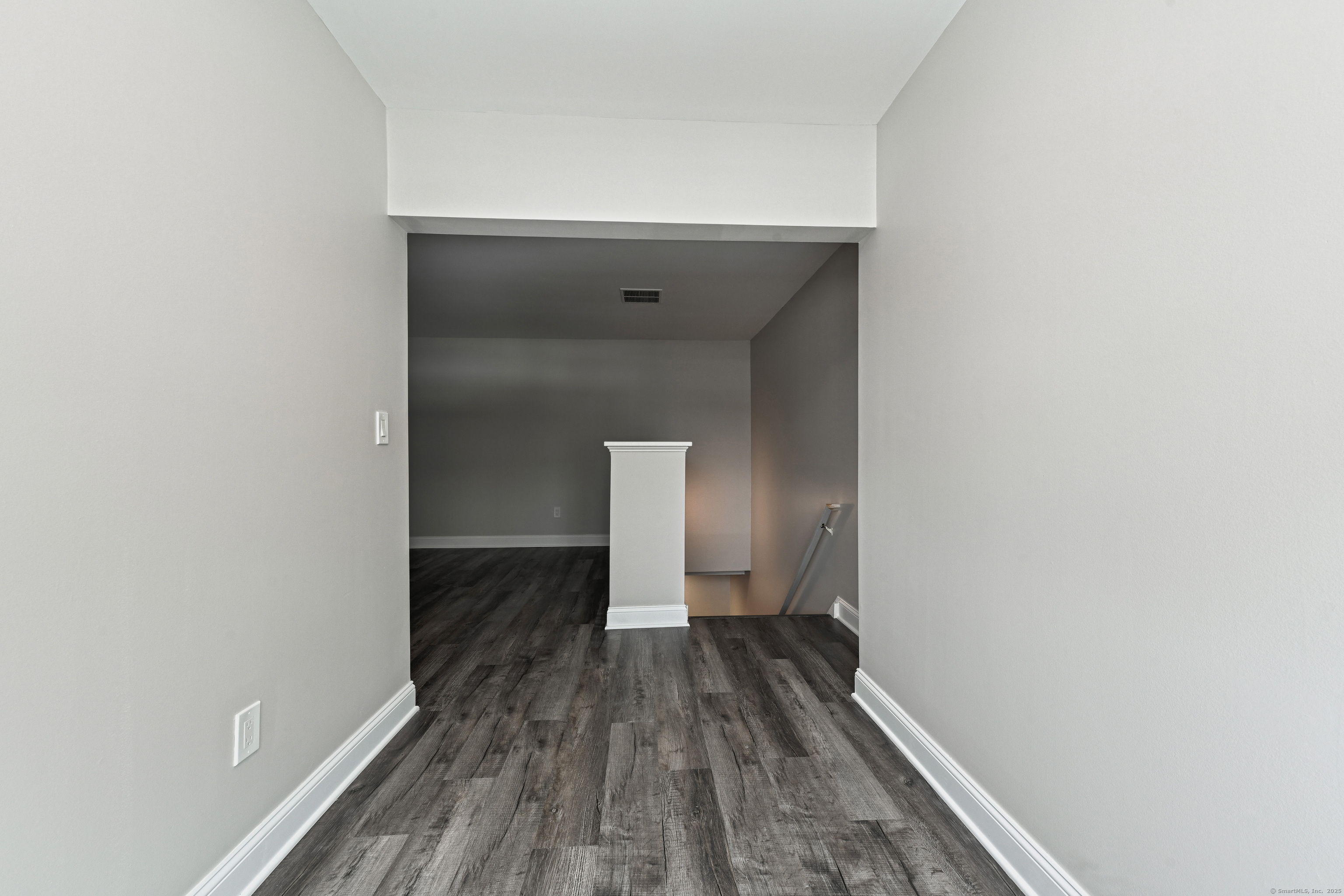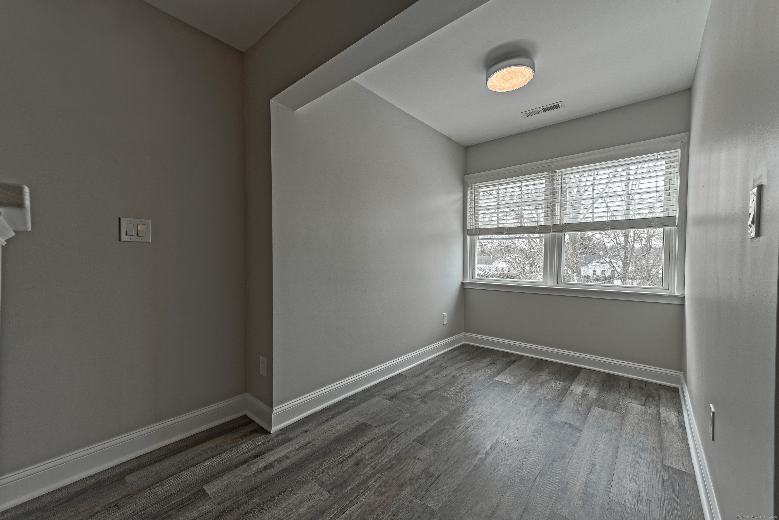 Step into this completely remodeled, sun-filled 850 sq ft apartment featuring an open-concept design and modern finishes throughout. The beautifully appointed kitchen boasts quartz countertops, stainless steel appliances, custom cabinetry, and elegant tile backsplash - perfect for entertaining. The generous living and dining area flows seamlessly together, while a convenient half bath on the main level accommodates guests. Upstairs, you'll find a spacious bedroom with walk-in closet and private ensuite bathroom, plus a charming nook ideal for a home office or reading retreat. Additional features include under-stair storage and a dedicated mechanical room for extra storage space. This well-maintained building offers ample parking and is located above professional offices for a quiet living environment. Lease requirements include first month's rent plus two months security deposit, proof of income, and renter's insurance at signing. There is a $40 Rentspree application that includes credit and background check, with a minimum credit score of 650 required. Tenant is responsible for all utilities. No pets and no smoking permitted in the building.