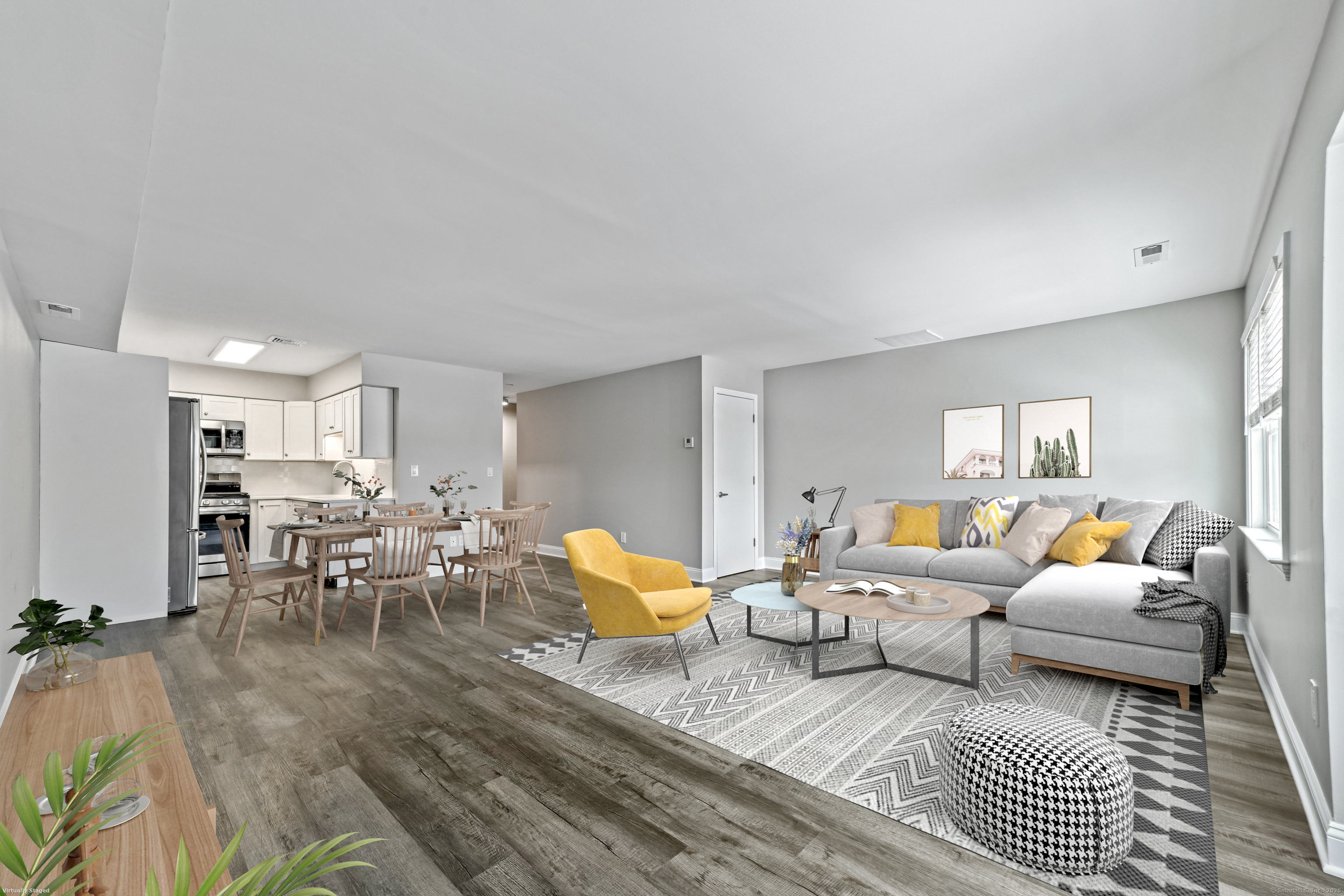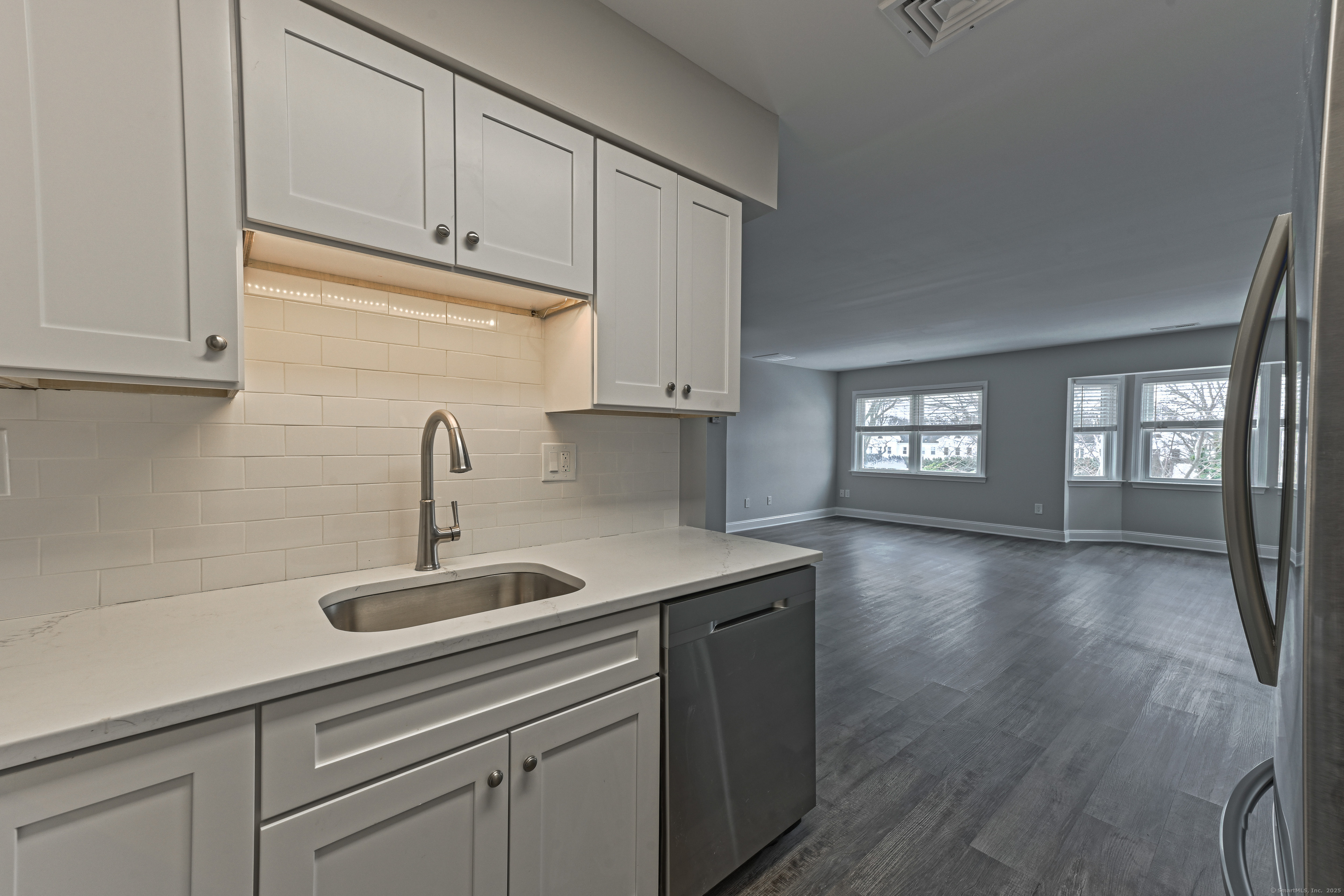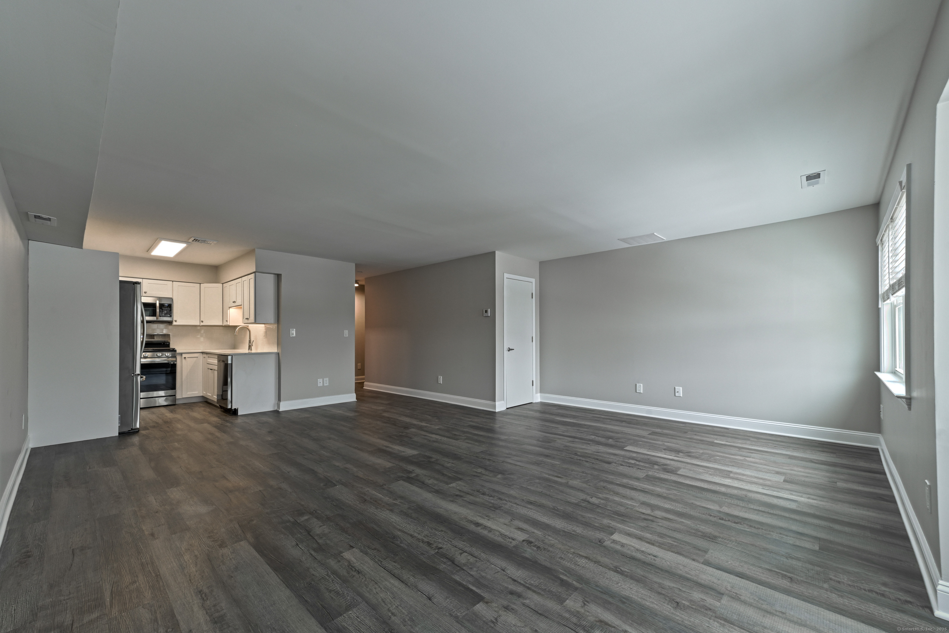 Step into this completely remodeled, sun-filled 850 sq ft apartment featuring an open-concept design and modern finishes throughout. The beautifully appointed kitchen boasts quartz countertops, stainless steel appliances, custom cabinetry, and elegant tile backsplash - perfect for entertaining. The generous living and dining area flows seamlessly together, while a convenient half bath on the main level accommodates guests. Upstairs, you'll find a spacious bedroom with walk-in closet and private ensuite bathroom, plus a charming nook ideal for a home office or reading retreat. Additional features include under-stair storage and a dedicated mechanical room for extra storage space. This well-maintained building offers ample parking and is located above professional offices for a quiet living environment. Lease requirements include first month's rent plus two months security deposit, proof of income, and renter's insurance at signing. There is a $40 Rentspree application that includes credit and background check, with a minimum credit score of 650 required. Tenant is responsible for all utilities. No pets and no smoking permitted in the building.