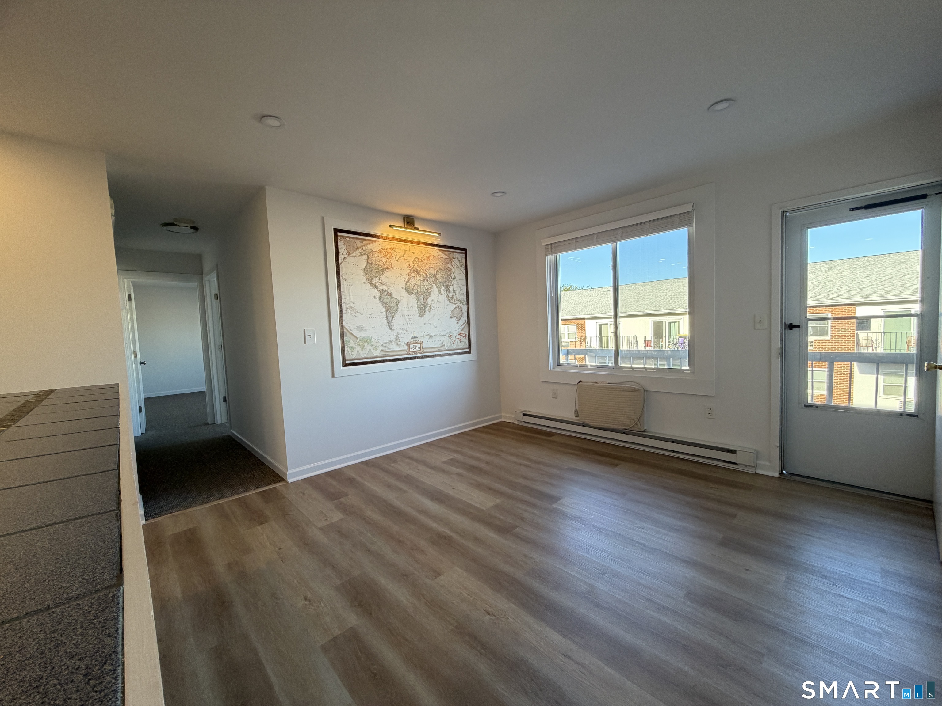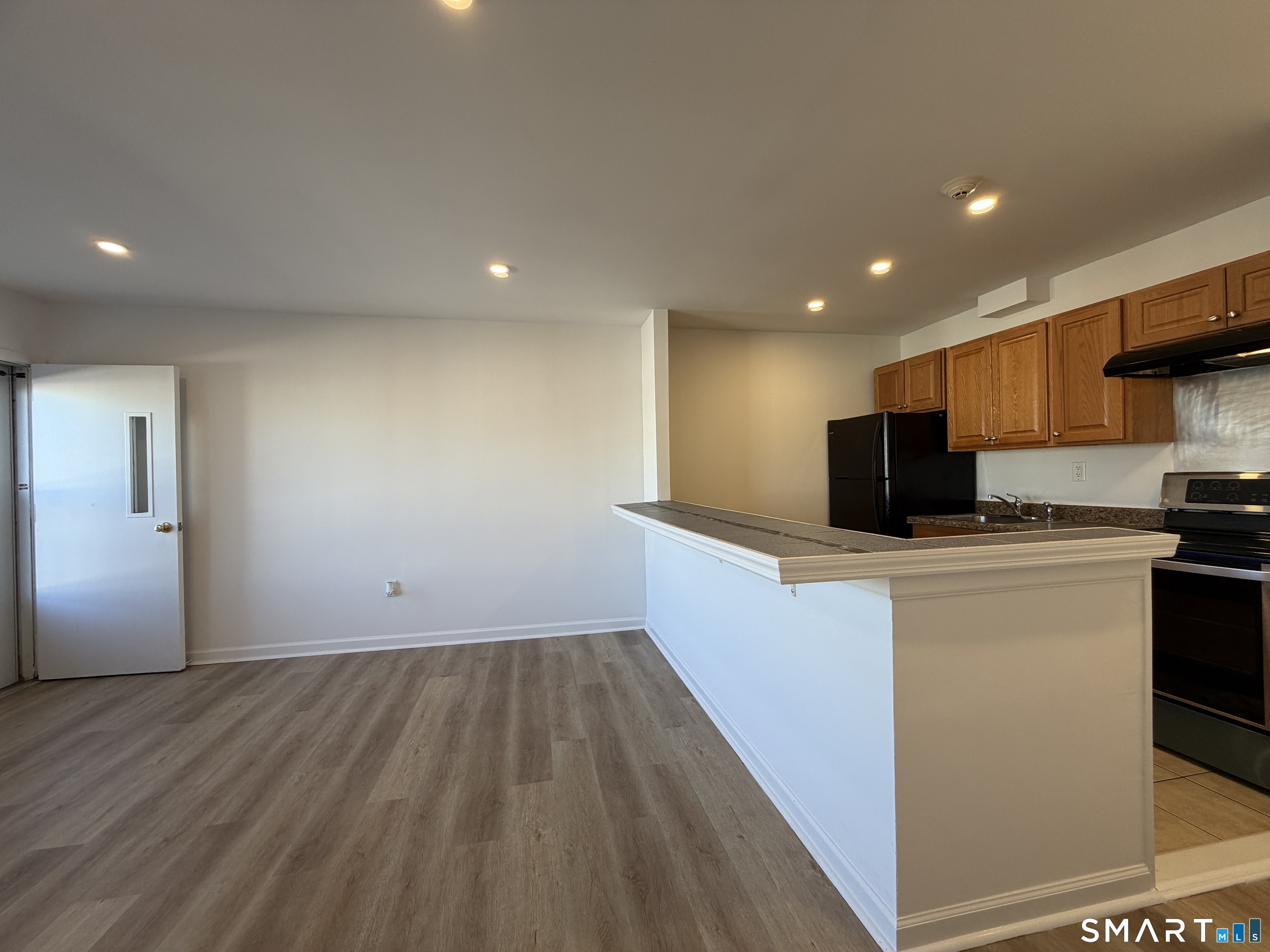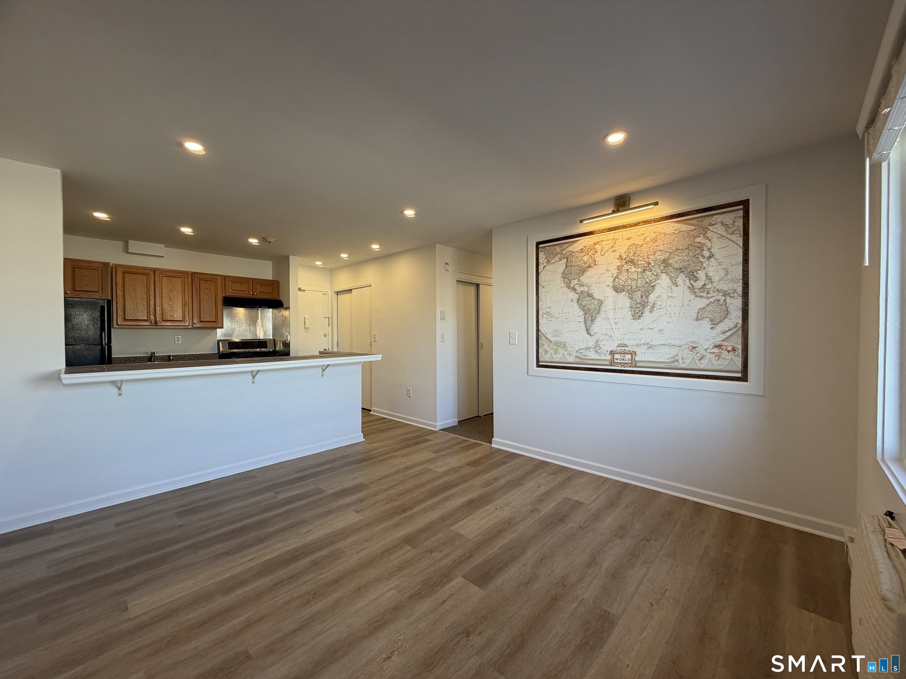 This bright and lovely one-bedroom apartment, nestled in Stamford's sought-after Cove area, offers a dedicated home office space, laminate flooring throughout, and a private balcony. Freshly painted and flooded with natural light, the unit features recessed lighting that adds a warm, welcoming touch. Coin operated laundry is conveniently located on the second floor, dedicated basement storage is included, and reserved covered parking is available near the entrance. Just minutes from waterfront parks, Interstate 95, and the restaurants and shops of downtown Stamford, this location offers easy access to everything you need. Credit score of 670 or above required.