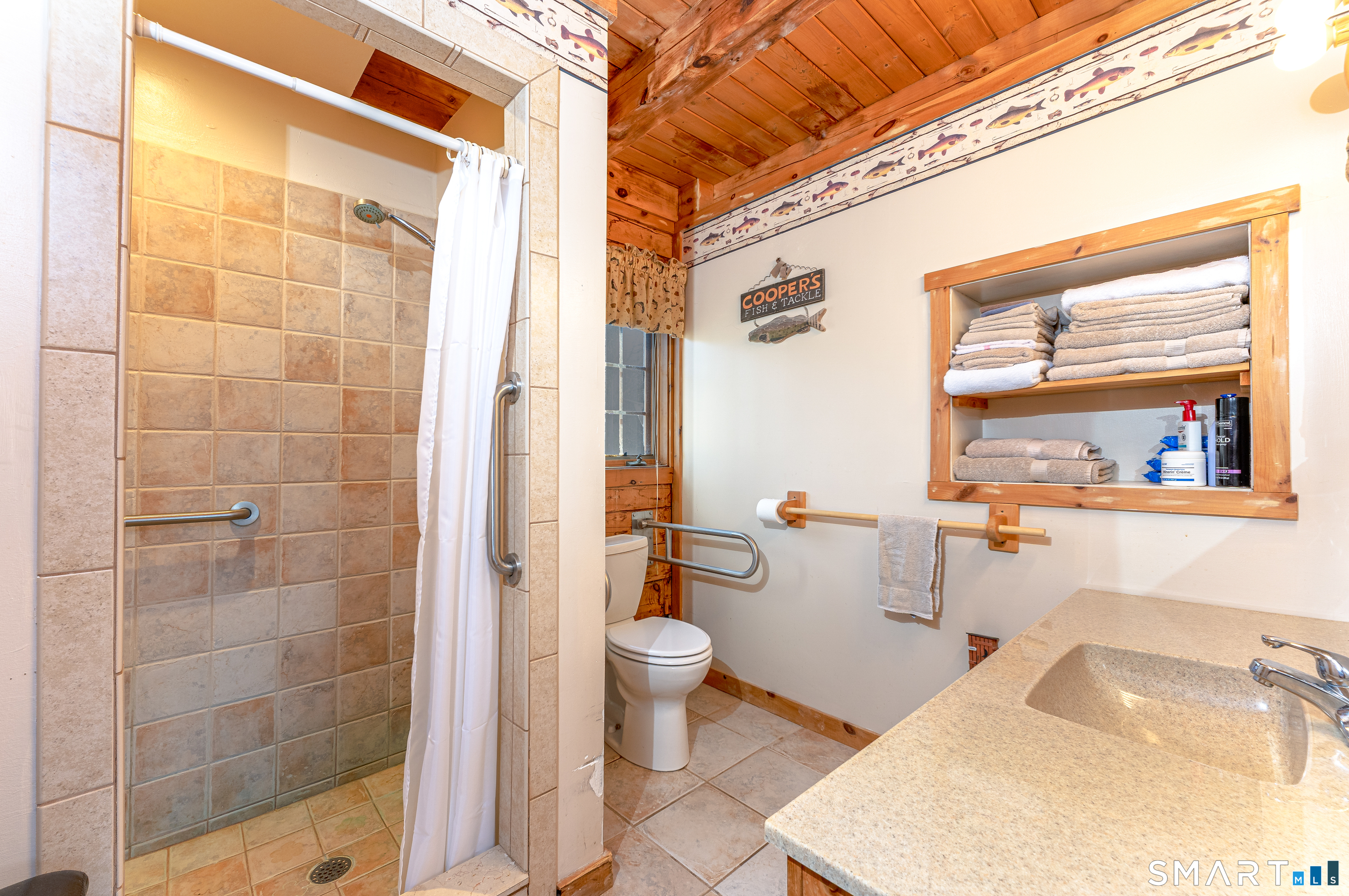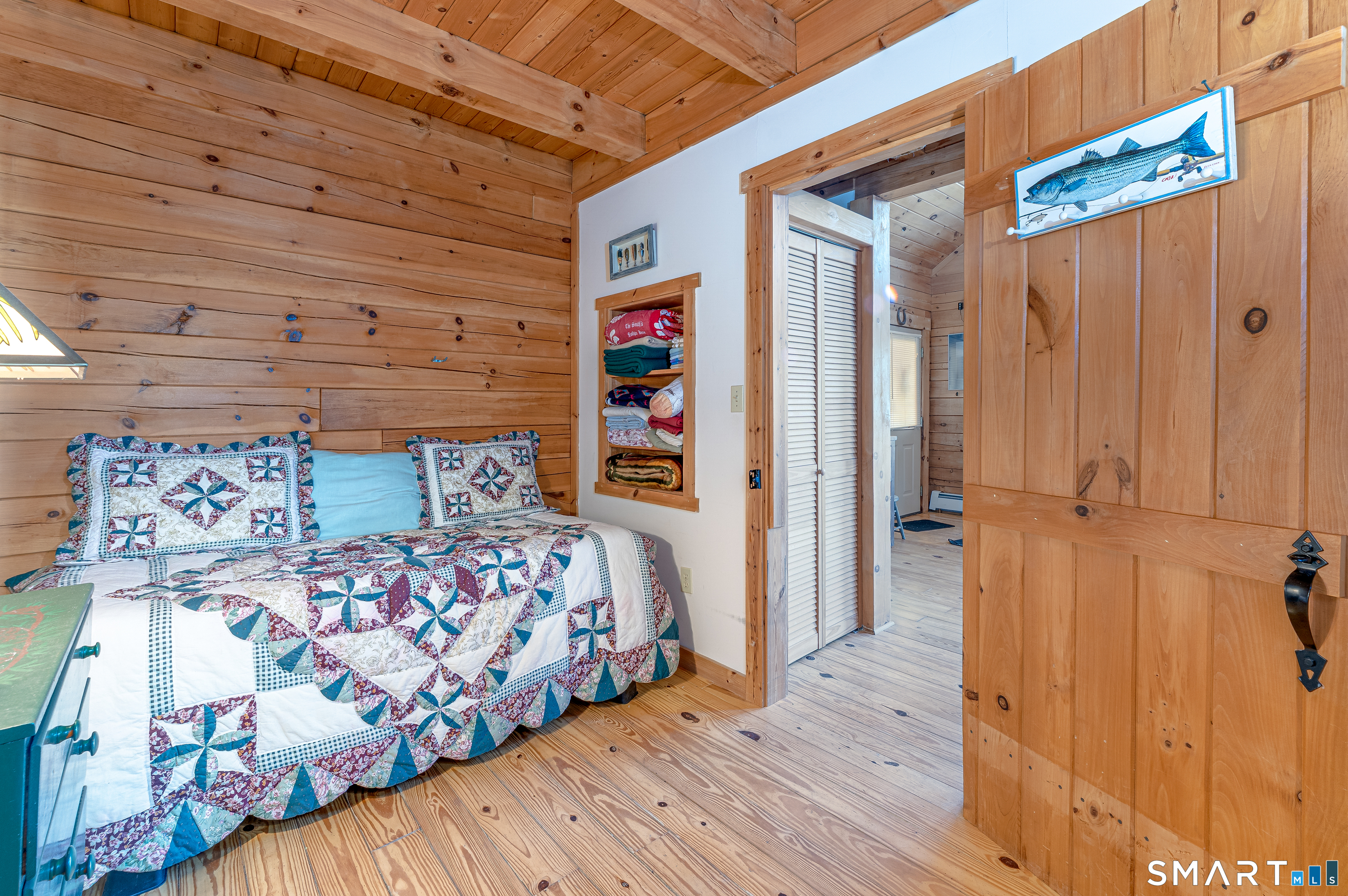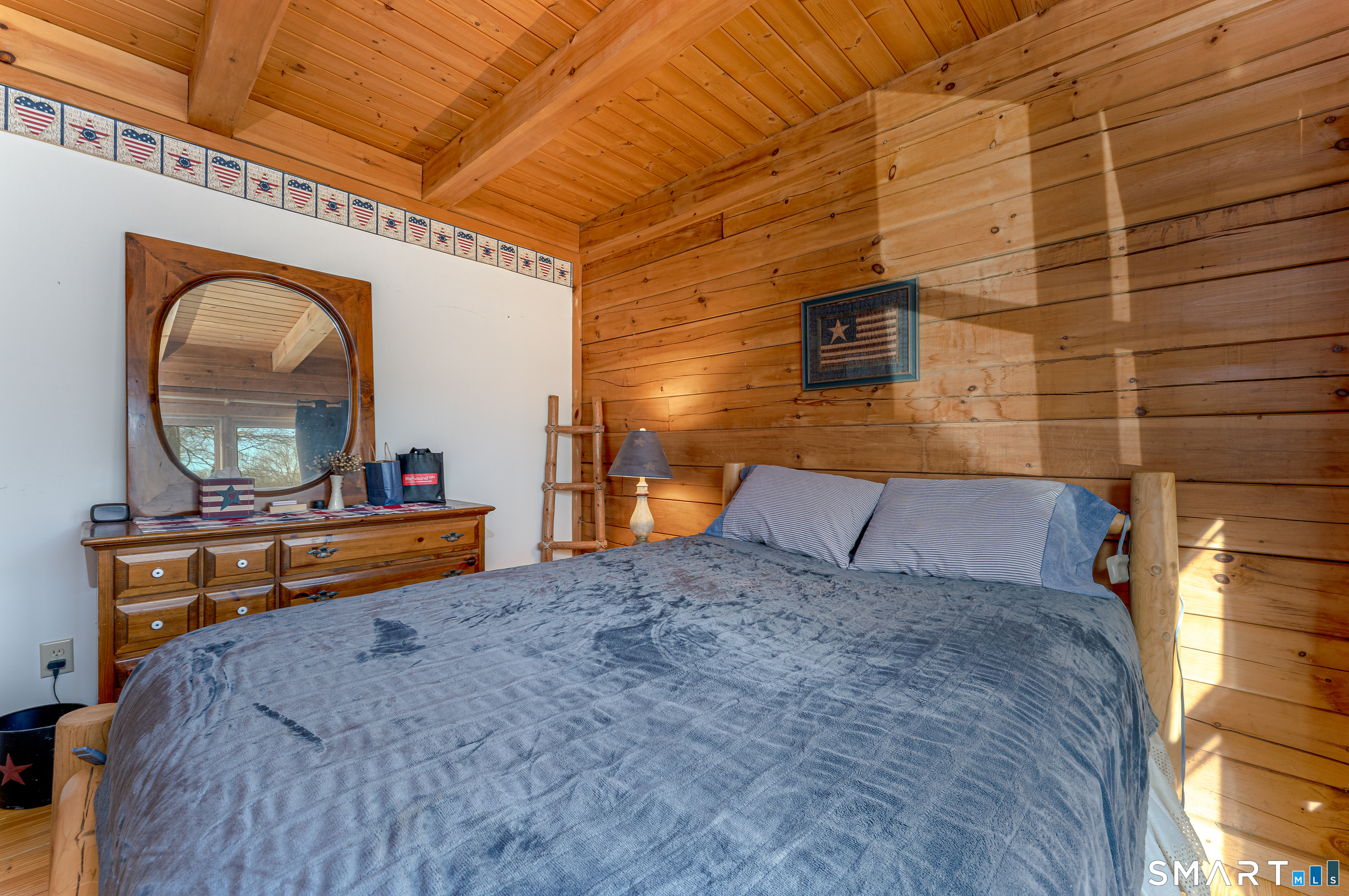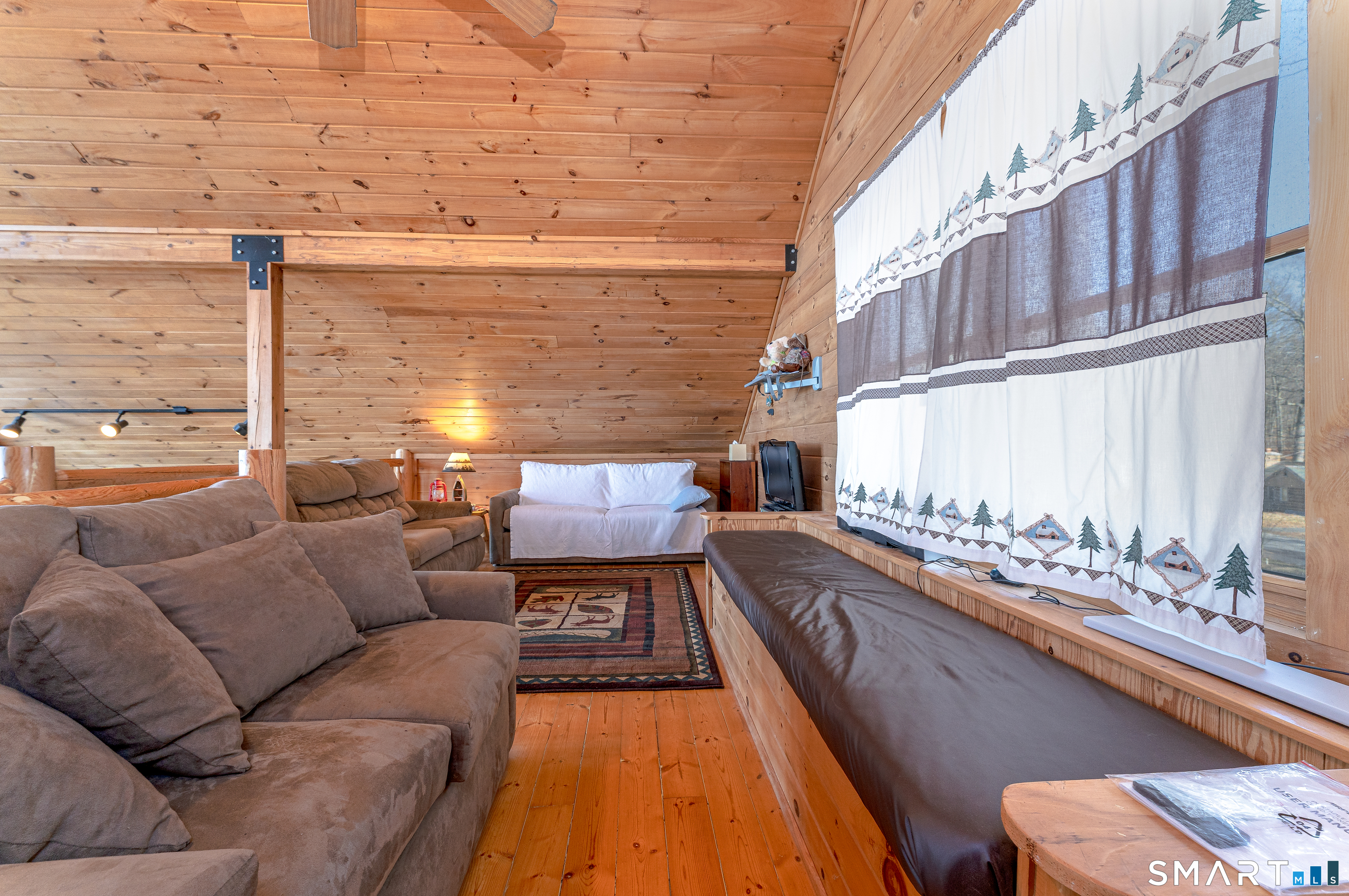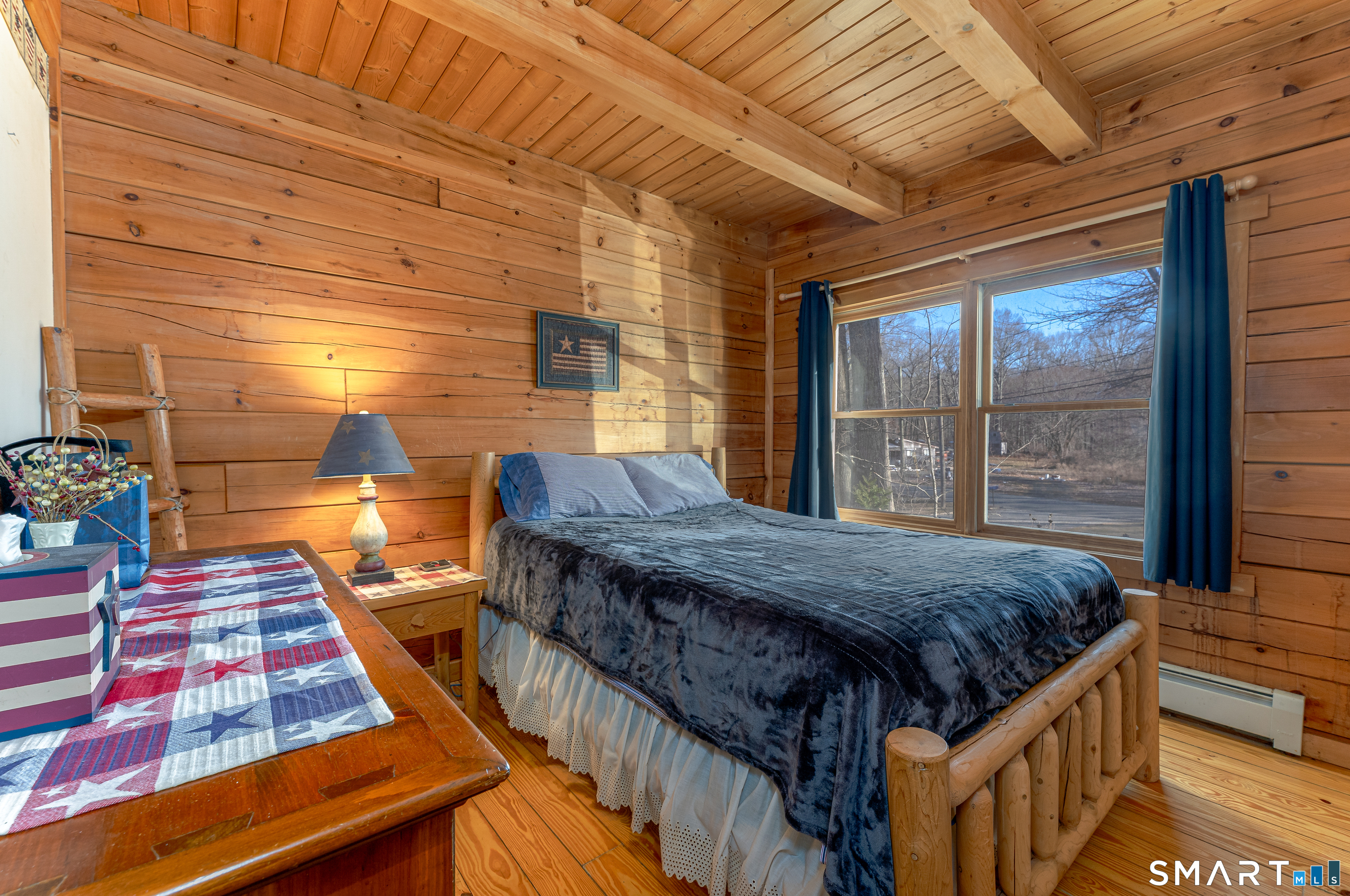 Welcome to your own private lakeside retreat, where rustic charm meets breathtaking waterfront living in this beautifully crafted log cabin set directly on the lake. From the moment you arrive, the warm natural wood exterior and serene setting create an inviting escape that feels like a year round vacation. Inside, soaring cathedral ceilings and stunning two story windows in the living room flood the space with natural light while perfectly framing picturesque water views. The open concept layout features rich hardwood floors and a striking stone fireplace that anchors the space with cozy character. The kitchen offers stainless steel appliances and sliders leading out to a covered deck, making indoor outdoor living seamless and ideal for entertaining or simply soaking in the peaceful surroundings. The loft above provides a versatile space perfect for a potential third bedroom or additional living area. The lower level expands your living space with a workshop and a full home office featuring walkout access to the lake. Enjoy your morning coffee or unwind in the evening on the expansive covered deck overlooking the water, surrounded by nature and tranquility. Additional highlights include central air, a removable wheelchair ramp at the front of the home, and a Generac whole house generator for added peace of mind. With direct lake access, this is a rare opportunity to own a true waterfront getaway that blends charm, comfort, and lifestyle in one exceptional property.