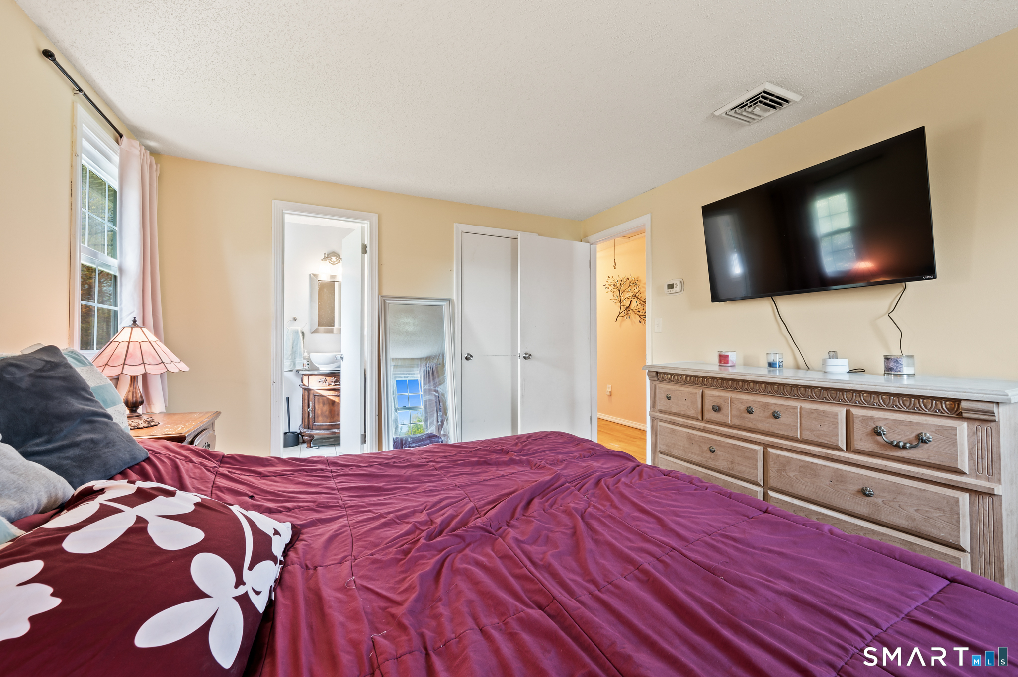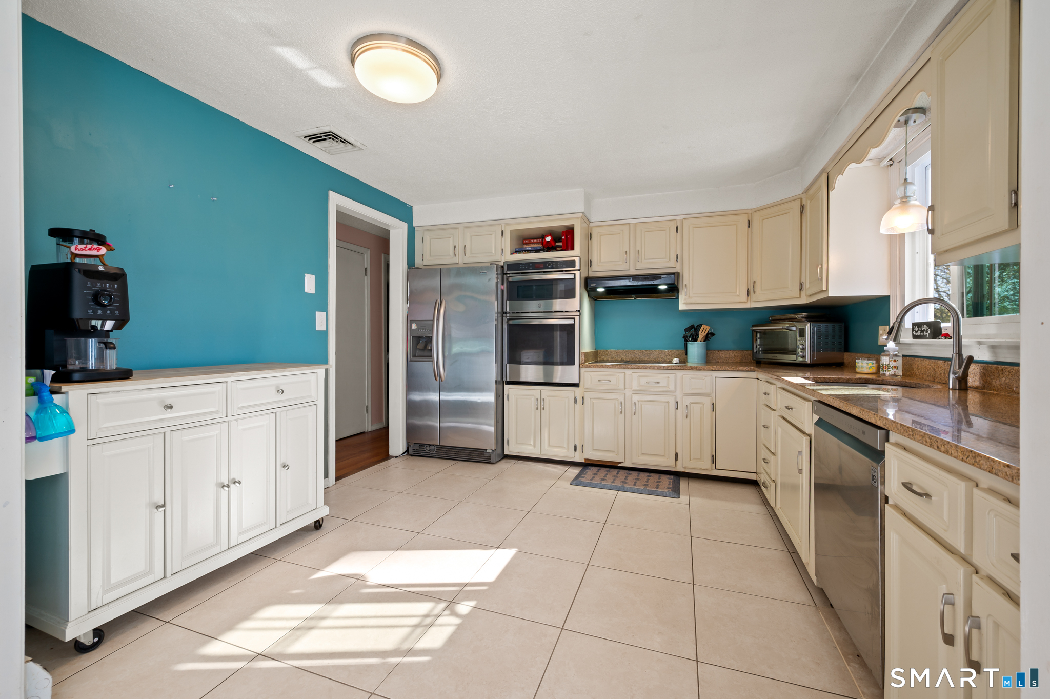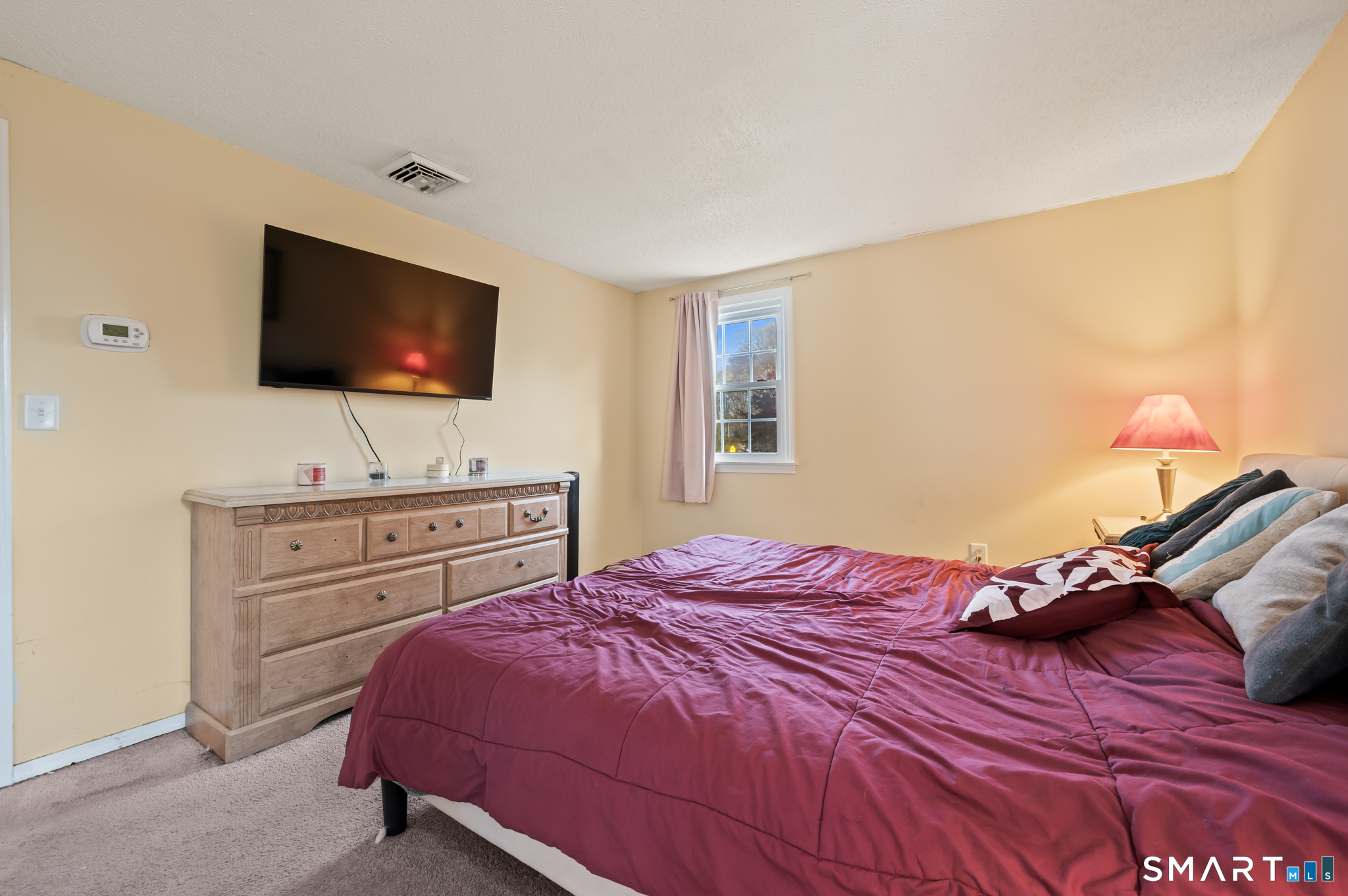 Welcome to this move-in ready raised ranch featuring 3 bedrooms, 2.5-bath home located in a desirable South Windsor neighborhood. This property offers a spacious and functional layout ideal for everyday living and entertaining. The updated kitchen features stainless steel appliances, granite countertops and ample cabinetry, flowing seamlessly into a bright dining room with hardwood floors and a slider leading to a deck that overlooks the large backyard-perfect for outdoor gatherings or play. The inviting living room boasts hardwood flooring and a cozy fireplace, creating a warm and comfortable space. The primary bedroom includes a walk-in closet and an attached half bath for added convenience. Two additional bedrooms provide flexibility for family, guests, or home office needs. Additional highlights include a finished lower level with an extra bath, central air conditioning, newer roof and windows, and energy-saving solar panels to help reduce electricity costs. A 2-car garage adds convenience and storage. Situated in a convenient location close to public schools, shopping, and local amenities, this home offers both comfort and accessibility. Don't miss the opportunity to make it yours.