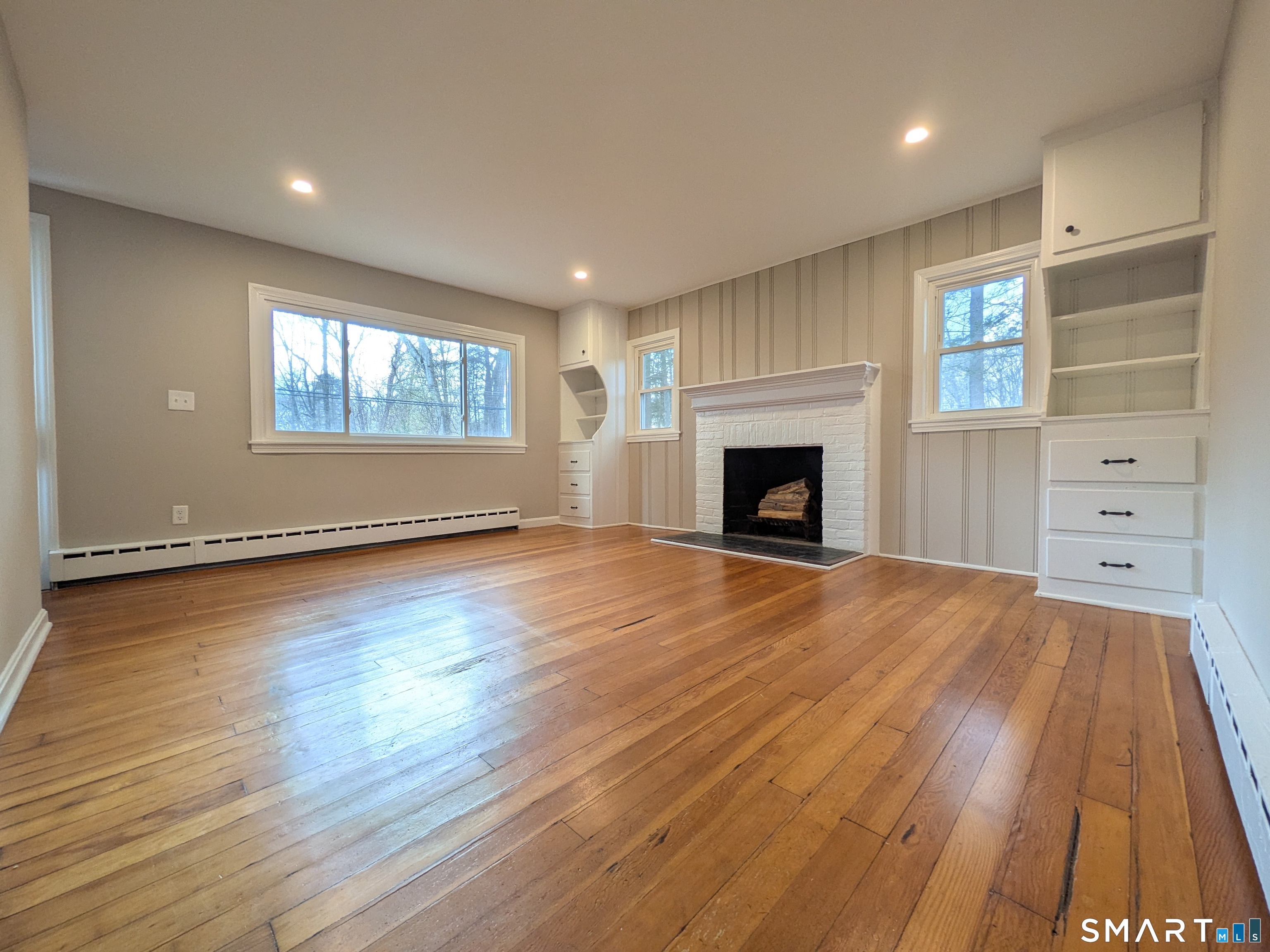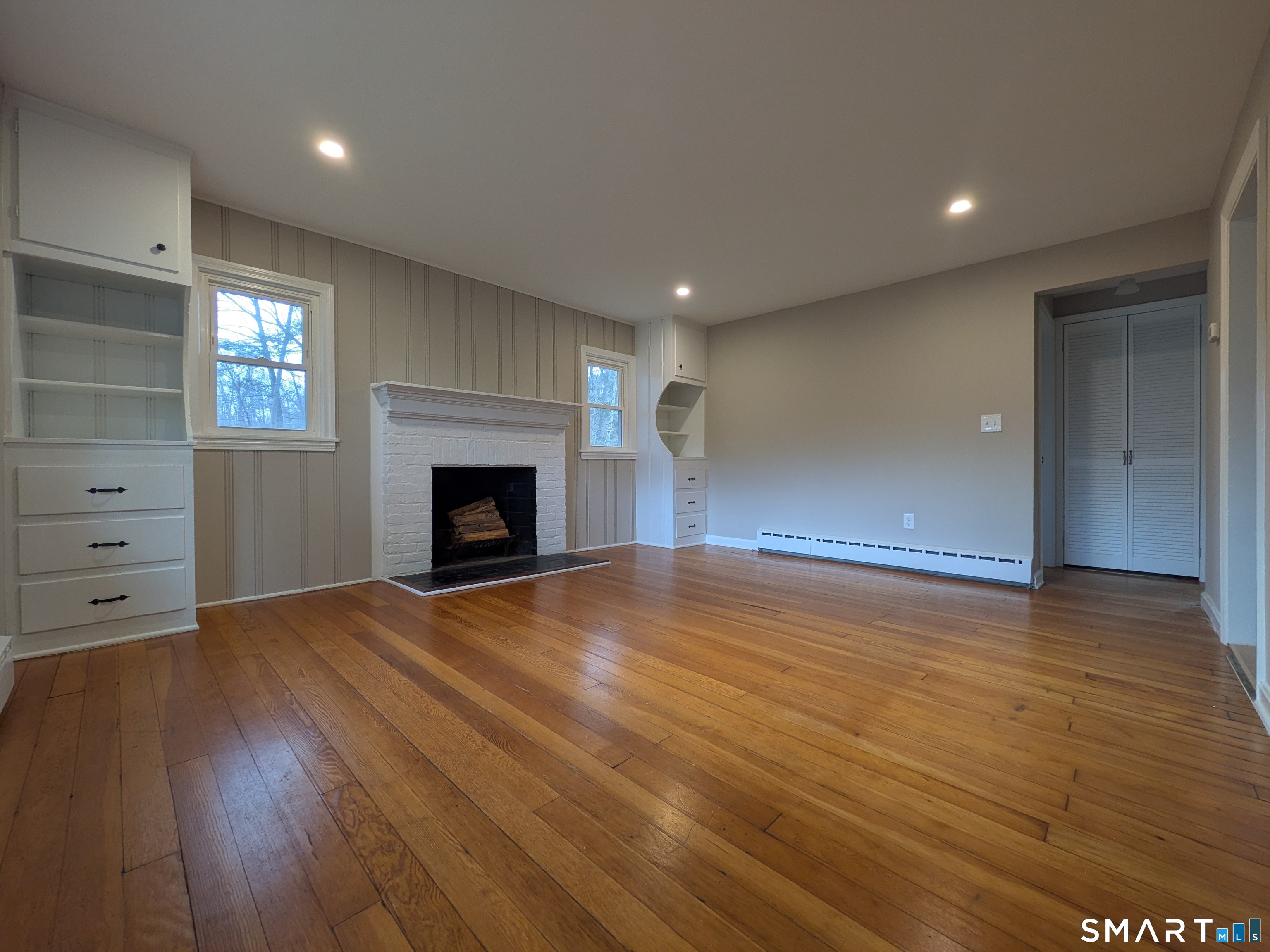 This Beautifully Reconfigured & Renovated 2 Bedroom house on Manitook Lake is ready for you to move right in! Fresh Paint & Refinished hardwood floors throughout all of the main living spaces in the home. A brand new kitchen has been thoughtfully updated to offer a dishwasher, lots of counterspace including a seating area, upper & lower cabinetry, vinyl flooring, newer appliances & also provides access to the side-yard where you have, level outdoor entertaining spaces. You'll enjoy views of the lake there & from both bedrooms as this home has been situated very nicely on it's water-front lot which also includes a stairway down to a private dock. Enjoy the ambience of a wood-burning fireplace & mantle in the open living-dining room that also features charming built-ins and recessed lighting. Location keeps you close to everything while offering privacy and peace simultaneously. Come take a look at all this move-in-ready home has to offer in perfect timing for spring & summer lake living!