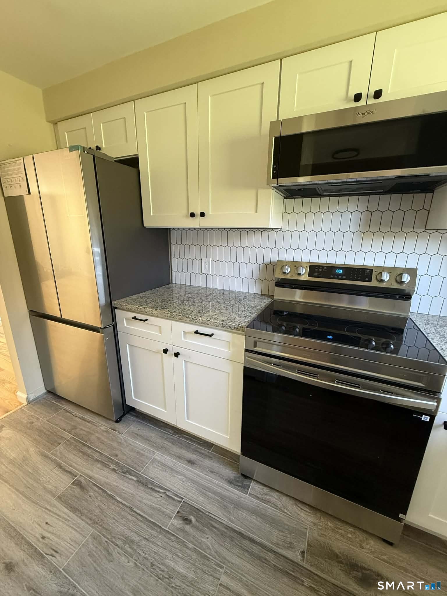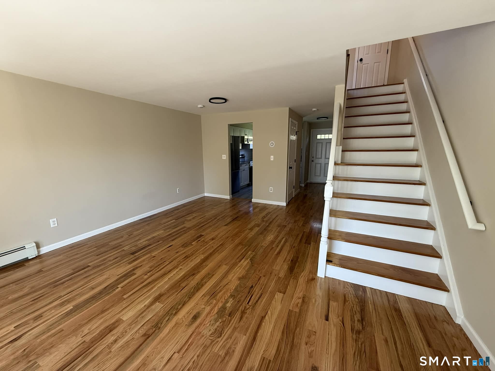 Beautifully Renovated top to bottom - this 1,040 square foot 2 bed/1.5 bath town house is available for rent in South Meriden! Desirable gas heat for the winter, brand new wall AC units to keep you cool in the summer. Upgraded kitchen with white shaker cabinetry, sharp black finishes, stainless steel appliances (including a dishwasher) and double door refrigerator! Oversized primary bedroom with double closets, tons of natural light. New red oak hard wood floors, slip resistant tile in the front entryway, kitchen and bathrooms. All new light fixtures throughout. Large under house garage, with washer/dryer hookups and basement storage area. Owners are seeking a long-term tenant. 2 month's rent security deposit. No pets/smoking, HOA restrictions.