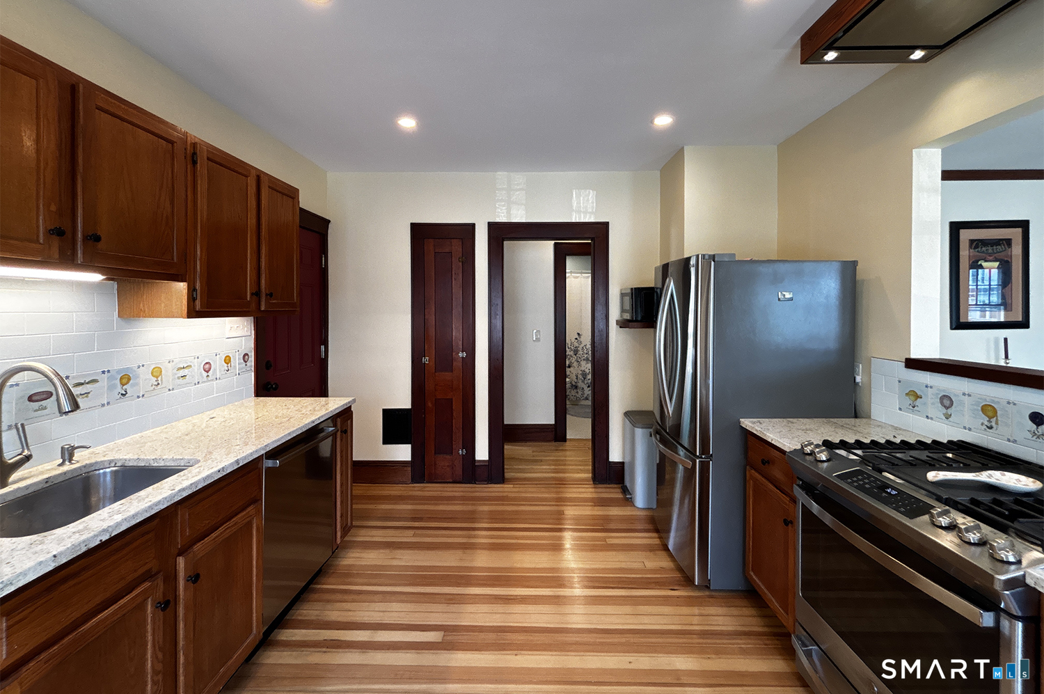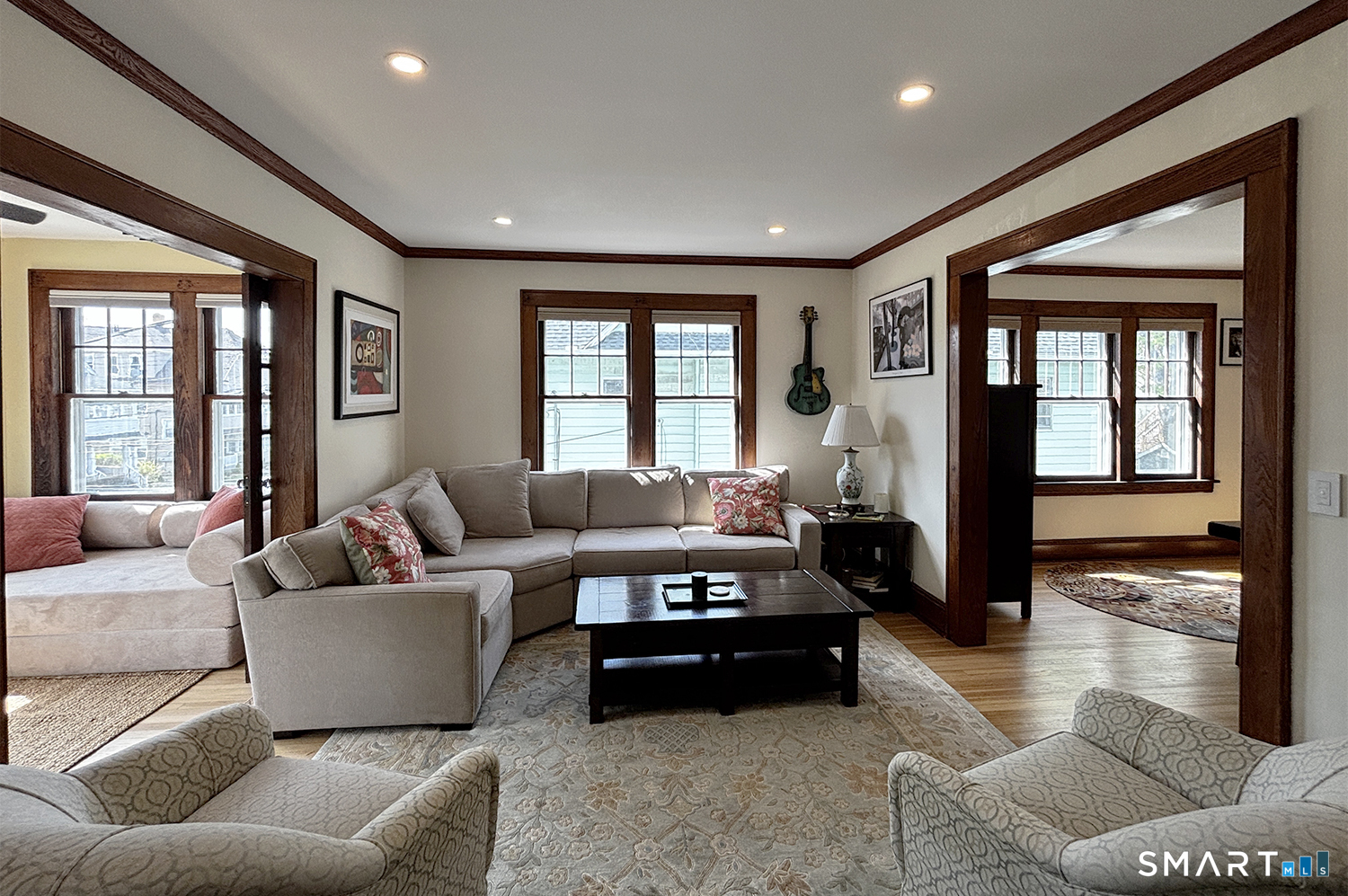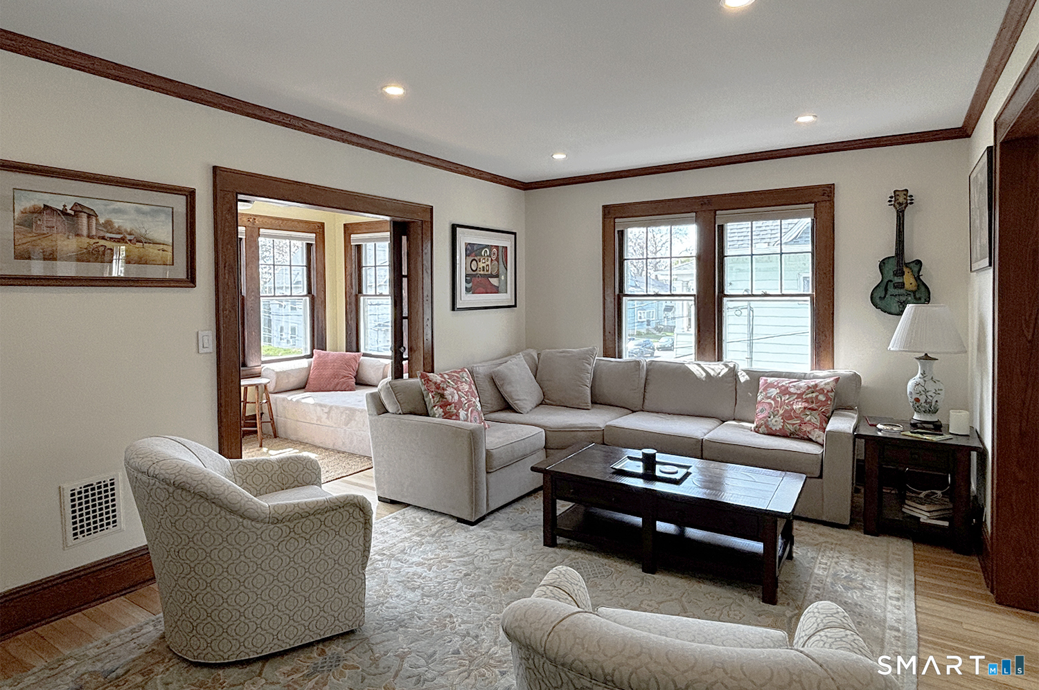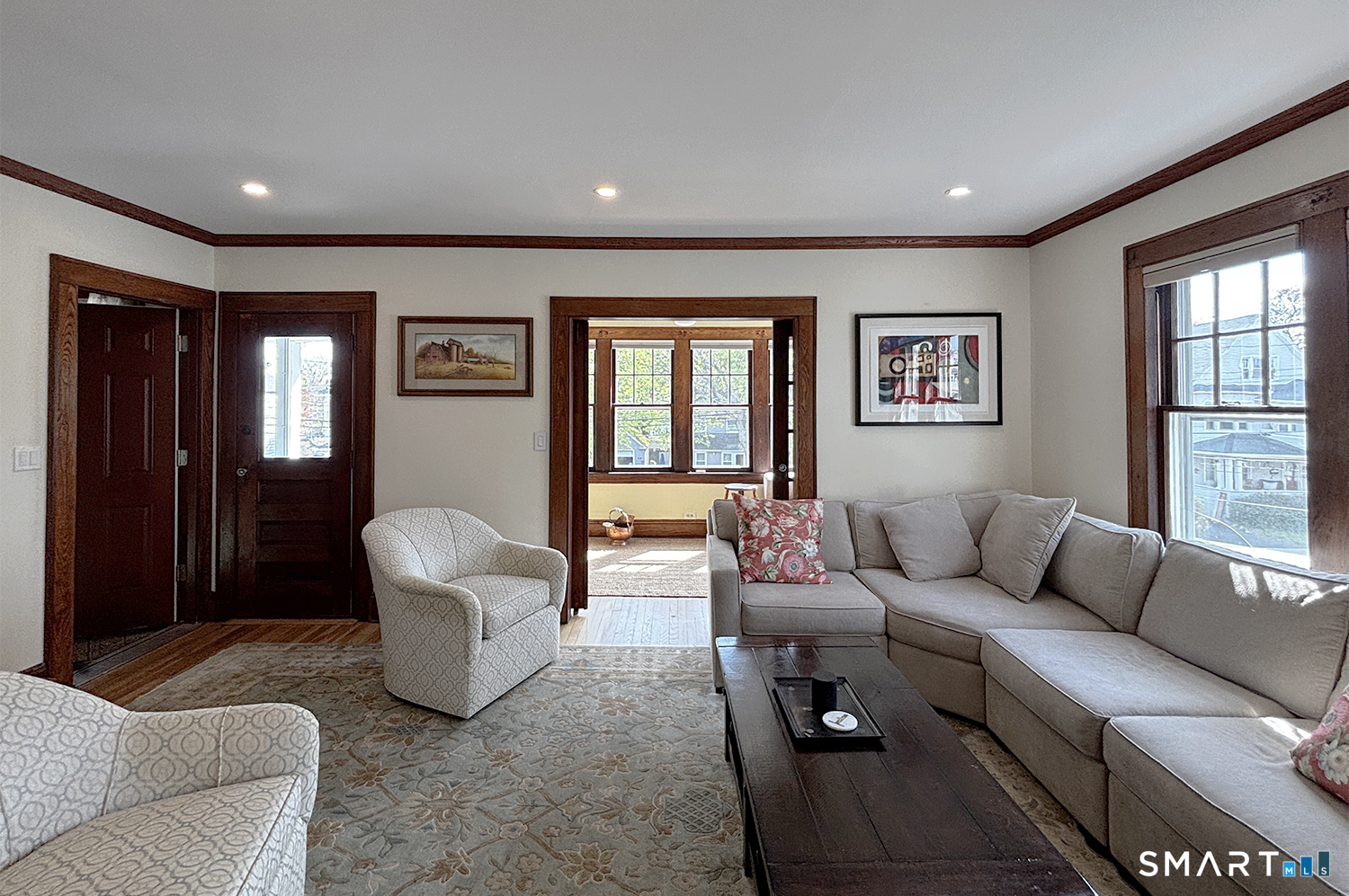 Welcome to this beautifully renovated second-floor apartment in the heart of Black Rock, Bridgeport-just a 0.5-mile stroll to St. Mary's by the Sea and 0.1 mile to Harborview Market, placing you at the center of a vibrant, walkable community. Step inside to an impeccably updated space where recessed lighting warms the sunroom, living room, dining room, and kitchen. The apartment showcases beautifully refinished chestnut trim and gleaming hardwood floors throughout, blending classic character with modern comfort. Enjoy the ease of central air conditioning, plus the added convenience of a new washer and dryer, complete with a spacious laundry folding table and dedicated storage area in the basement. A private balcony overlooking Harborview Avenue offers the perfect spot to relax and unwind. A rare opportunity to enjoy refined living in one of Black Rock's most desirable locations.